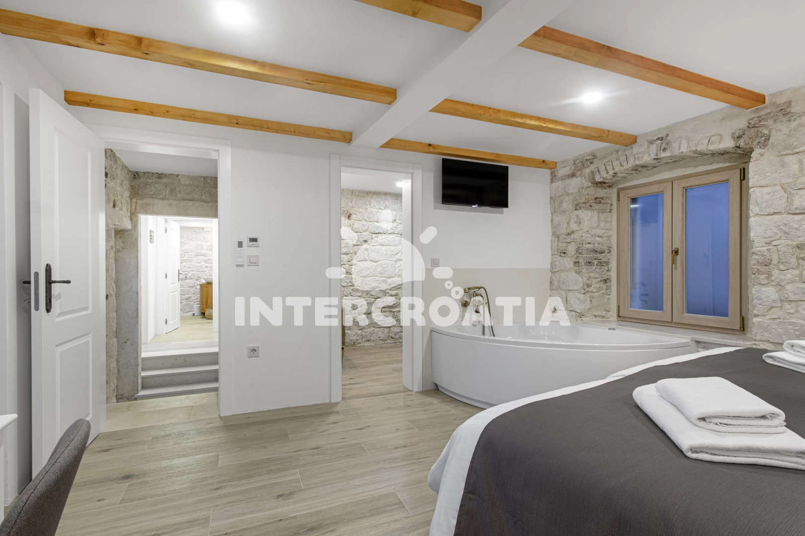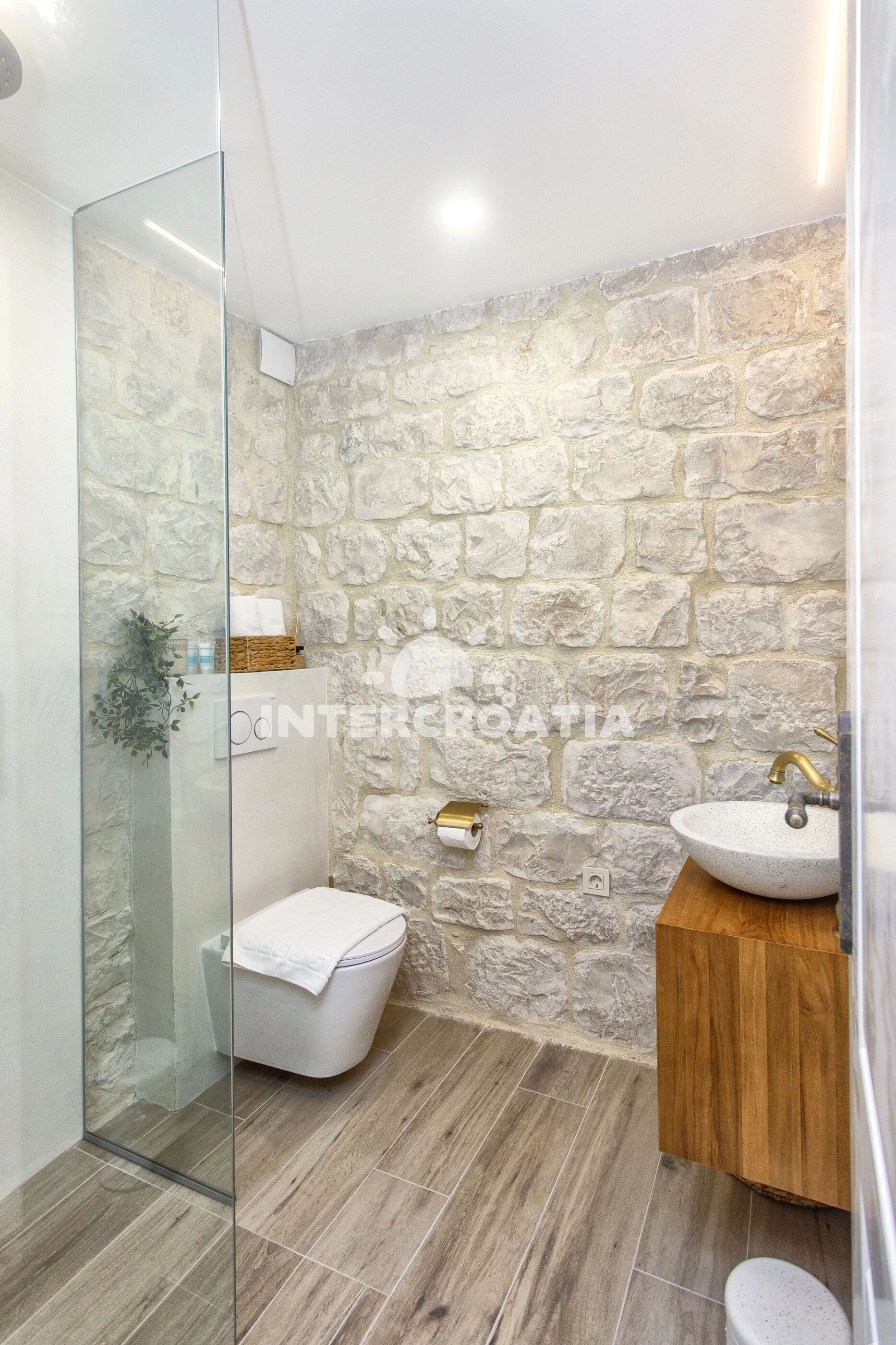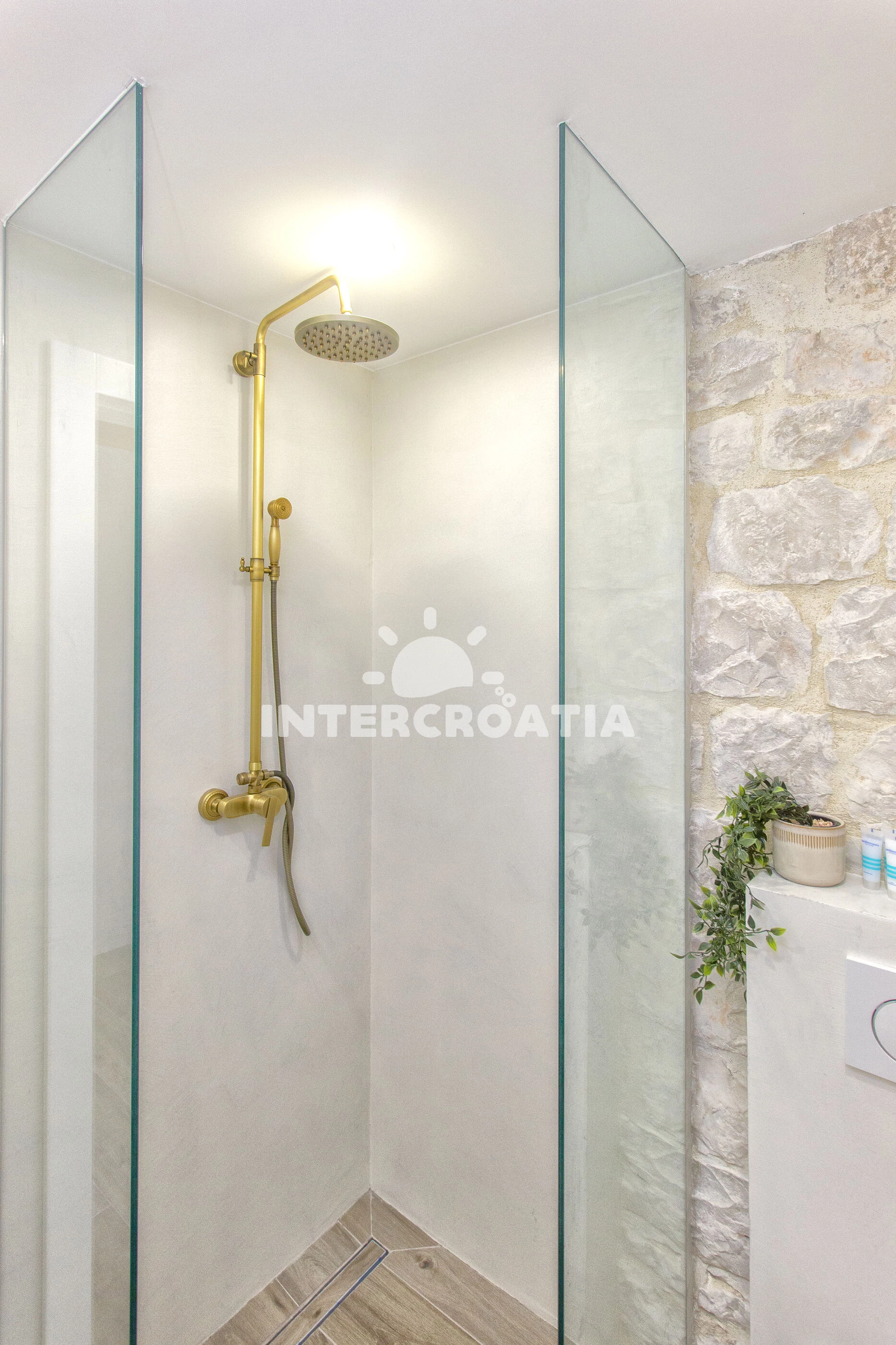 Vzdálenosti: Moře 50 m, pláž 300 m (oblázky), veřejná doprava 50 m, supermarket 50 m, bar 70 m, restaurace 100 m, centrum 200 m, směnárna 200 m, banka 500 m, čerpací stanice 700 m, letiště (Split) 7 km,