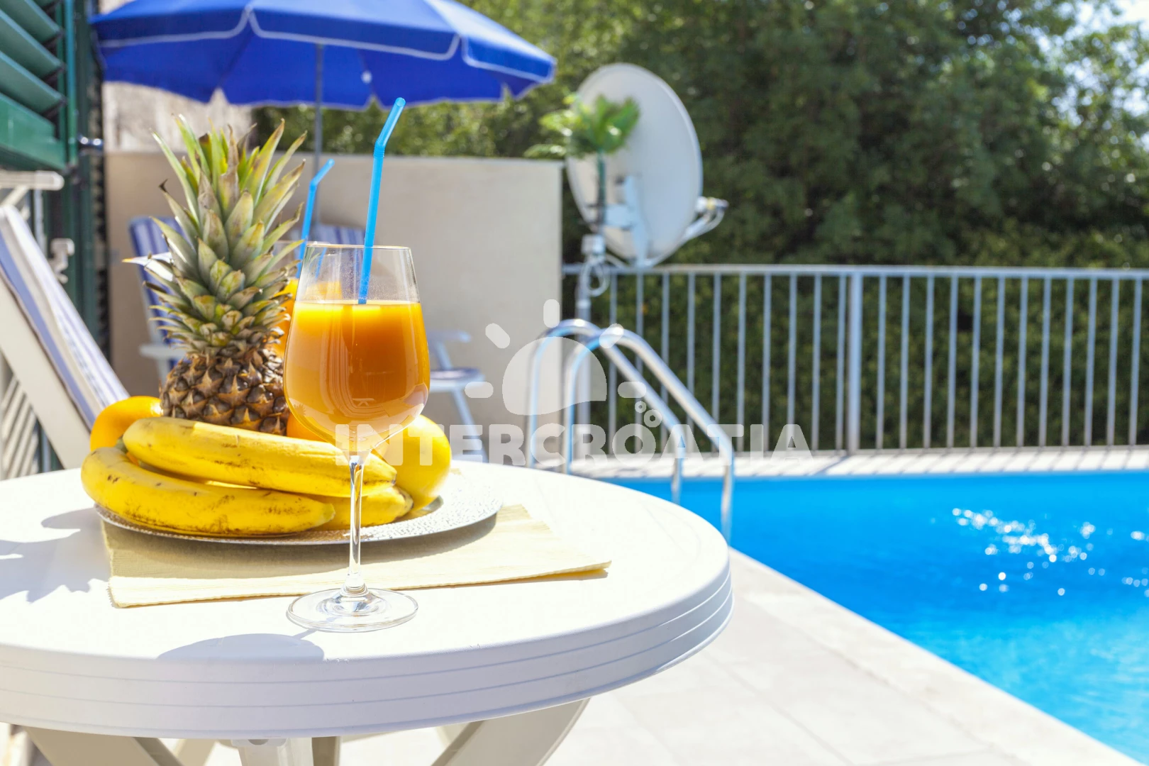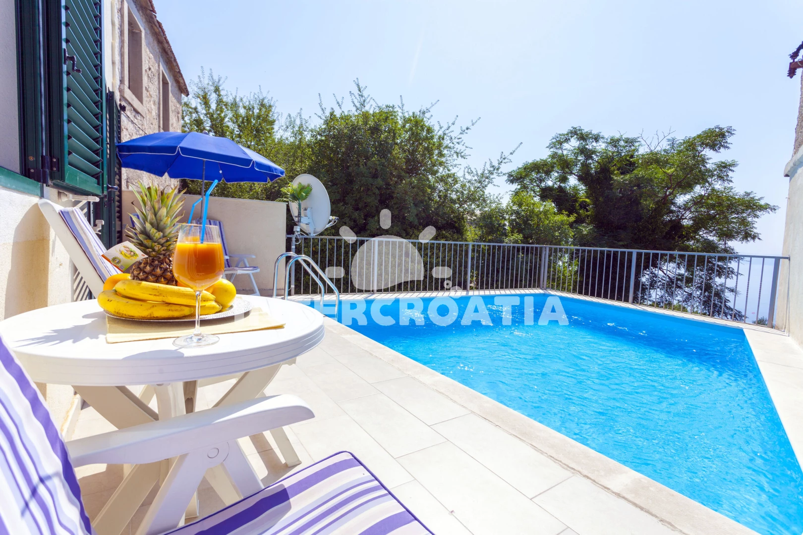 Domek se nachází 4500 m od moře a pláže. Pláž je písčitá, oblázková a skalnatá. Domek disponuje bazénem s lehátky pro ubytované hosty. Parkování je 50m - 150 m od domu.