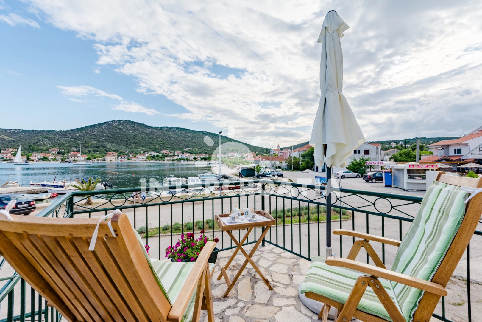 Vzdálenosti: Moře 60 m, pláž 60 m (oblázky), kotviště pro čluny 20 m, restaurace 50 m, supermarket 50 m, centrum 50 m, bar 50 m, veřejná doprava 100 m, pošta 200 m, směnárna 200 m, půjčovna motorových člunů 500 m, půjčovna kol 500 m, marina 7 km, lékárna 7 km, ambulance 7 km, banka 20 km, tenisové kurty 20 km, muzeum 20 km, potápění 20 km, diskotéka 20 km, čerpací stanice 20 km, letiště (Split) 25 km, park Plitvice 30 km, trajekt (Split) 50 km,