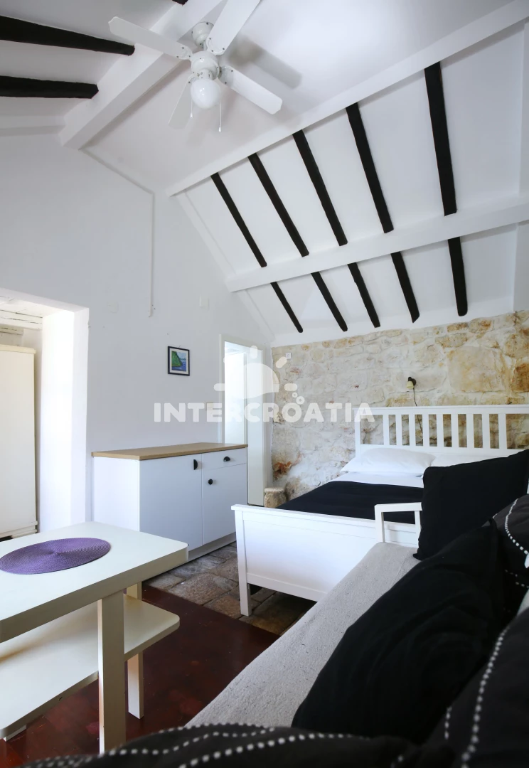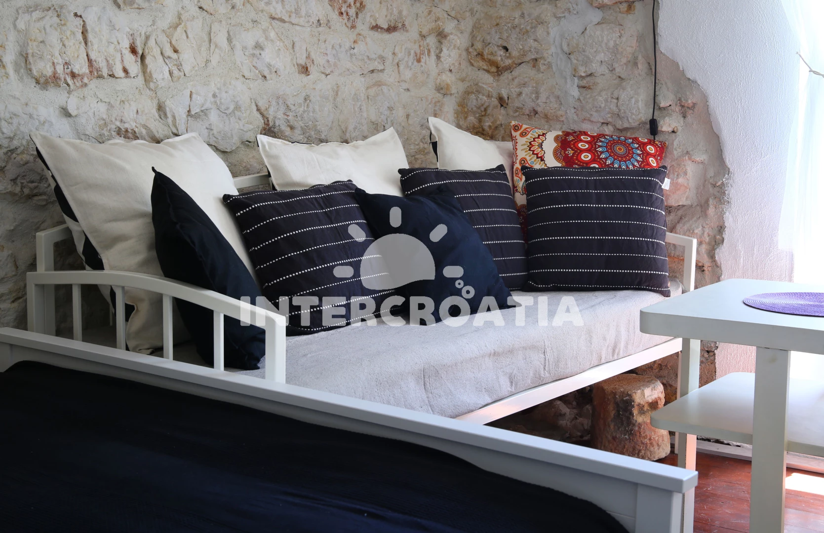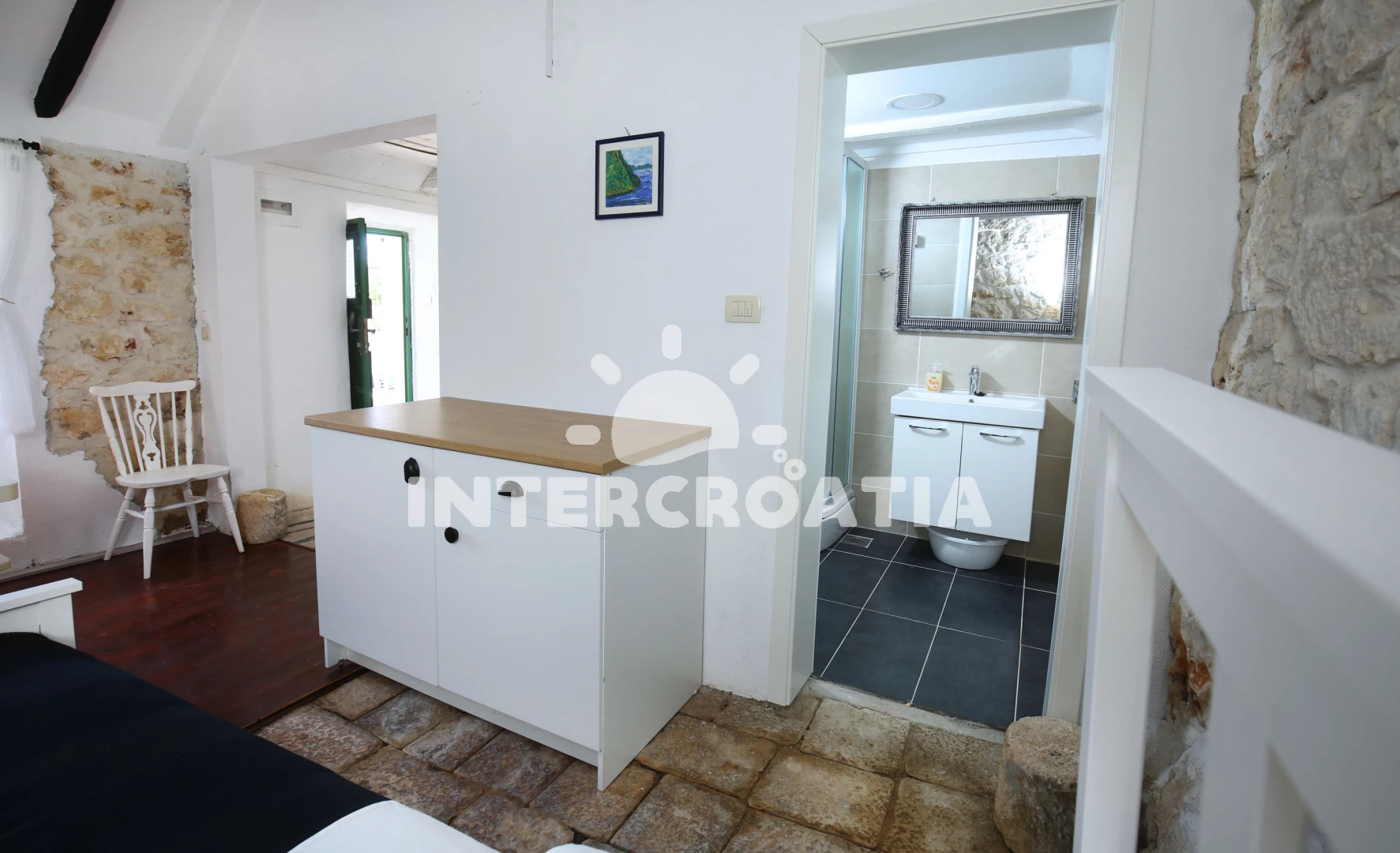 Vzdálenosti: Moře 10 m, pláž 20 m (písčitá a oblázková), marina 10 m, kotviště pro čluny 20 m, restaurace 20 m, bar 20 m, centrum 30 m, veřejná doprava 200 m, pošta 500 m, letiště (Split) 20 km,