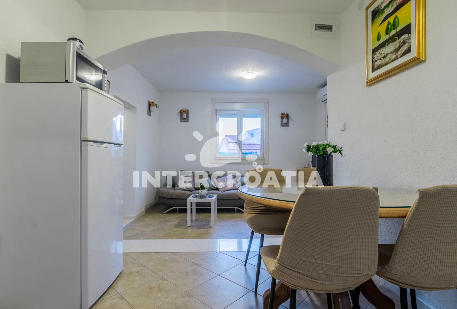 Vzdálenosti: Moře 200 m, pláž 1,5 km (písčitá a oblázková), pošta 2,0 km, restaurace 2 km, bar 2 km, marina 2 km, centrum 2 km, směnárna 2 km, supermarket 2 km, ambulance 4,3 km, lékárna 4,3 km, čerpací stanice 18 km, banka 18 km, trajekt (Trogir) 18 km, muzeum 18 km, diskotéka 18 km, letiště (Split) 24,0 km, park Plitvice 55 km,