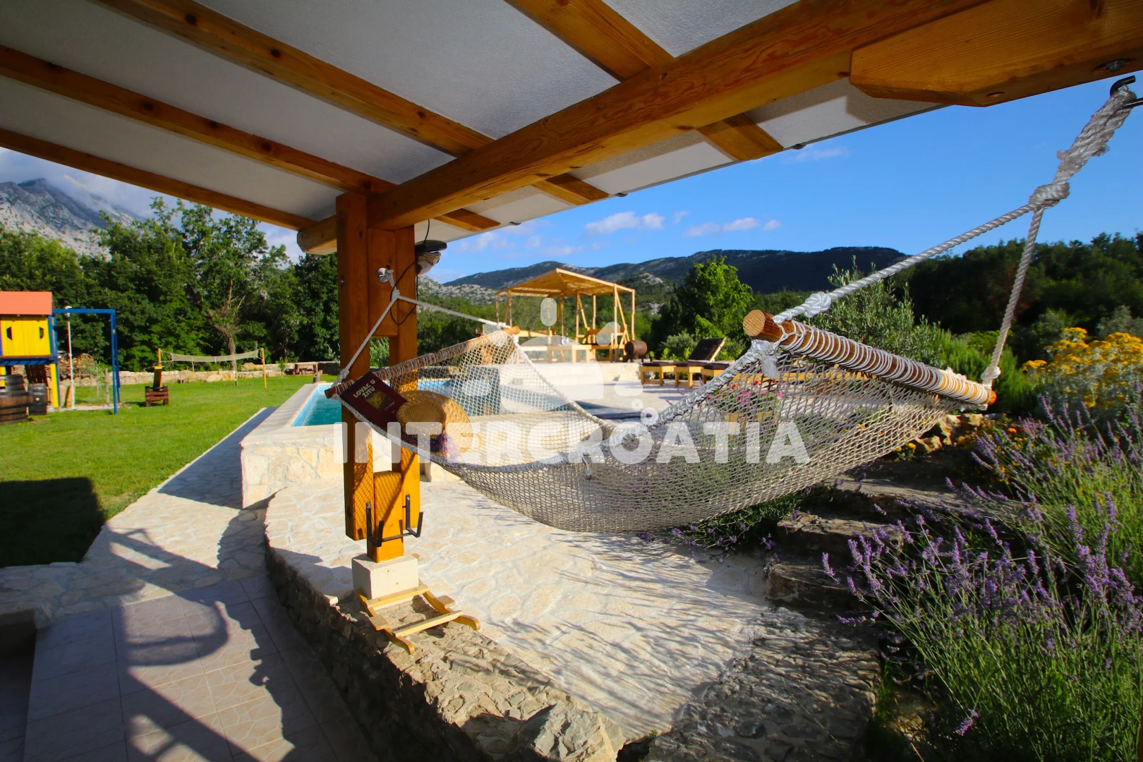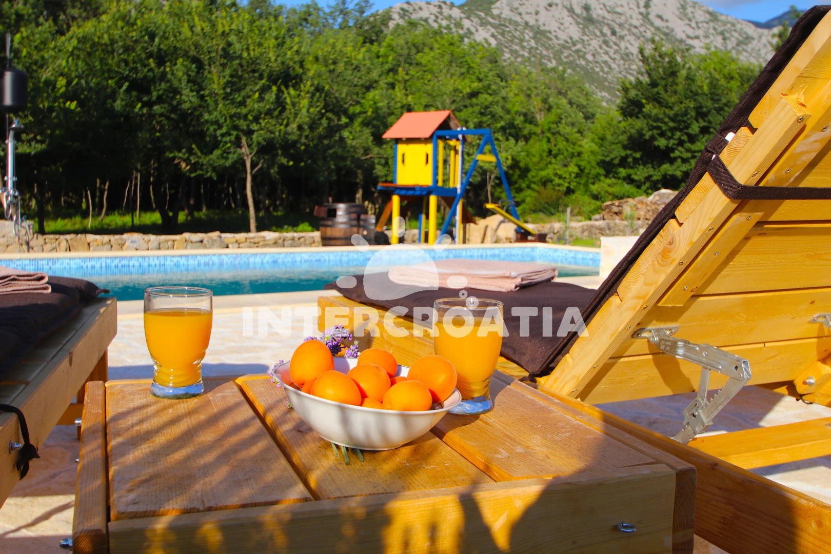 Domek se nachází 10000 m od moře a pláže. Pláž je oblázková. Domek disponuje bazénem s lehátky pro ubytované hosty. U objektu je k dispozici společná zahrada s posezením a grilem. Parkování je před domem.