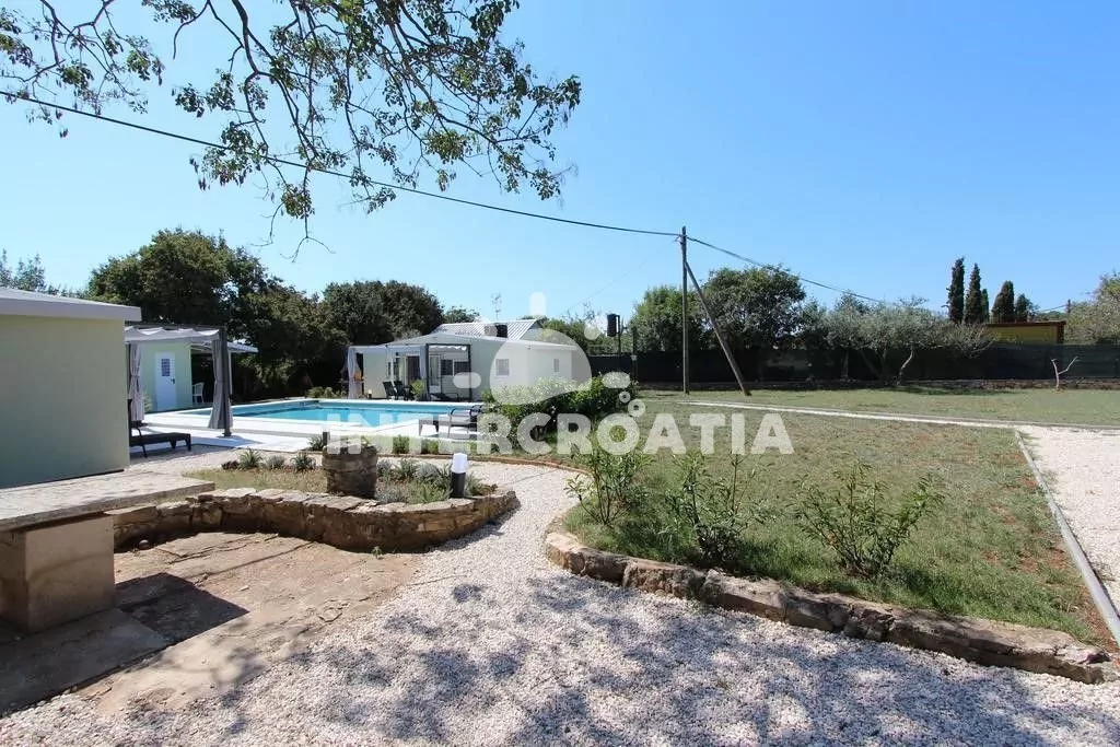 Pozemek s venkovním bazénem a dvěma prázdninovými domy v klidné ulici. Domy se nachází na oploceném pozemku 900 m2. Byly postaveny v roce 2011 a kompletně zrekonstruovány v roce 2020. K dispozici jsou čtyři soukromá parkovací místa. Na nejbližší krásnou pláž se dostanete za pouhých 5 minut na kole, nebo pokud jste se rozhodli strávit aktivní dovolenou, 15 minut pěšky. Domy jsou bezbariérově přístupné. Na zahradě je možné využívat venkovní bazén, lehátka na opalování, solární sprchu a také terasu s posezením a zděným grilem. Možnost zapůjčení cyklistických kol po předchozí dohodě.