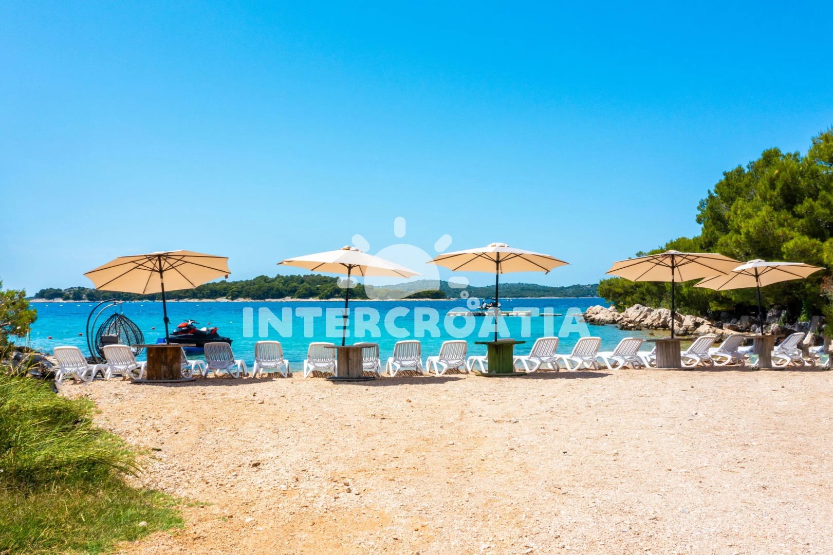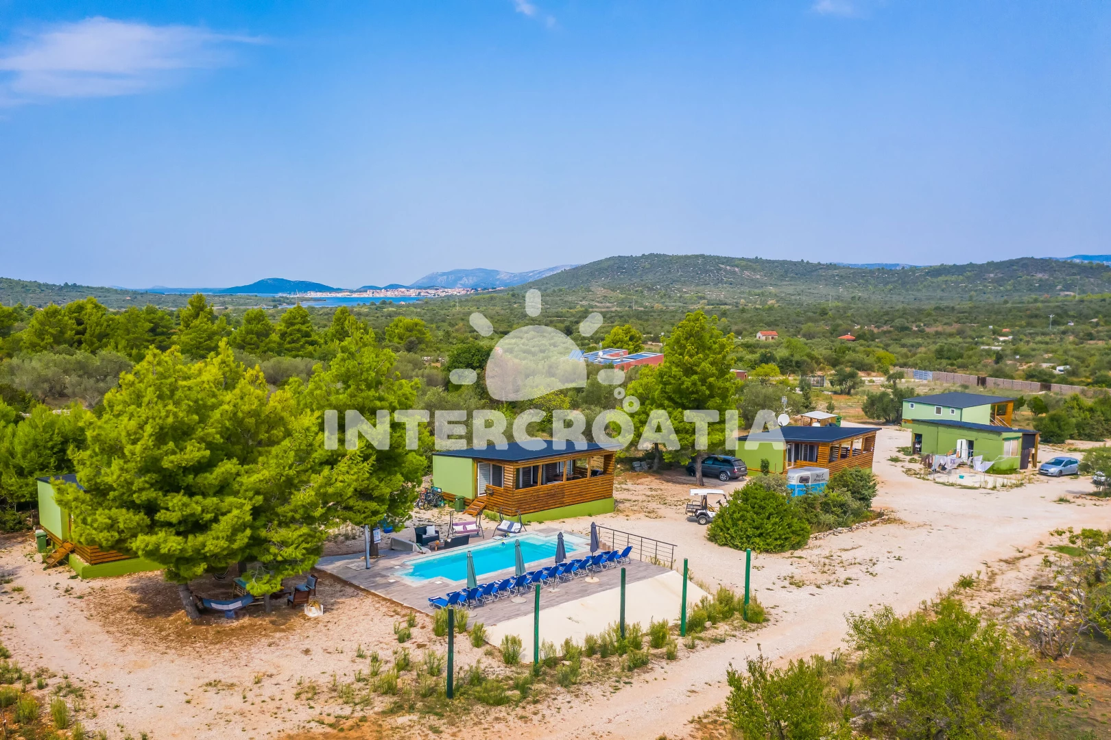 Vzdálenosti: Moře 900 m, pláž 900 m (oblázková a větší kamení), centrum 2 km, veřejná doprava 2 km, bar 2 km, restaurace 2 km, supermarket 2 km, lékárna 3 km, ambulance 3 km, trajekt (Šibenik) 34 km, letiště (Zadar) 60 km,