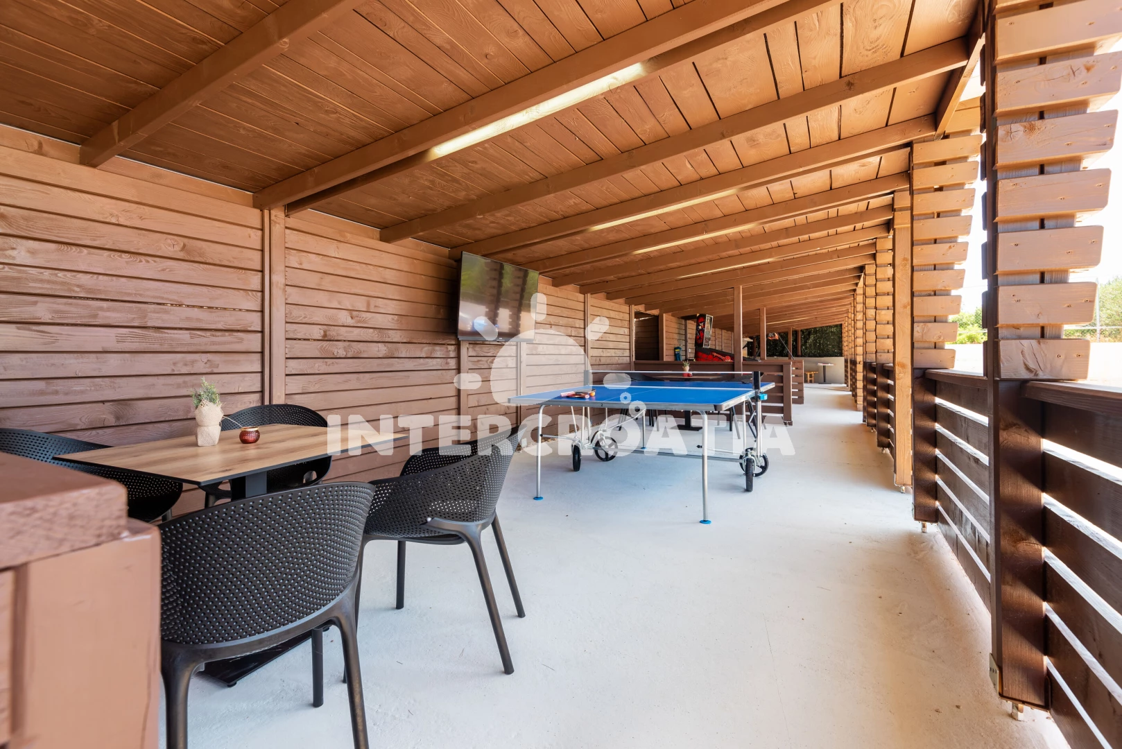 Mobilheim se nachází 900 m od moře a pláže. Pláž je oblázková a větší kamení. Mobilheim disponuje bazénem s lehátky pro ubytované hosty. K dispozici vířivka, posilovna. U objektu je k dispozici společná zahrada s posezením a grilem. Parkování je před domem.