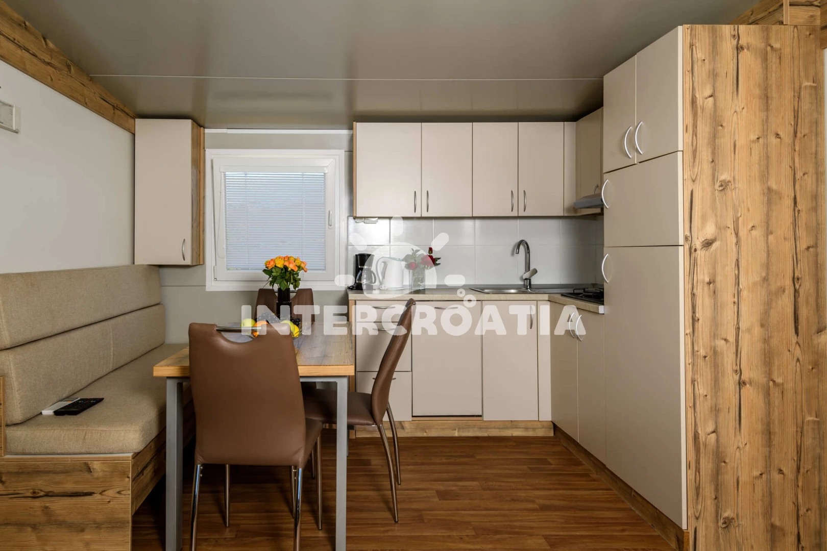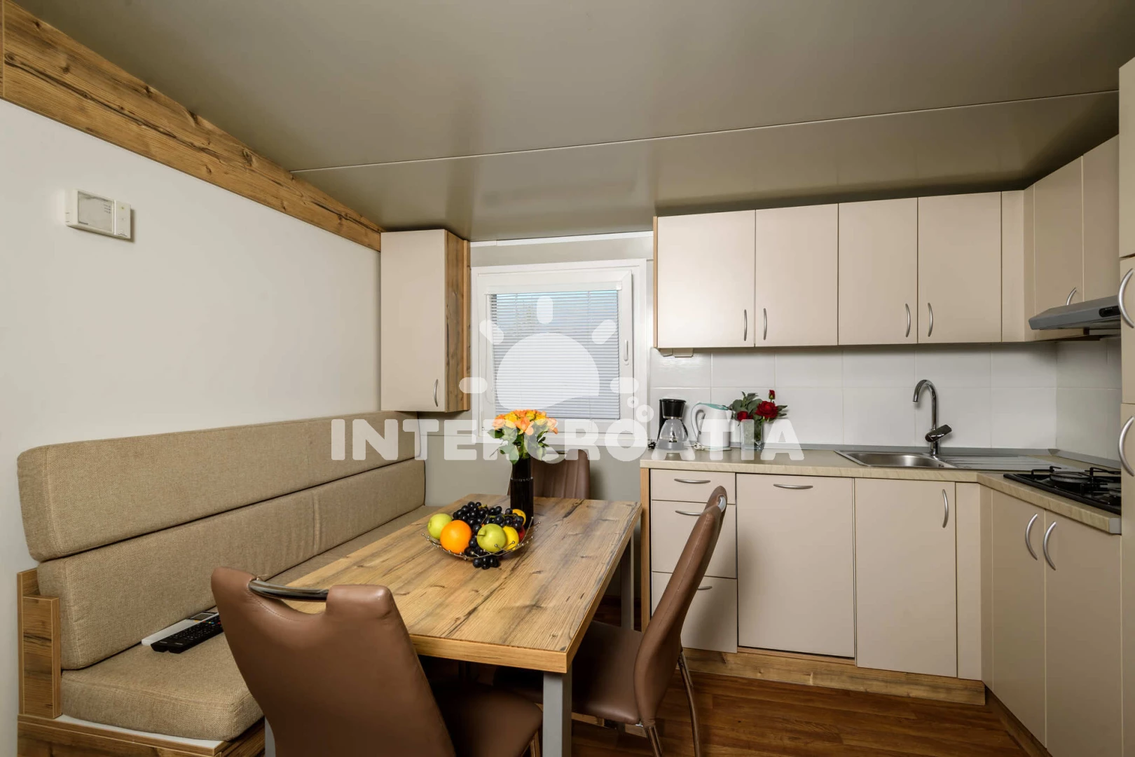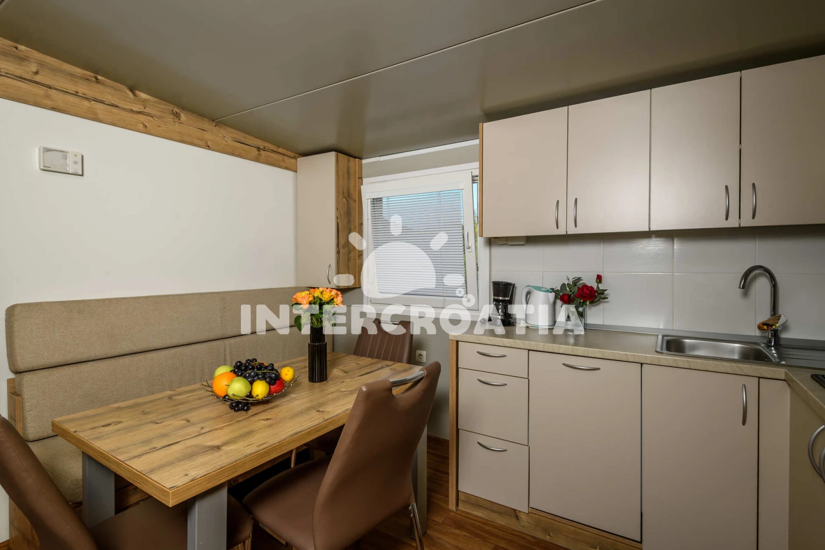 Mobilheim (2). Nachází se v objektu. Mobilheim má 2 ložnice a je vhodný pro až 2 osoby. Kuchyňská linka je vybavena varnou deskou, kávovarem, myčkou na nádobí, rychlovarnou konvicí, nádobím, lednicí, mrazákem. V obývací místnosti je rozložitelná pohovka (extra lůžko pro osoby). K dispozici televize, žehlička. První ložnice s dvoulůžky. Druhá ložnice s jednolůžky. Hostům je k dispozici parkování u objektu zdarma.