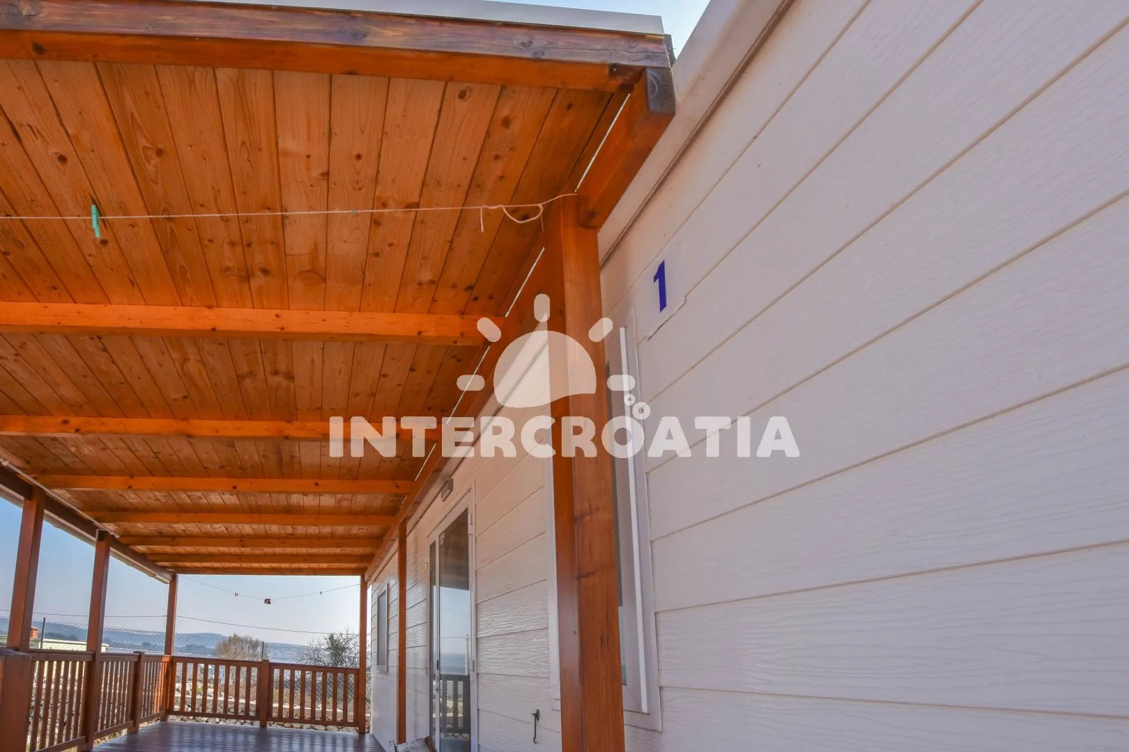 Dům (24 m2) s terasou, posezením, výhledem na moře a do dvora. Domek má 2 ložnice a je vhodný pro až 4 osoby. Obývací místnost je spojena s kuchyní. Kuchyňská linka je vybavena varnou deskou, kávovarem, nádobím a lednicí s mrazákem. Obývací místnost s jídelním stolem, pohovkou, televizí, klimatizací a vstupem na terasu. První ložnice s dvoulůžkem. Druhá ložnice s dvěma jednolůžky. Koupelna se sprchovým koutem, umyvadlem a wc. Hostům je k dispozici parkování u objektu zdarma.