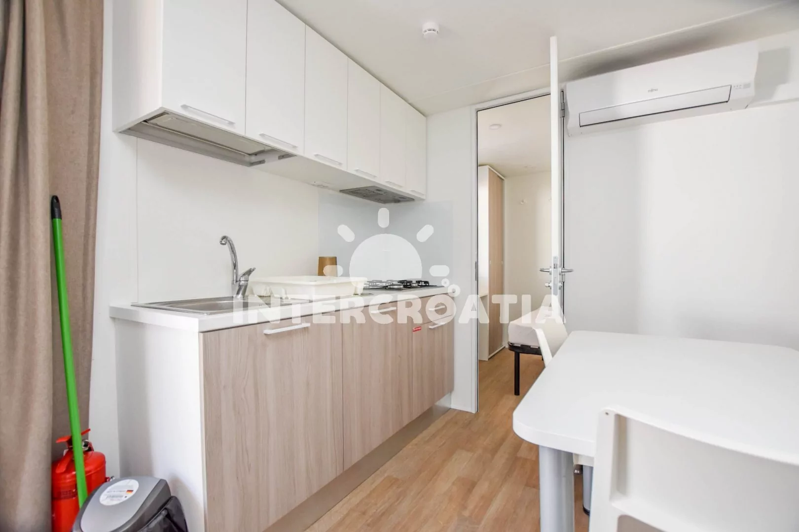 Výborně umístěný rezidenční komplex s mobilními domy se nachází pouze do 50 m od moře a pláže. Domy stojí samostatně, jsou klimatizované a zařízené, dále disponují lodžiemi s venkovním posezením. Parkovací místa pro automobily jsou k dispozici u domů.