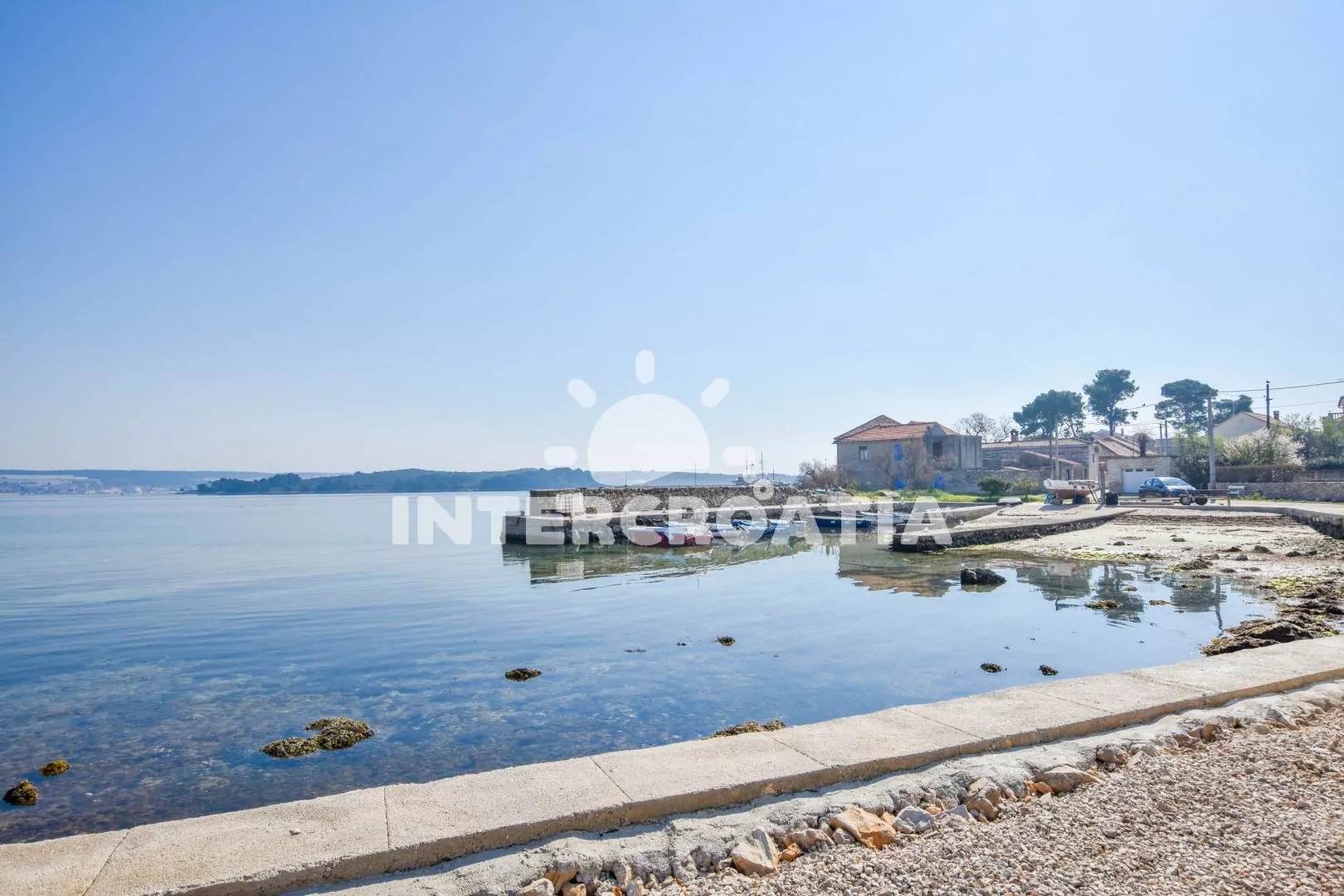 Vzdálenosti: Moře a oblázková-kamenitá pláž 50 m, bar 300 m, veřejná doprava 550 m, centrum, restaurace a supermarket 300 m, ambulance, lékárna a pošta 10 km, směnárna 3 km, banka a čerpací stanice 12 km, trajekt (Tkon) 10 km, park Plitvice 20 km, letiště (Zadar) 35 km.
