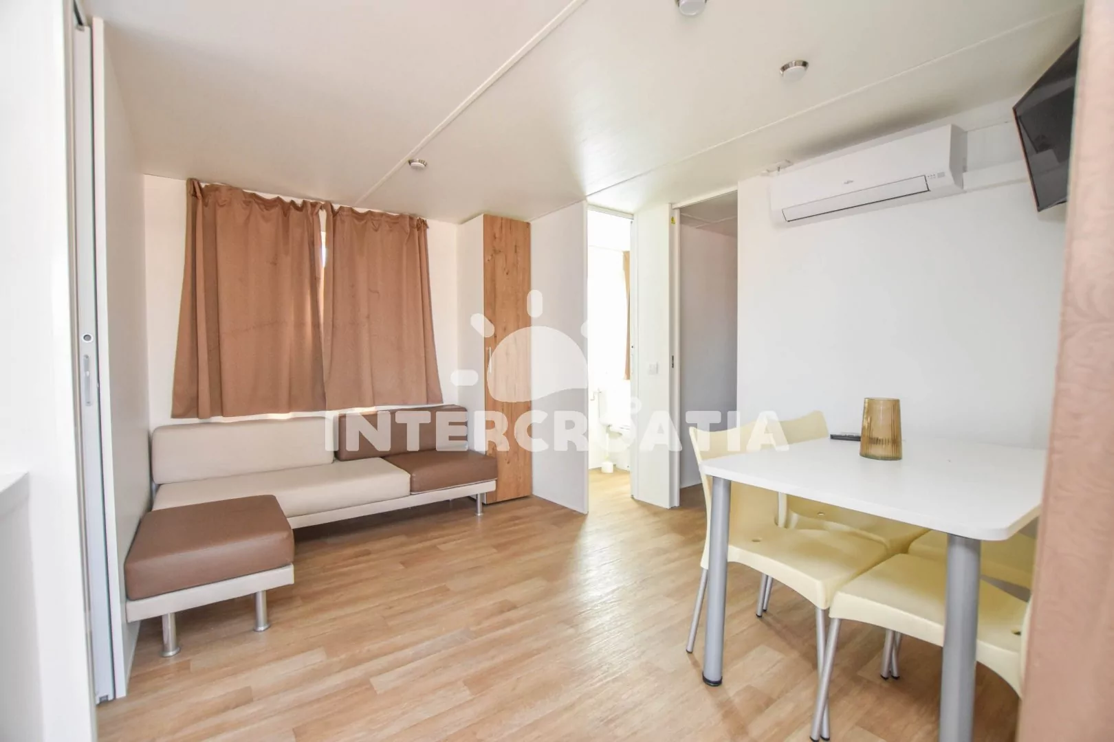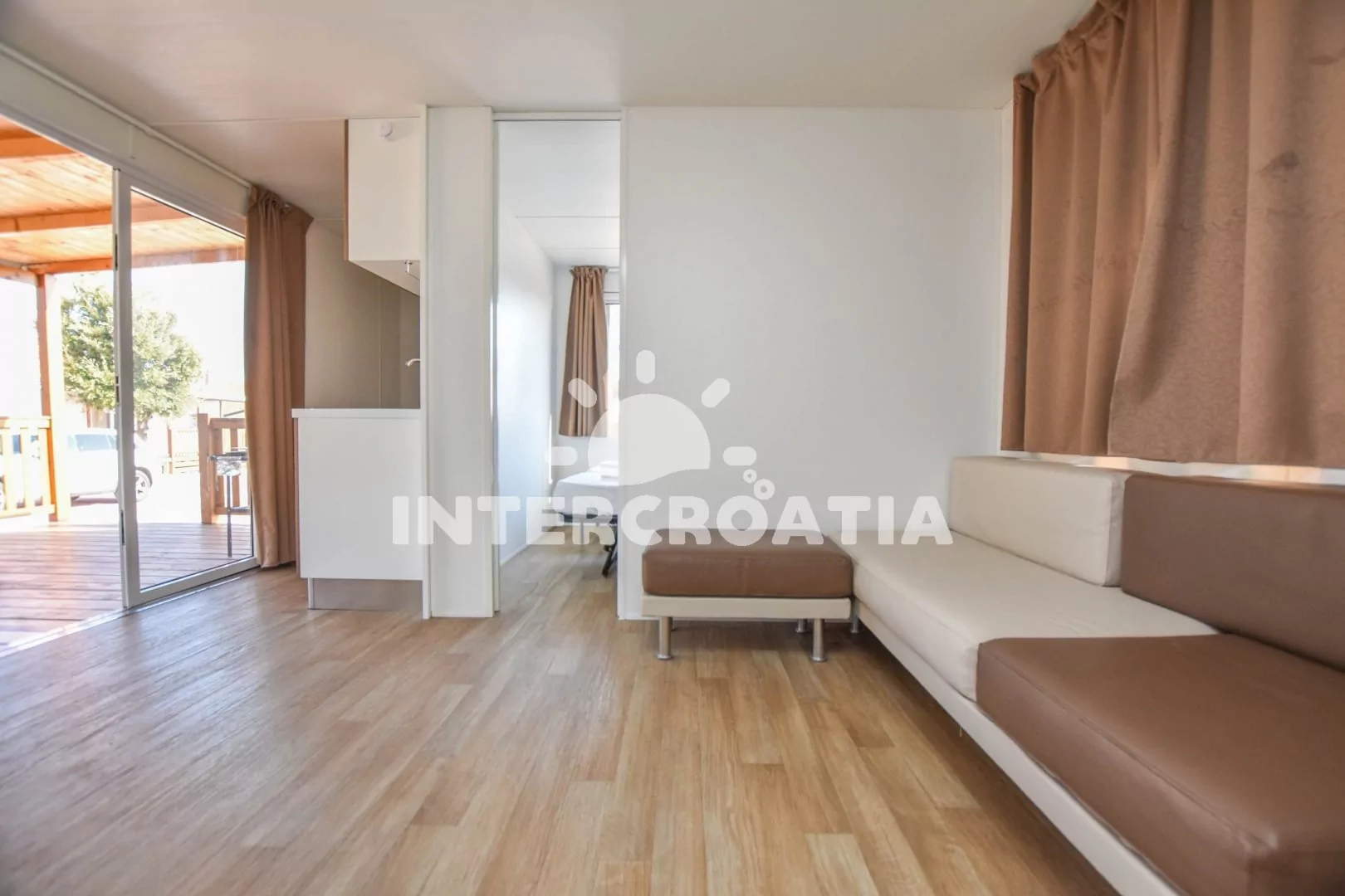 Výborně umístěný rezidenční komplex s mobilními domy se nachází pouze do 50 m od moře a pláže. Domy stojí samostatně, jsou klimatizované a zařízené, dále disponují lodžiemi s venkovním posezením. Parkovací místa pro automobily jsou k dispozici u domů.