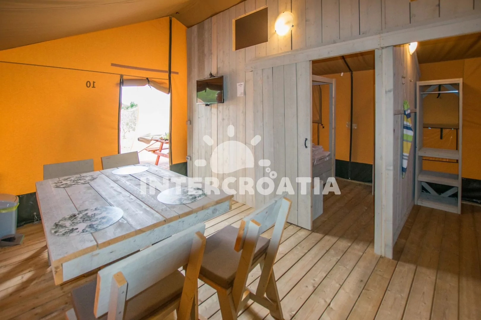 Obrázky nevyhovují, bylo to na živo ještě krásnější. Dokonale čisté a klidné. Náš hostitel Ante byl pozoruhodný, úžasně se o nás staral, ujistil se, že máme vše, včetně čerstvých ryb. Stany mají vše, co potřebujete, a postele jsou úžasné. Bazén je slušný a velmi čistý. Pláže a obchody jsou v blízkosti. Vřele doporučuji.