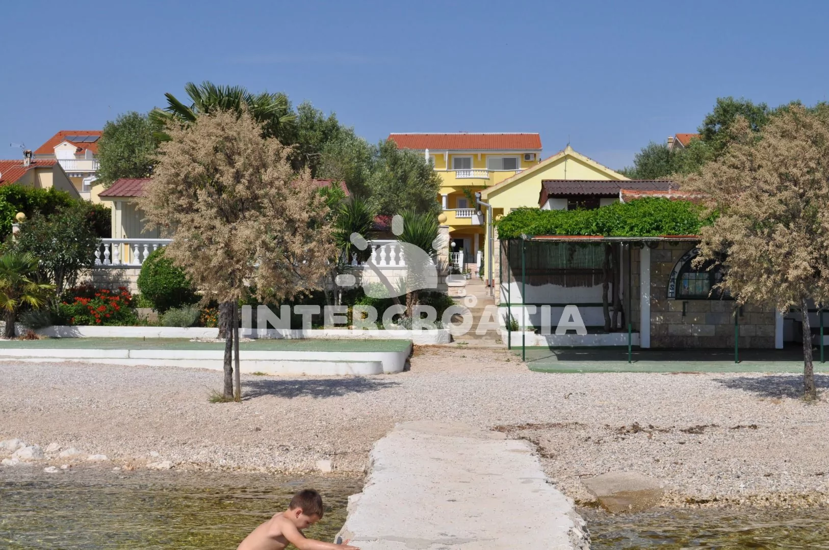 Vzdálenosti: Moře a oblázková pláž 30 m, supermarket 200 m, restaurace 600 m, bar 50 m, přístav 450 m, směnárna 500 m, půjčovna motorových člunů 500 m, potápění 800 m, veřejná doprava, čerpací stanice, ambulance, lékárna 1 km, banka 1,2 km, půjčovna cyklistických kol 1,3 km, centrum, pošta 1,5 km, trajekt 1,6 km, muzeum 2 km, tenis, diskotéka 2,2 km, park Plitvice 17 km, letiště (Zadar) 30 km.