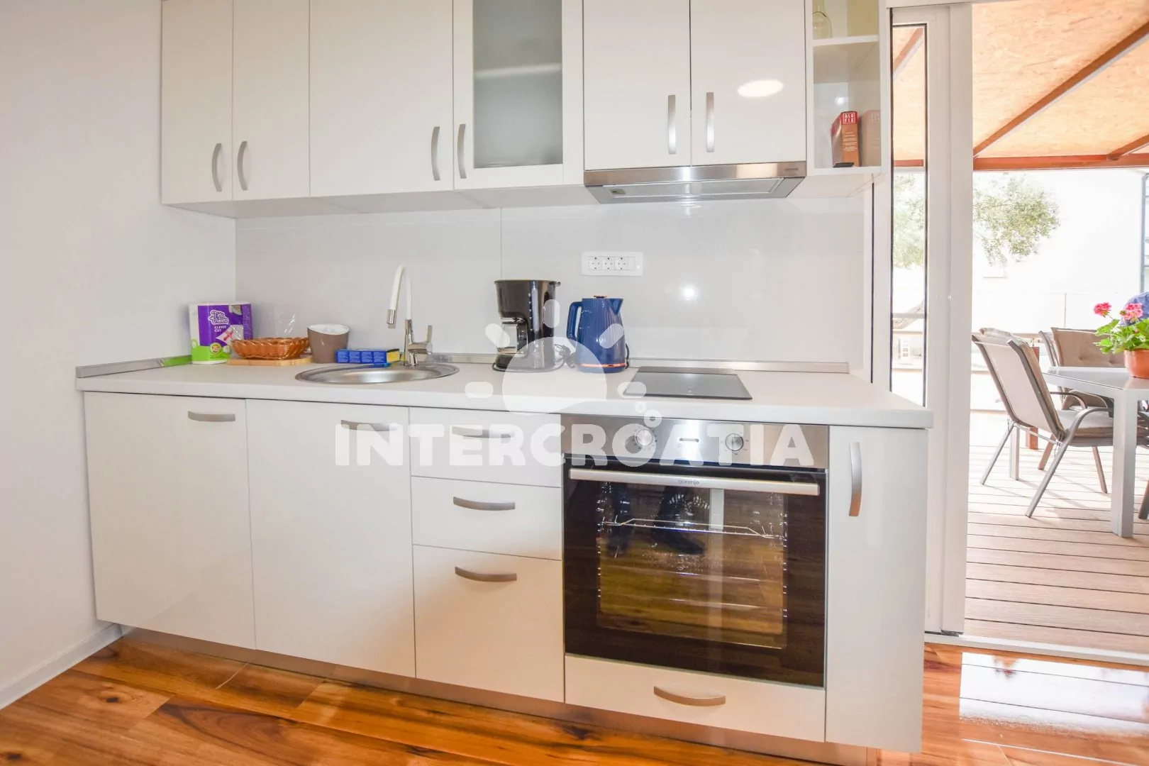 Velmi dobře umístěný a vkusně zařízený domek s terasou a výhledem na moře. Dům se nachází v oploceném areálu se zahradou, grilem a jen pár kroků od moře. Parkovací místa u domu.
