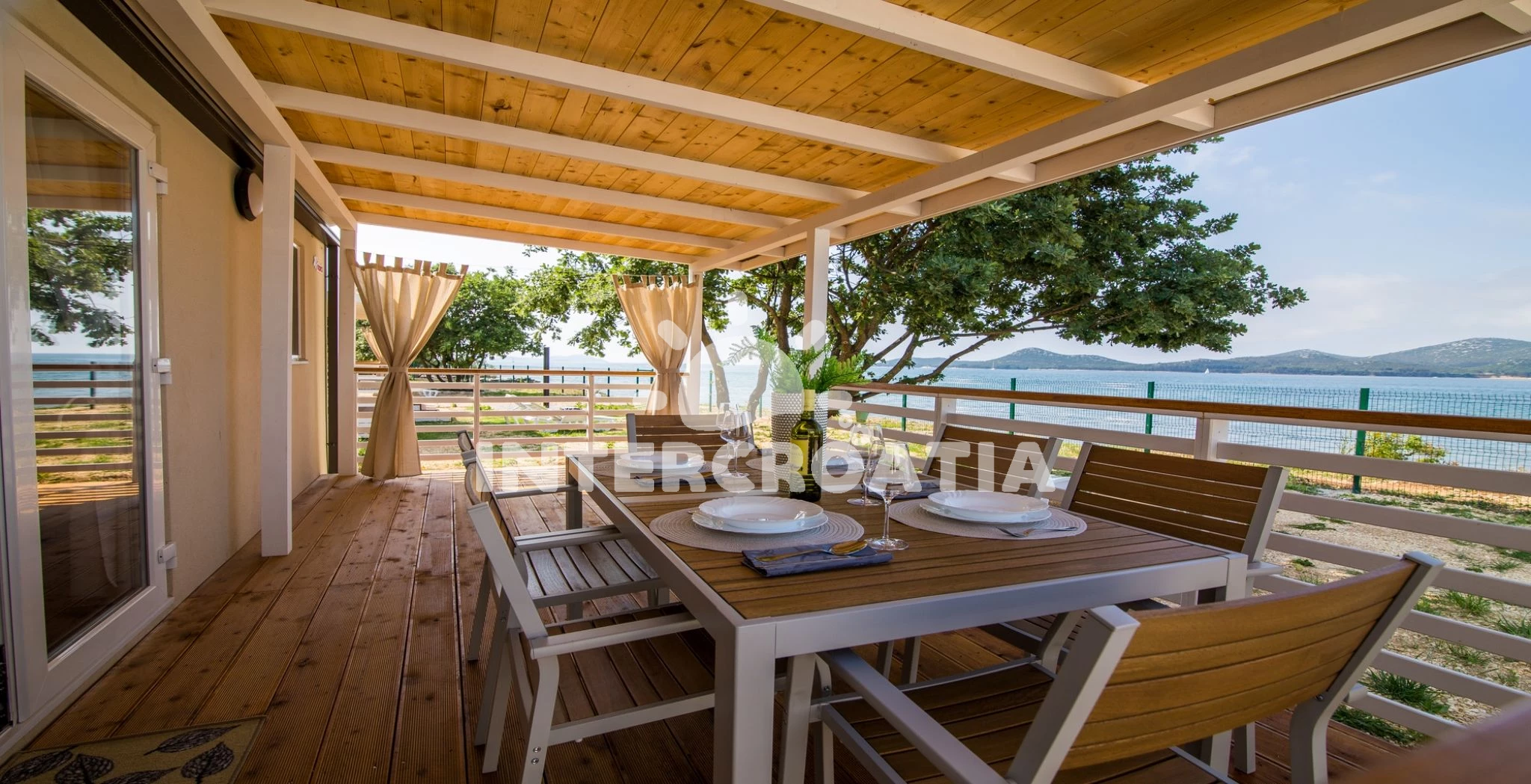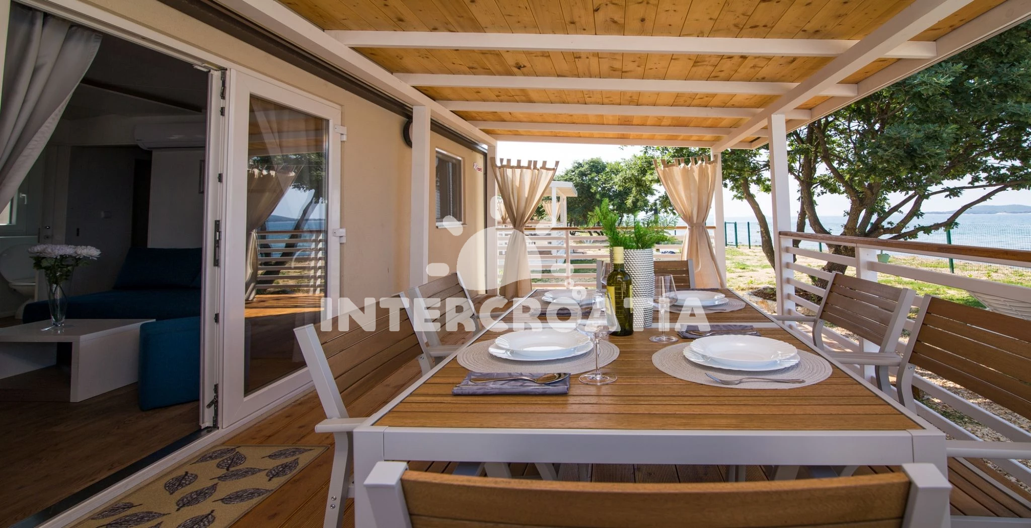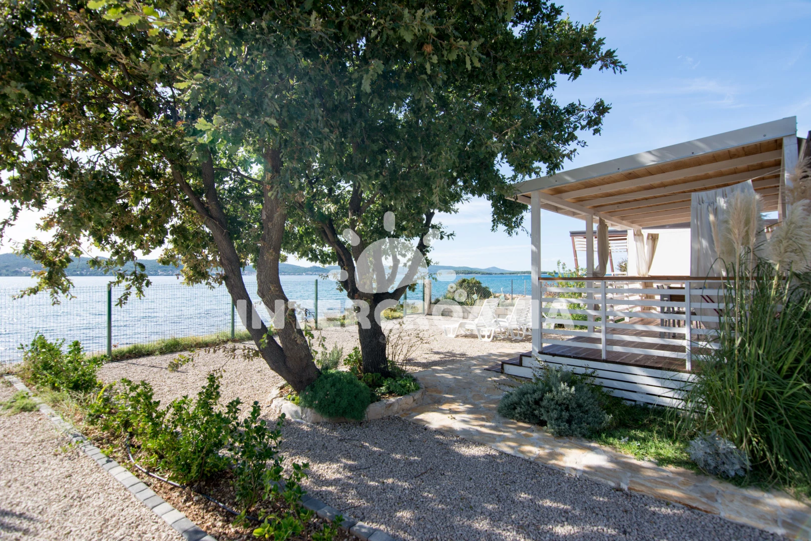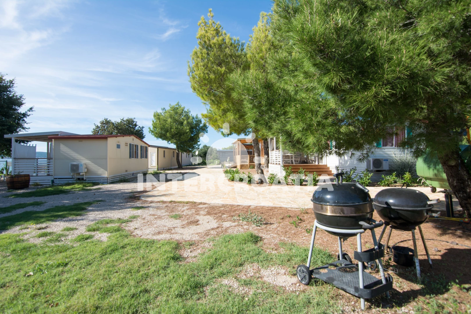 Mobilheim se nachází 10 m od moře a pláže. Pláž je oblázková a větší kamení. U objektu je k dispozici společná zahrada s posezením a grilem. Parkování je před domem.