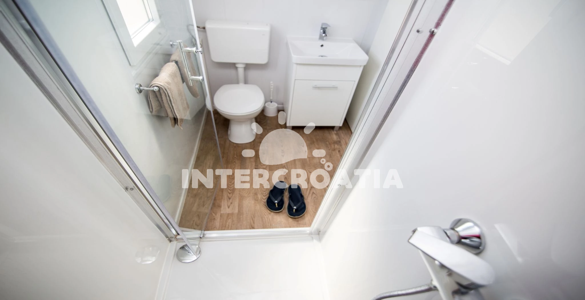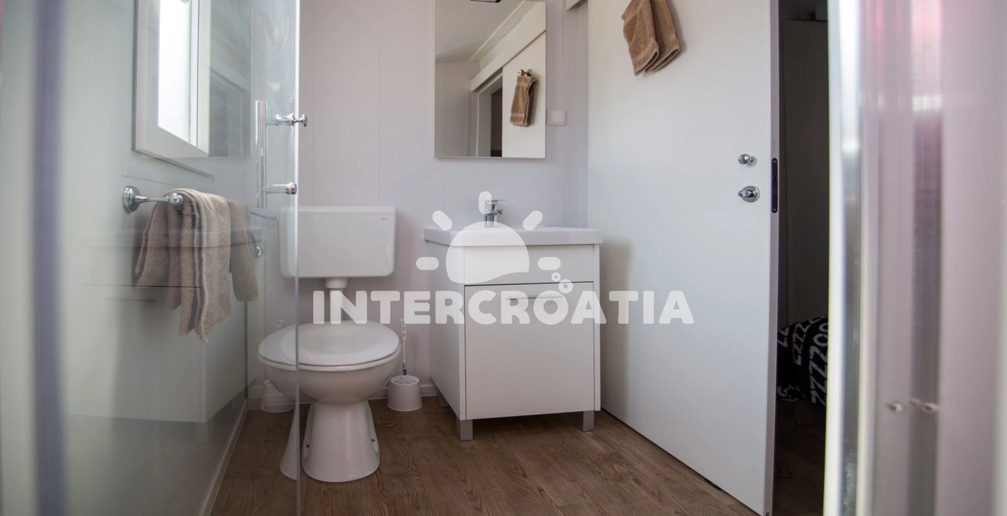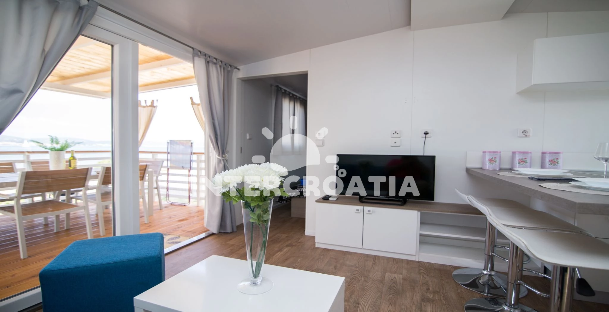 Mobilheim (32 m2) s výhledem na moře. Nachází se v přízemí objektu. Mobilheim má 2 ložnice a je vhodný pro až 6 osob. Kuchyňská linka je vybavena varnou deskou, nádobím, lednicí, mrazákem. V obývací místnosti je rozložitelná pohovka (extra lůžko pro 2 osoby). K dispozici televize se satelitním programem. První ložnice s dvoulůžkem. Druhá ložnice se 2 jednolůžky. První koupelna se sprchovým koutem, umyvadlem, WC. Druhá koupelna se sprchovým koutem, umyvadlem, WC. Hostům je k dispozici parkování u objektu zdarma.