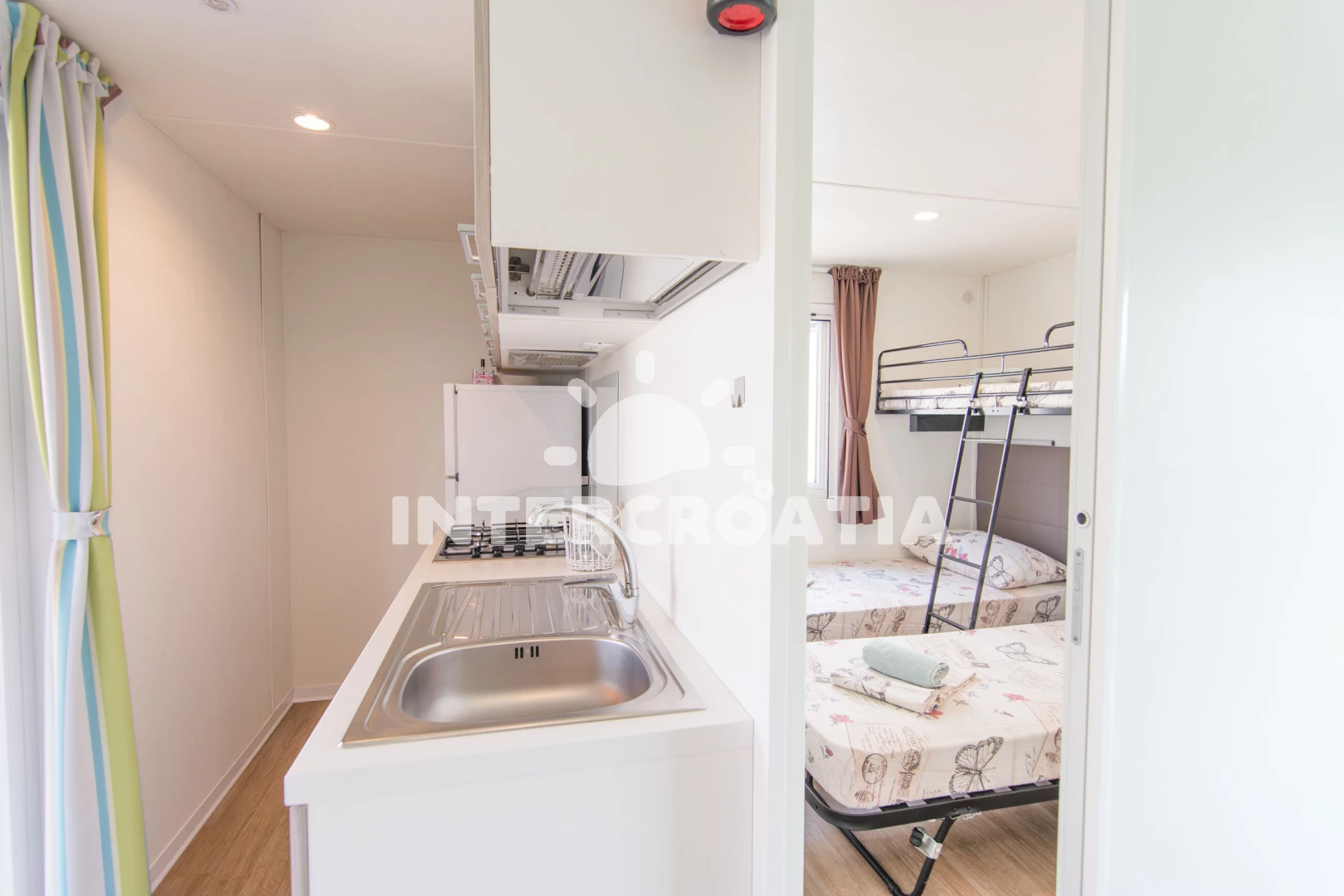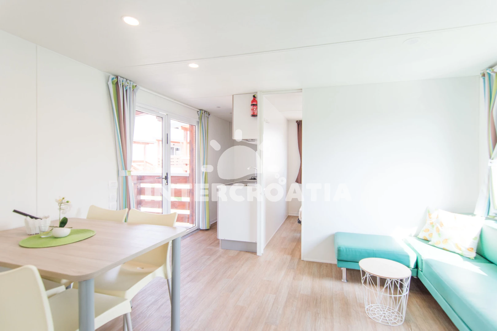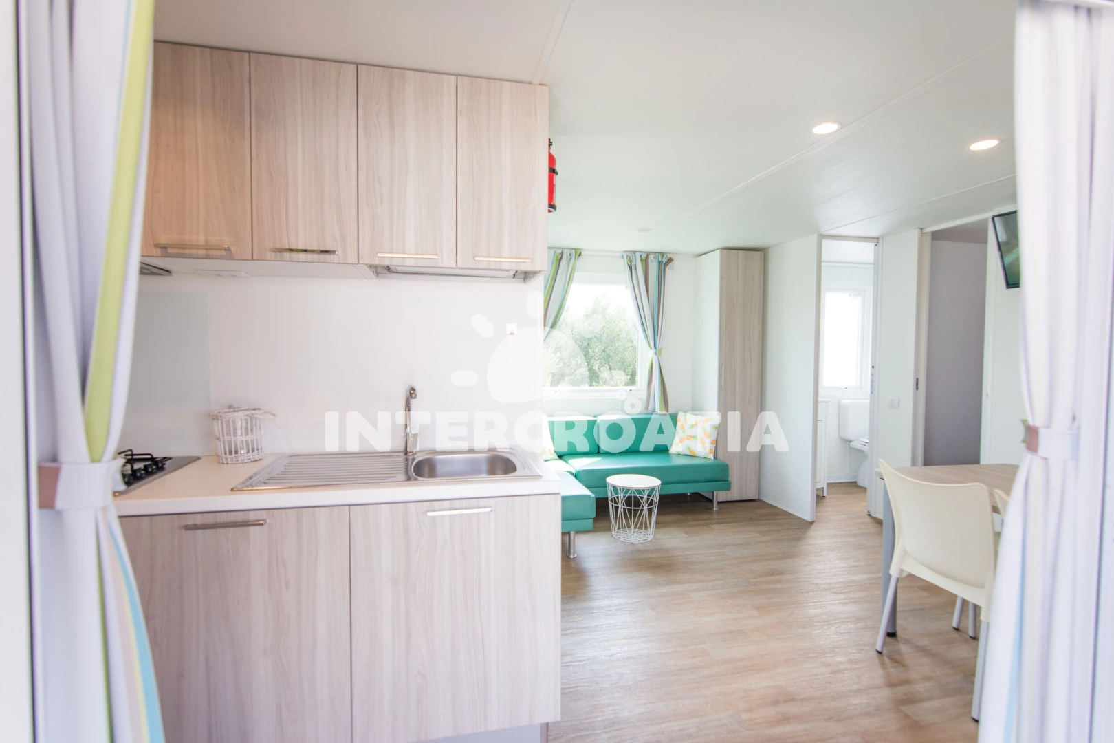 Mobilheim se nachází 120 m od moře a pláže. Pláž je písčitá a kamenitá. Mobilheim disponuje bazénem s lehátky pro ubytované hosty. U objektu je k dispozici společná zahrada s posezením a grilem. Parkování je 50m - 150 m od domu.