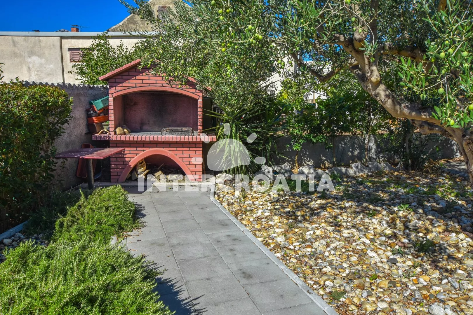Vzdálenosti: Moře a oblázková pláž 430 m, restaurace 100 m, centrum, supermarket 300 m, půjčovna cyklistických kol, bar, pošta, potápění 400 m, ambulance, veřejná doprava 450 m, lékárna, směnárna, čerpací stanice, půjčovna motorových člunů 500 m, tenis 1 km, přístav, trajekt 8,3 km, letiště 32 km.