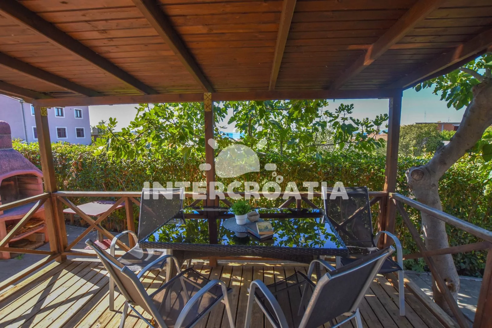 Vzdálenosti: Moře a oblázková pláž 430 m, restaurace 100 m, centrum, supermarket 300 m, půjčovna cyklistických kol, bar, pošta, potápění 400 m, ambulance, veřejná doprava 450 m, lékárna, směnárna, čerpací stanice, půjčovna motorových člunů 500 m, tenis 1 km, přístav, trajekt 8,3 km, letiště 32 km.