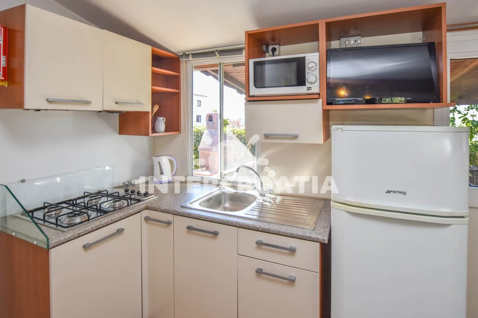 Přízemní domek (30 m2) s terasou a venkovním posezením. Dům má 2 ložnice a je vhodný pro až 5 osob. Obývací pokoj je spojený s kuchyní. Kuchyňská linka je vybavena varnou deskou, digestoří,… Více informací
