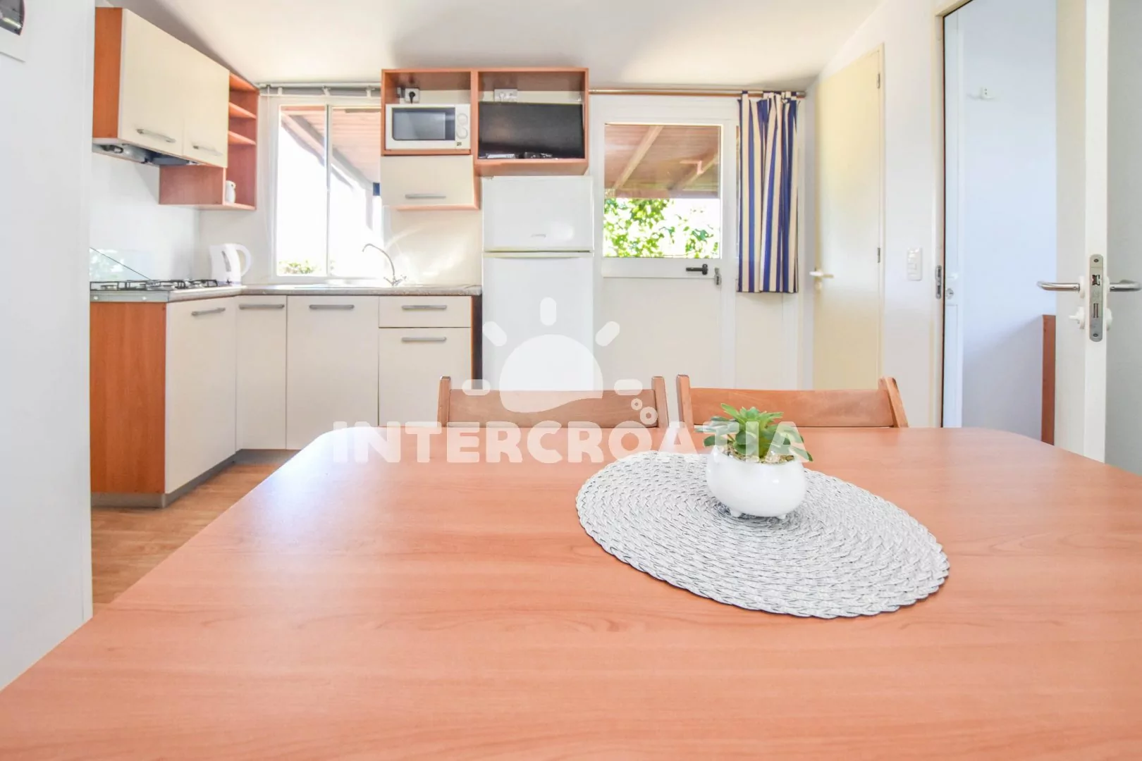 Přízemní domek (30 m2) s terasou a venkovním posezením. Dům má 2 ložnice a je vhodný pro až 5 osob. Obývací pokoj je spojený s kuchyní. Kuchyňská linka je vybavena varnou deskou, digestoří,…