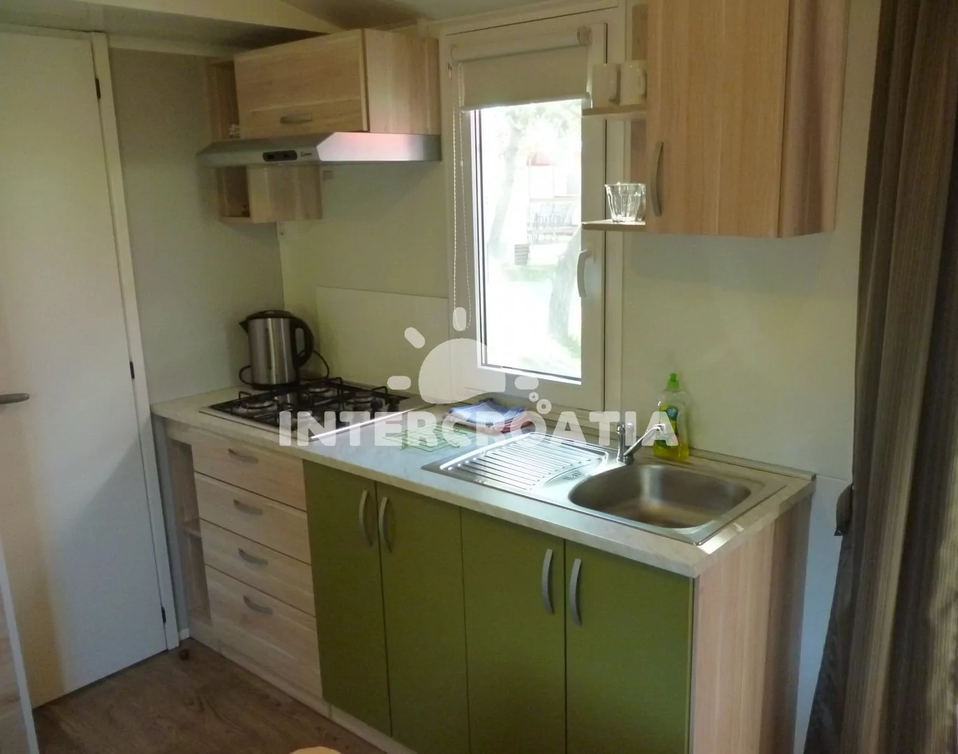 Přízemní domek (24 m2) s terasou a venkovním posezením je vhodný pro 4 osoby. Obývací místnost je spojena s kuchyní. Kuchyňská linka je vybavena varnou deskou, digestoří, mikrovlnnou troubou,…