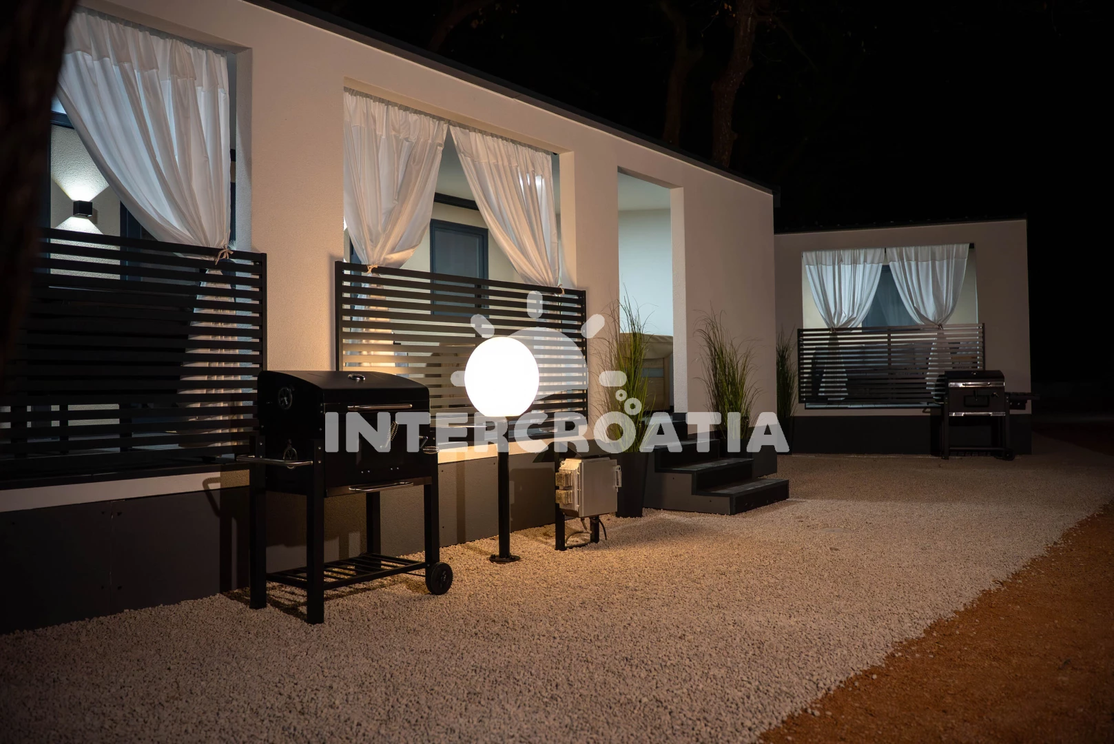 Vzdálenosti: Moře 300 m, pláž 380 m (oblázková a betonové desky), čerpací stanice 250 m, centrum 280 m, supermarket 280 m, veřejná doprava 280 m, bar 280 m, restaurace 280 m, lékárna 300 m, ambulance 300 m, půjčovna motorových člunů 500 m, tenisové kurty 800 m,