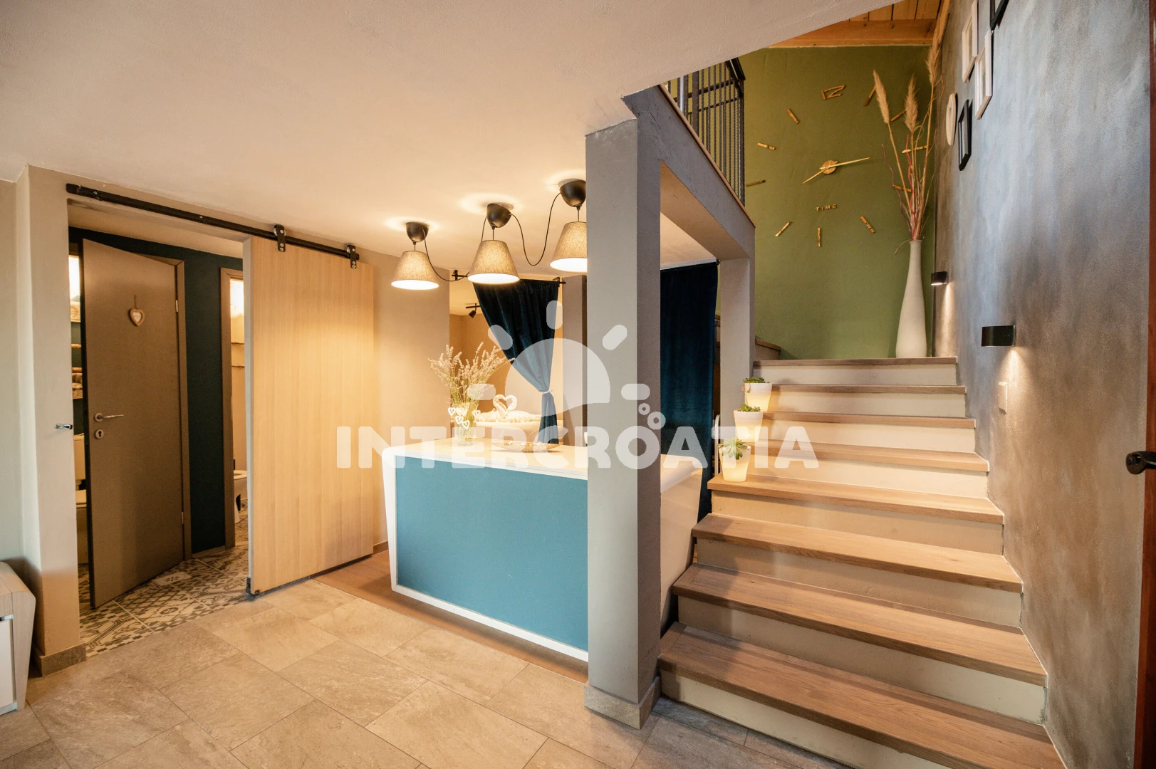 Vzdálenosti: Moře 7 km, pláž 7 km (oblázková a betonové desky), muzeum 200 m, centrum 450 m, pošta 450 m, bar 450 m, supermarket 450 m, lékárna 4 km, směnárna 4 km, ambulance 4 km, restaurace 7 km, půjčovna kol 7 km, čerpací stanice 7 km, diskotéka 7 km, banka 7 km, půjčovna motorových člunů 7 km, veřejná doprava 7 km, potápění 7,5 km, marina 12 km, trajekt (Rijeka) 25 km, letiště (Rijeka) 25 km,