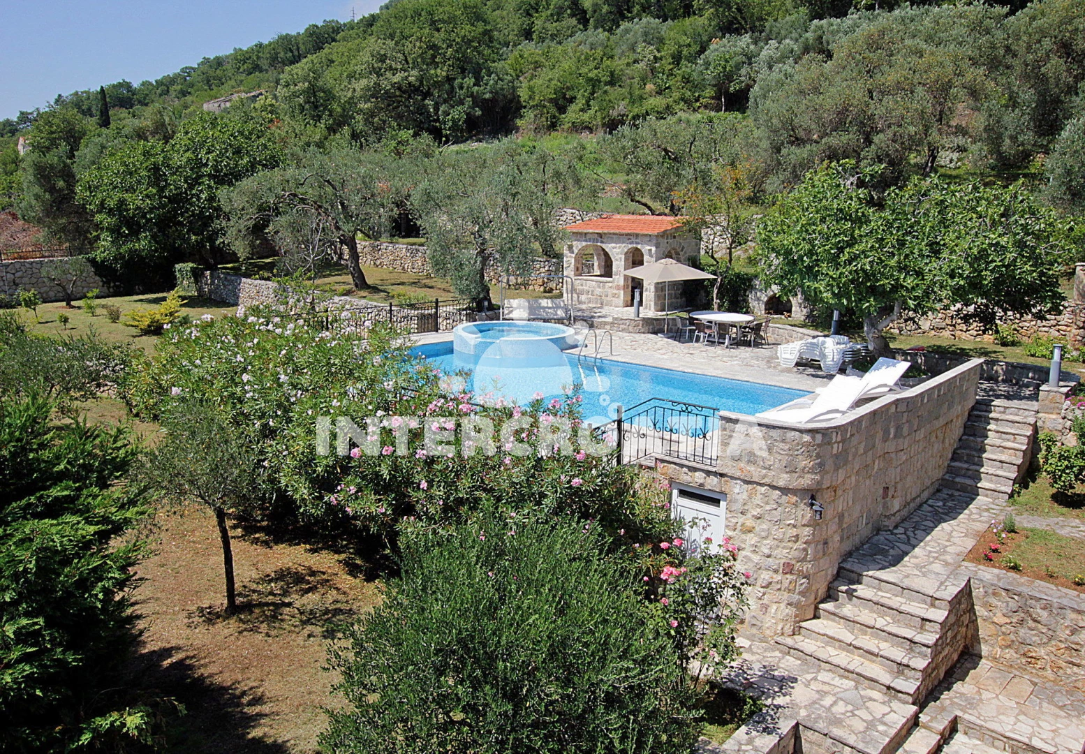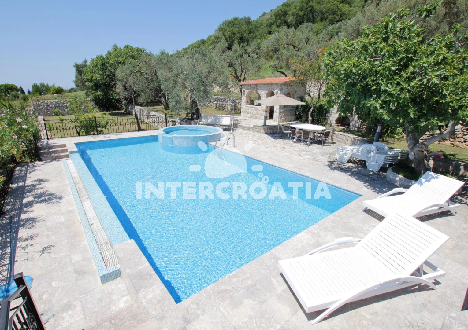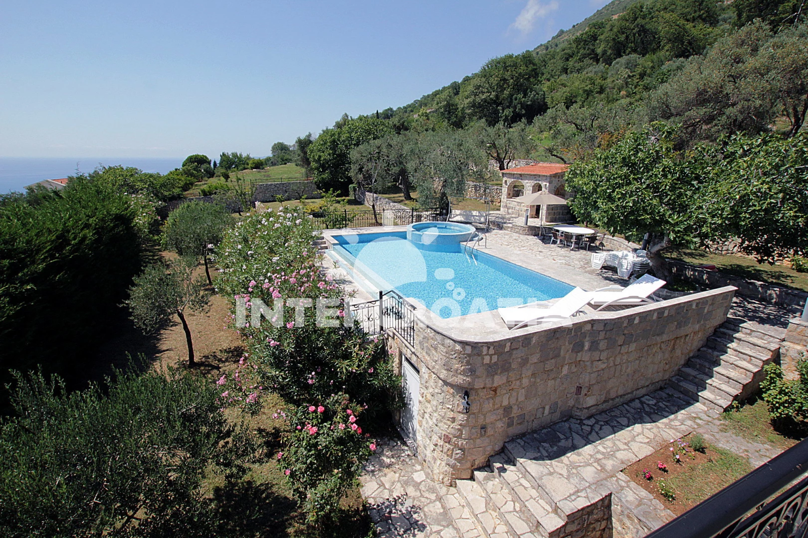 Vila se nachází 800 m od moře a pláže. Pláž je písčitá a oblázková. Vila disponuje bazénem s lehátky pro ubytované hosty. U objektu je k dispozici společná zahrada s posezením a grilem. Parkování je před domem.