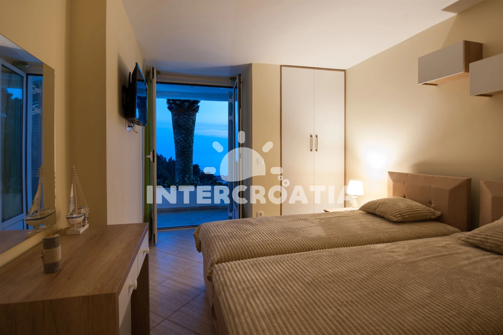 Vila (150 m2) s balkonem, a výhledem na moře. Vila má 1 ložnici a je vhodná pro až 8 osob. Kuchyňská linka je vybavena varnou deskou, kávovarem, toustovačem, troubou, myčkou na nádobí, mikrovlnnou troubou, rychlovarnou konvicí, nádobím, lednicí, mrazákem. V obývací místnosti je rozložitelná pohovka (extra lůžko pro 1 osobu). K dispozici televize se satelitním programem, sejf, radio, žehlička. První koupelna se sprchovým koutem, umyvadlem, fénem a WC. Druhá koupelna se sprchovým koutem, umyvadlem, fénem a WC.