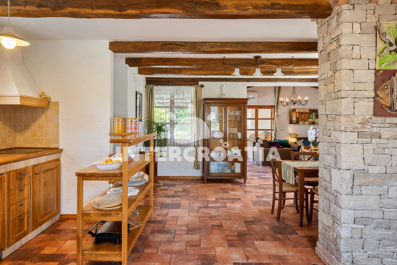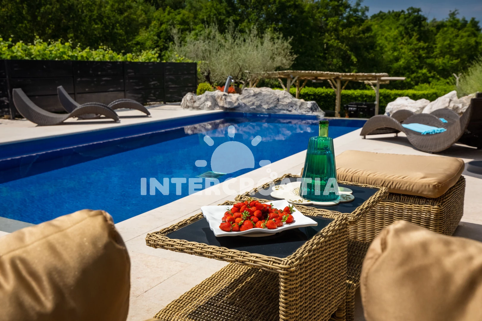Vzdálenosti: Moře 23 km, pláž 23 km (skalnatá, oblázková a betonové desky), restaurace 5 km, supermarket 5 km, bar 5 km, ambulance 10 km, čerpací stanice 10,5 km, banka 10,6 km, pošta 10,7 km, lékárna 11 km, centrum 11 km, potápění 23 km, marina 23 km, tenisové kurty 23 km, mini golf 25 km, trajekt (Brestova) 74 km, park Plitvice 75 km, letiště (Pula) 90 km,