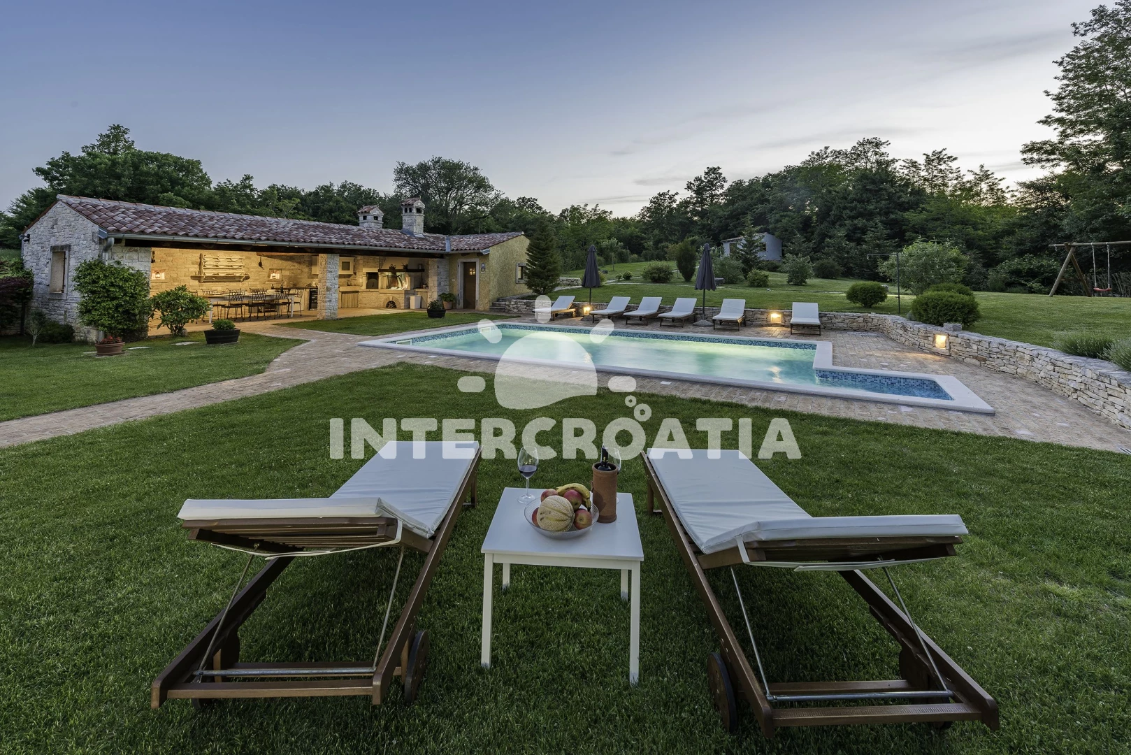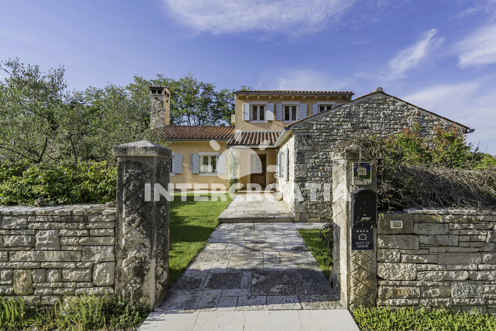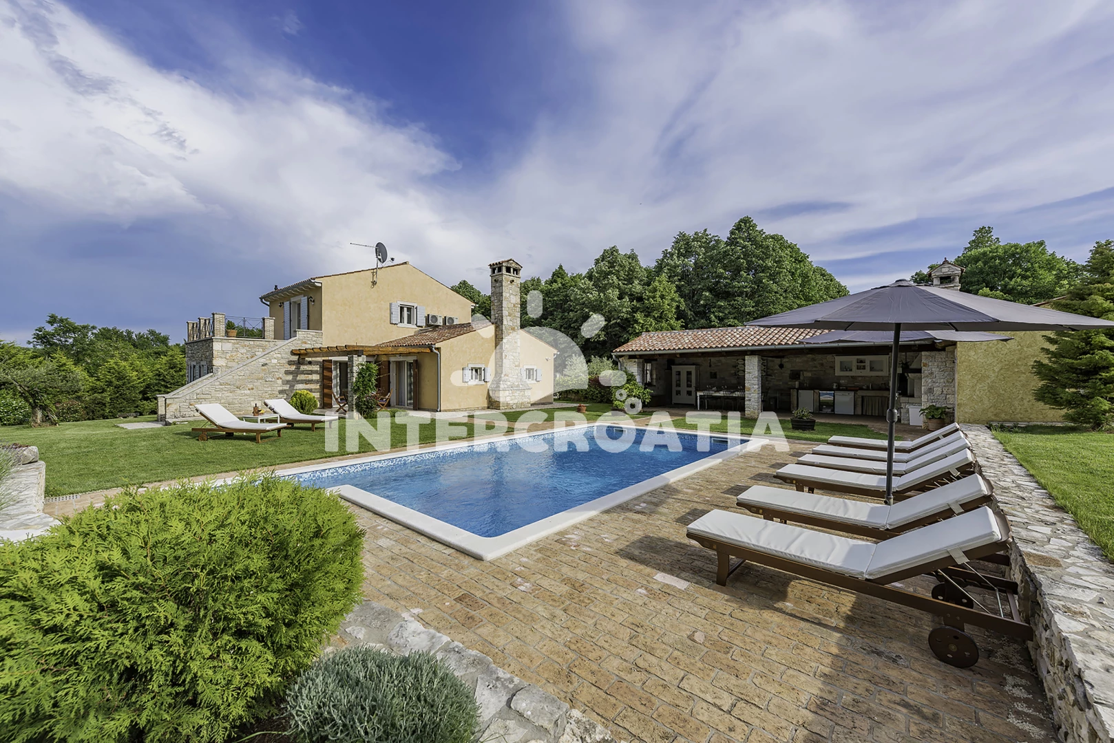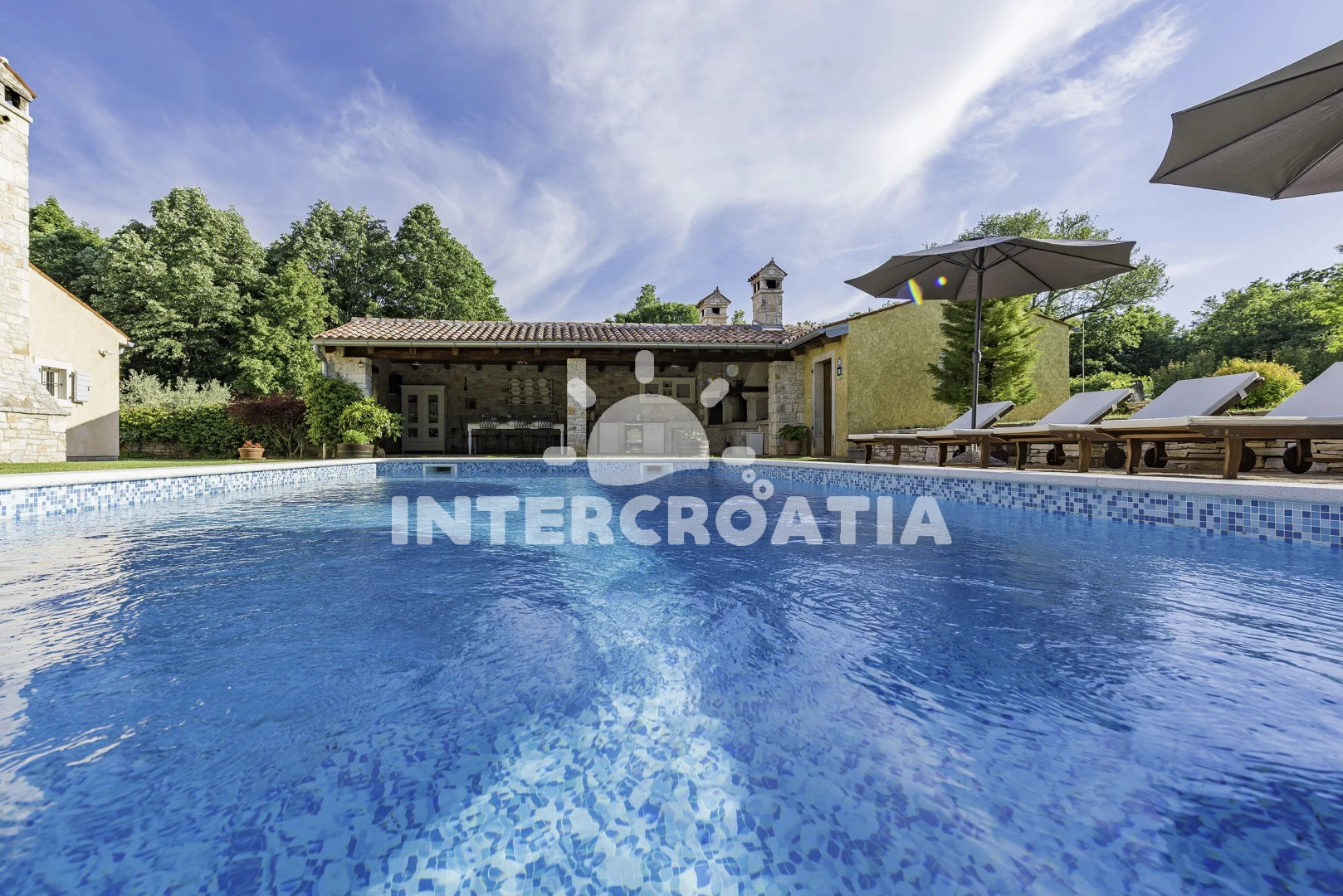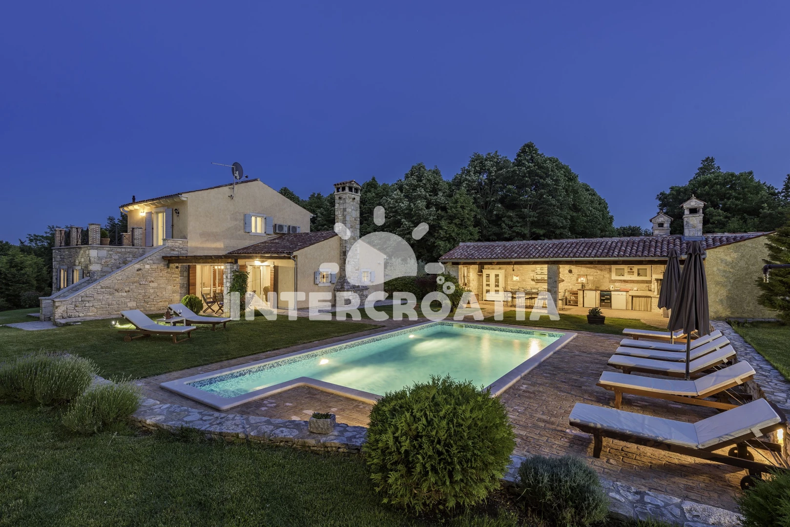 Vila se nachází 7000 m od moře a pláže. Pláž je skalnatá, oblázková a větší kamení. Vila disponuje bazénem s lehátky pro ubytované hosty. K dispozici sauna. U objektu je k dispozici společná zahrada s posezením a grilem. Parkování je před domem.