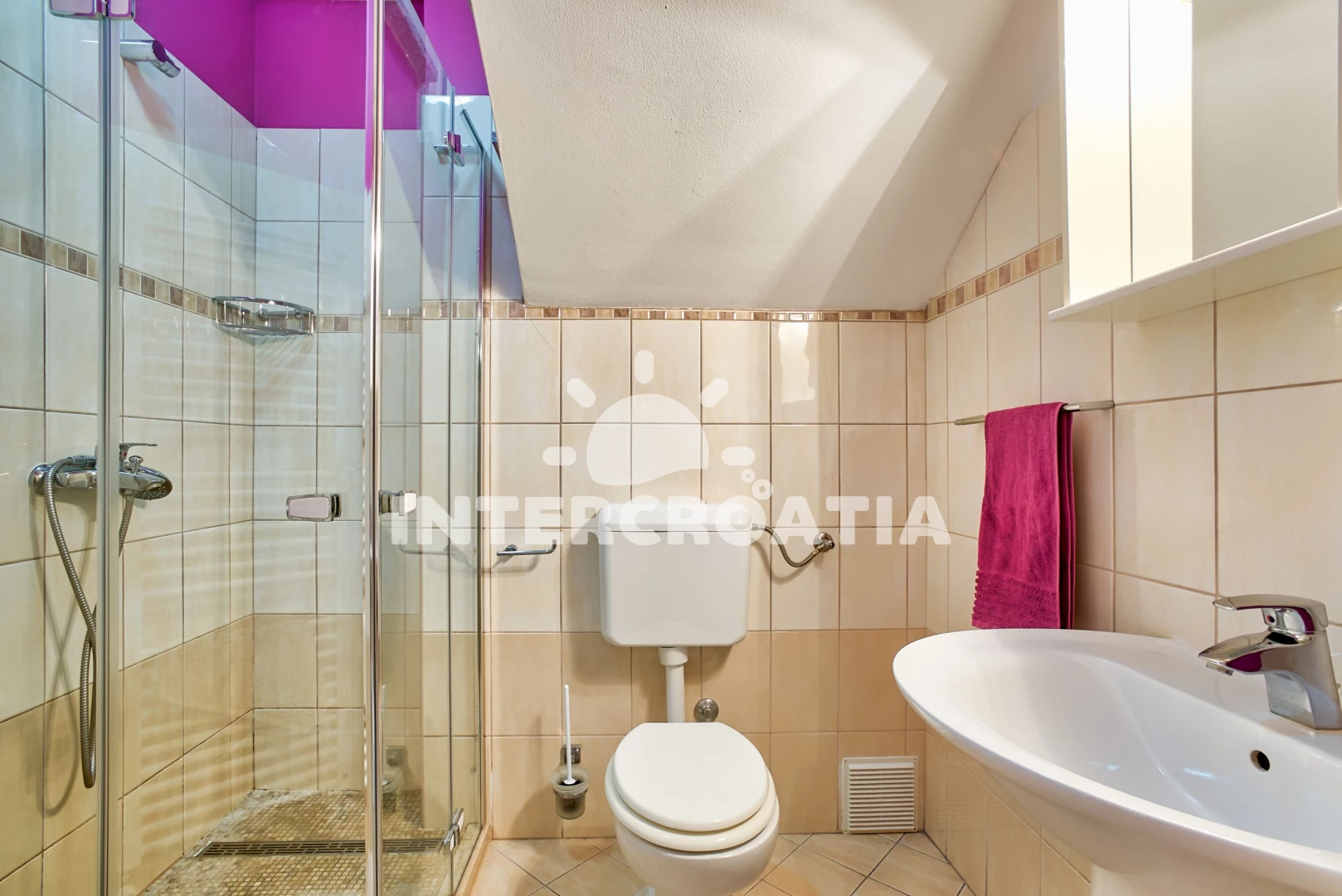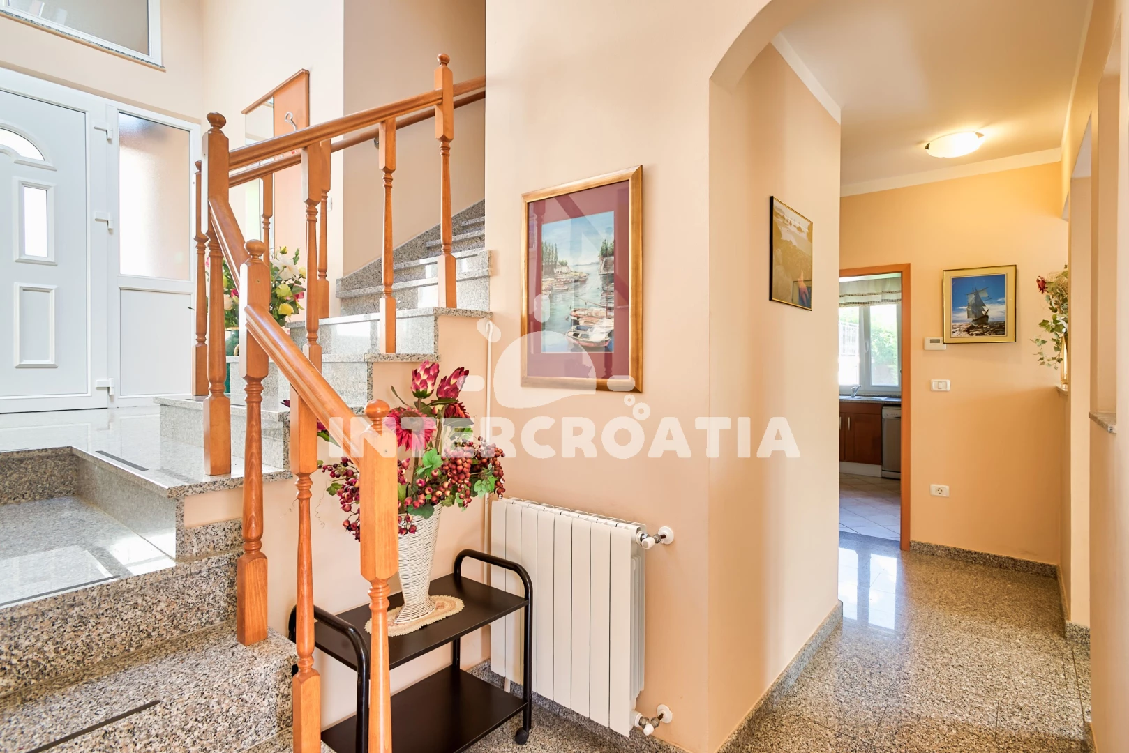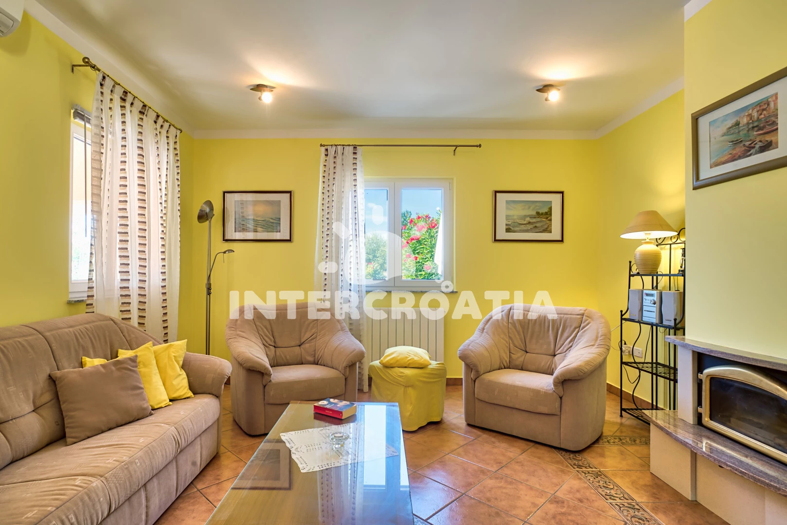 Vzdálenosti: Moře 1,5 km, pláž 3,5 km (oblázková a betonové desky), restaurace 1,5 km, směnárna 2,5 km, supermarket 3,5 km, muzeum 3,5 km, ambulance 3,5 km, bar 3,5 km, veřejná doprava 3,5 km, pošta 3,5 km, banka 3,5 km, centrum 3,5 km, lékárna 3,5 km, čerpací stanice 4 km, trajekt (Brestova) 20 km, letiště (Pula) 40 km,