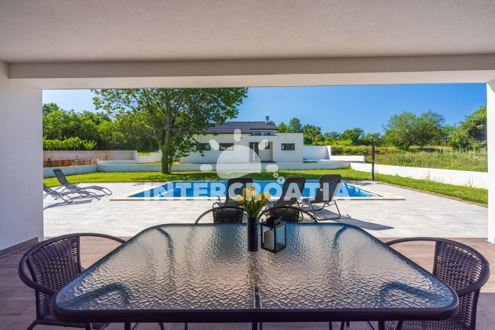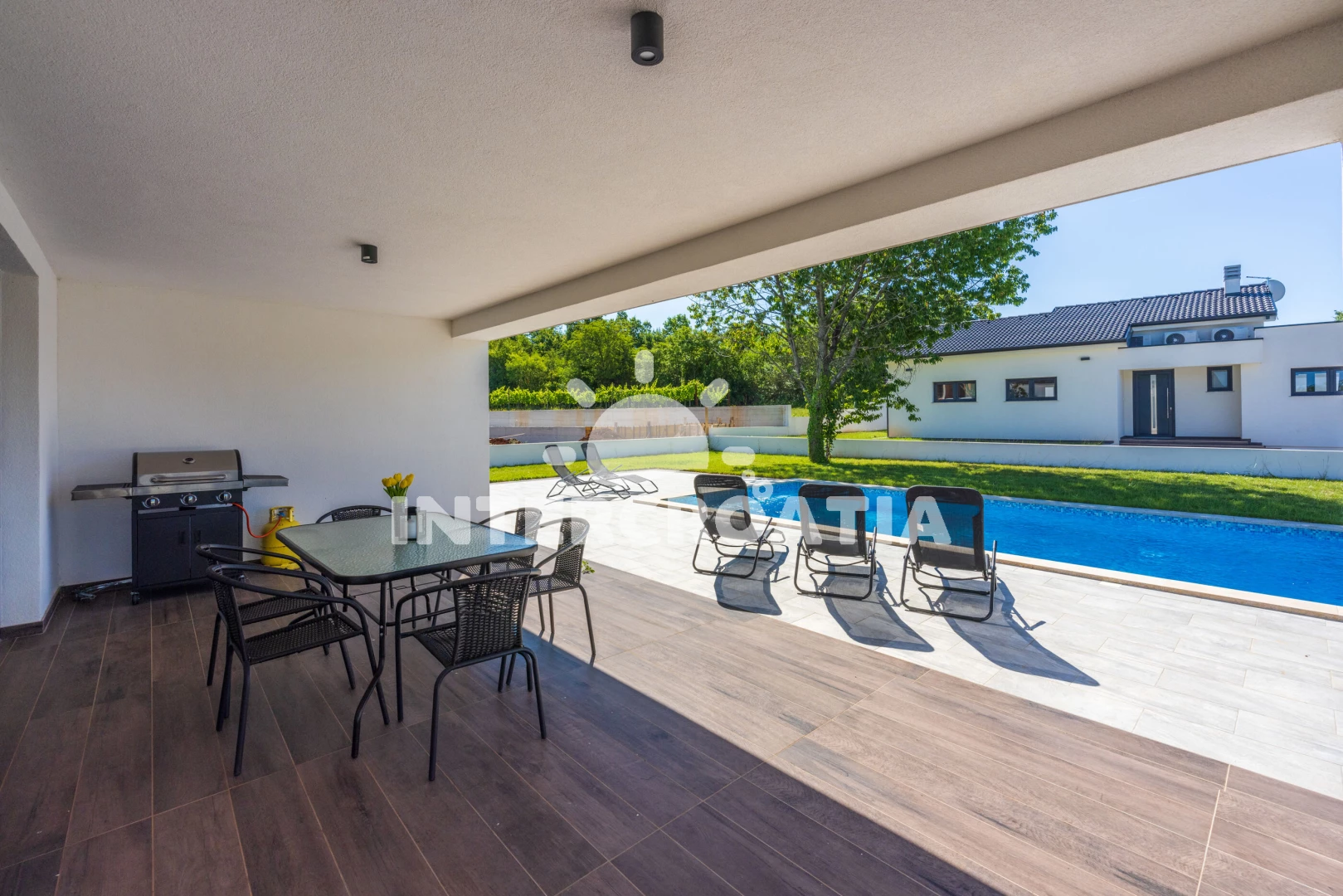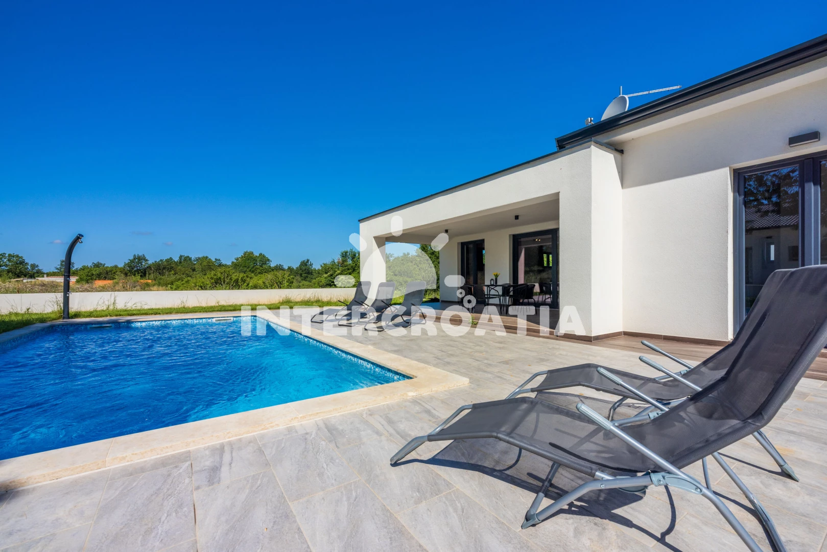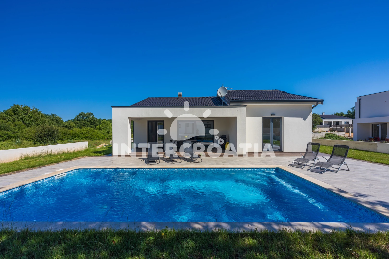 Vila se nachází 10000 m od moře a pláže. Pláž je písčitá, oblázková a skalnatá. Vila disponuje bazénem s lehátky pro ubytované hosty. U objektu je k dispozici společná zahrada s posezením a grilem. Parkování je před domem.