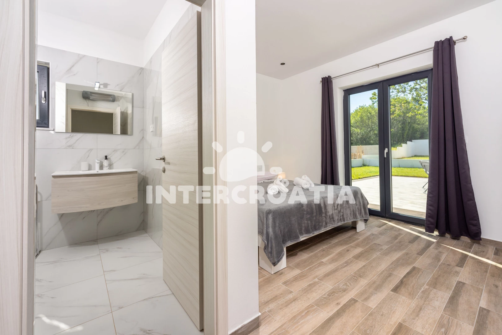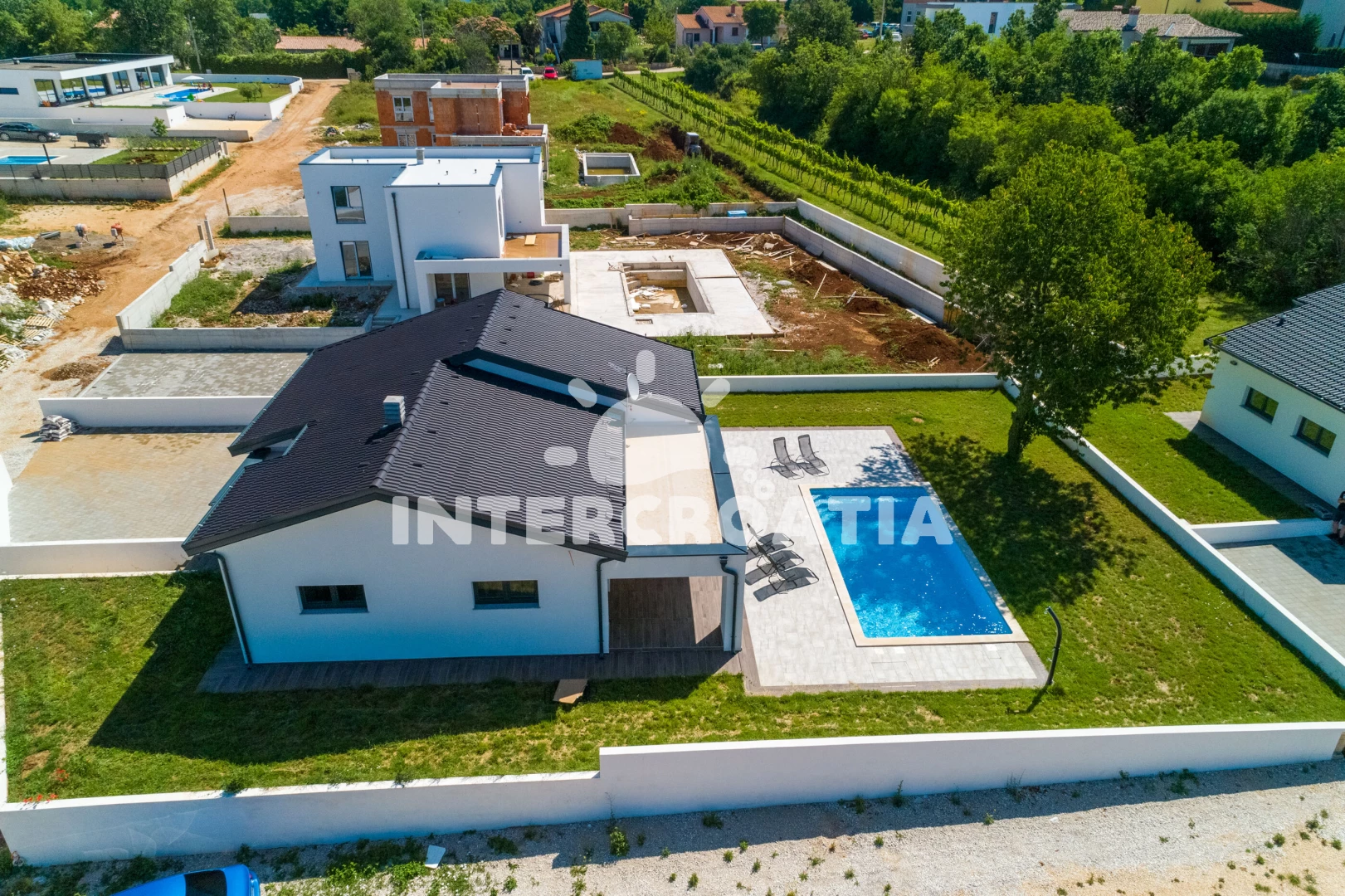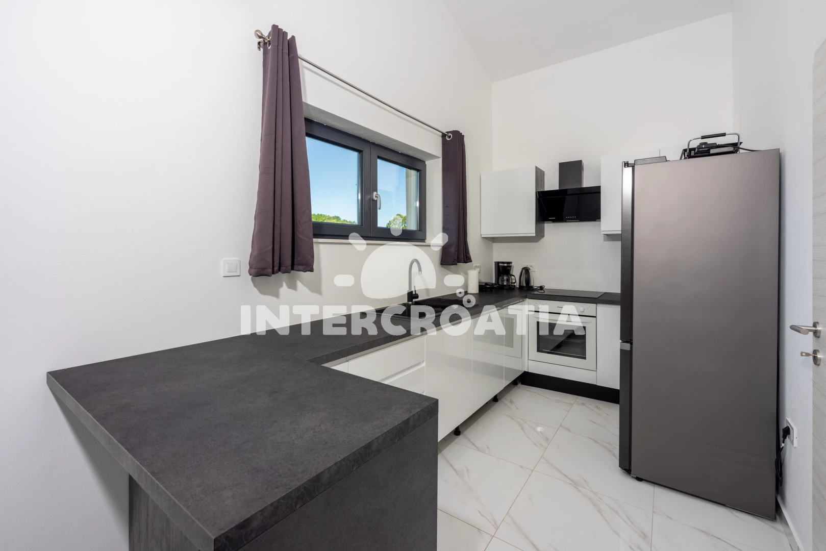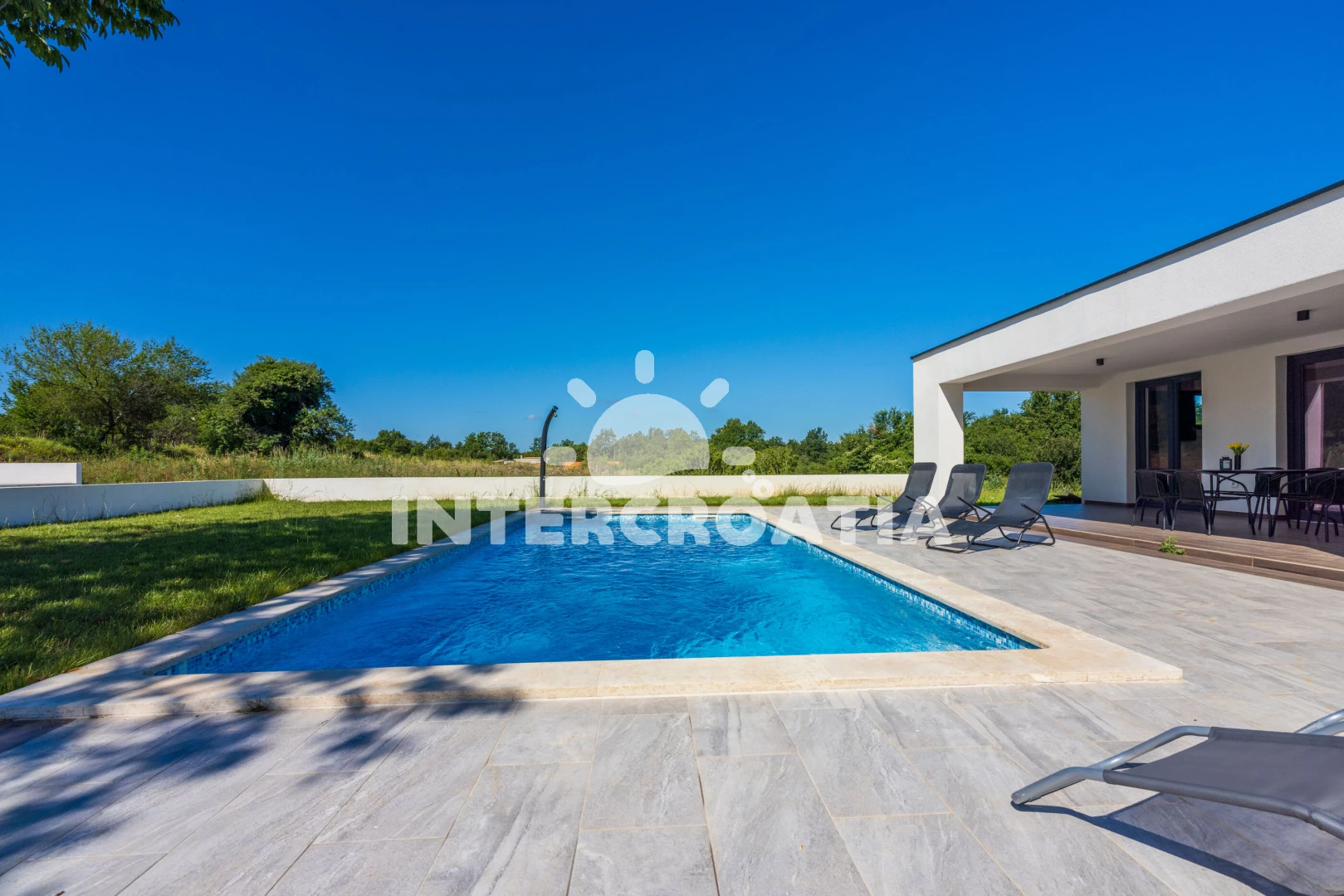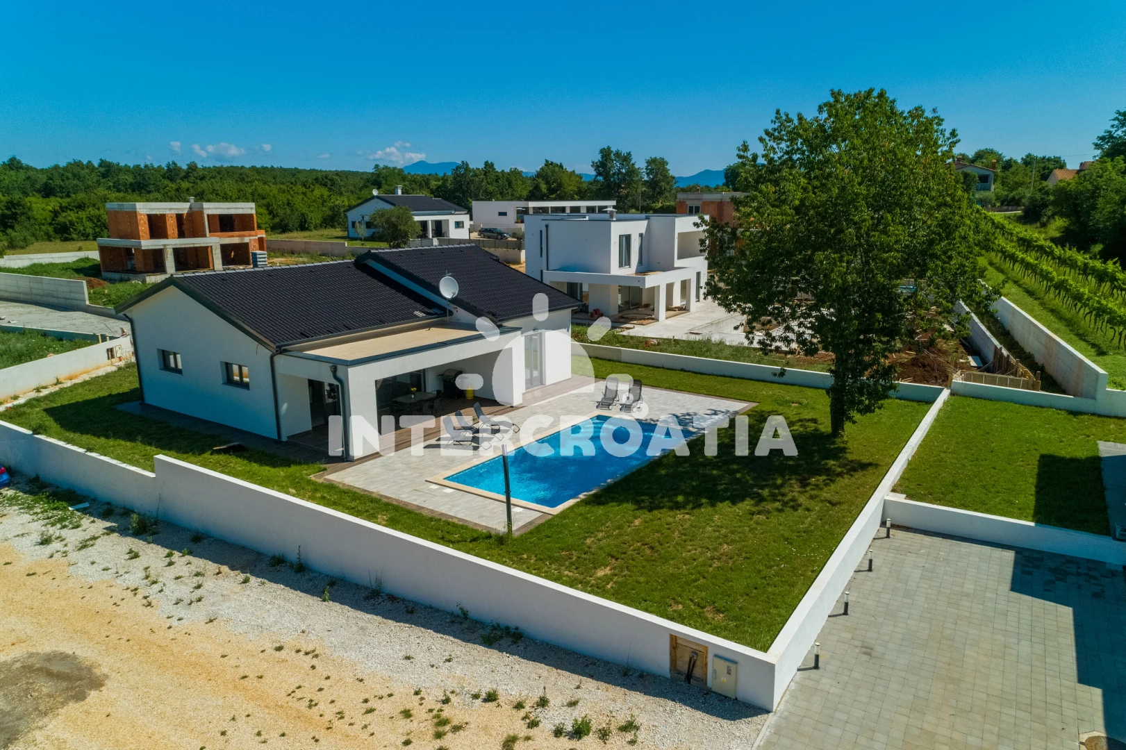 Vzdálenosti: Moře 6,4 km, pláž 10 km (písčitá, oblázková a skalnatá), lékárna 2 km, veřejná doprava 2 km, supermarket 2 km, směnárna 2 km, centrum 5,9 km, ambulance 5,9 km, čerpací stanice 5,9 km, banka 5,9 km, pošta 5,9 km, bar 5,9 km, restaurace 5,9 km, letiště (Pula) 43 km, trajekt (Pula) 45 km, park Plitvice 47 km,