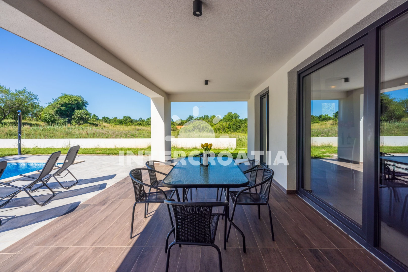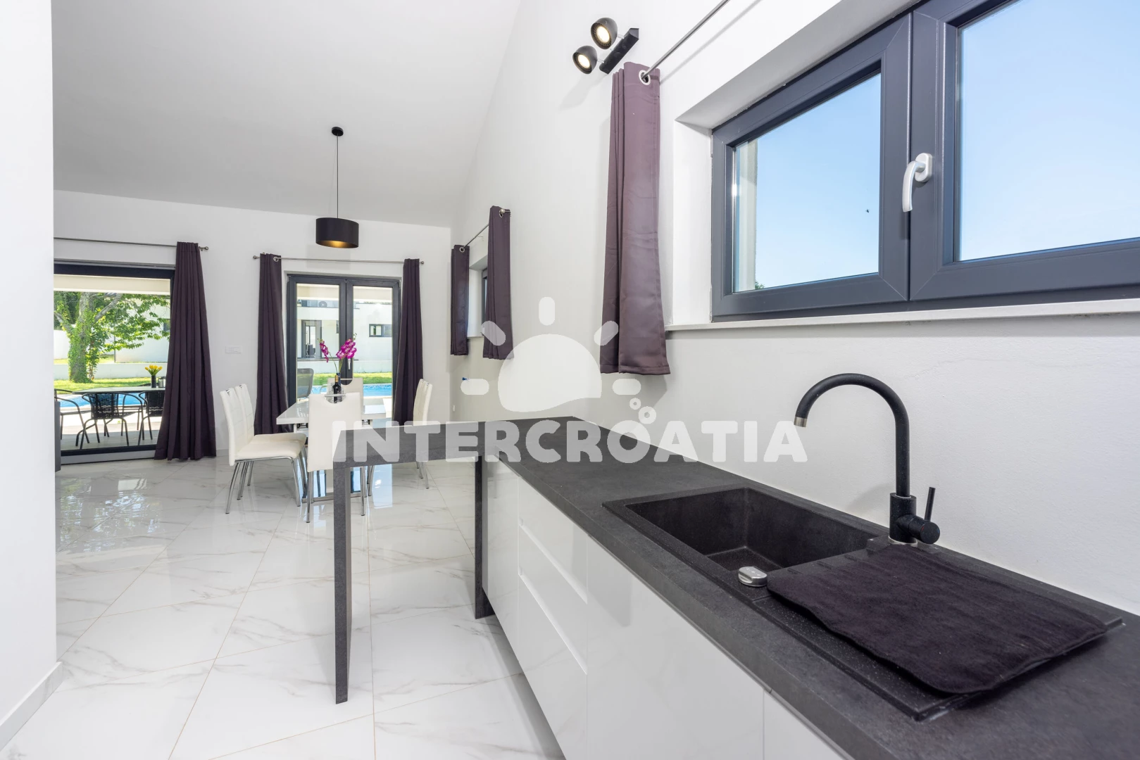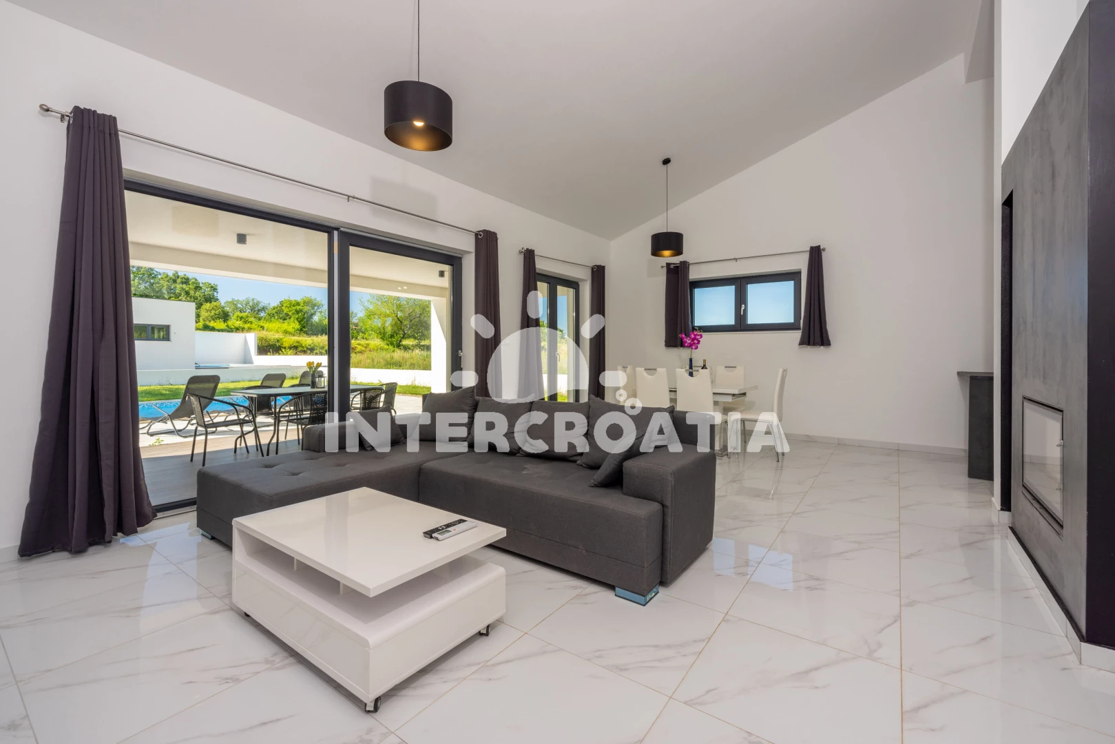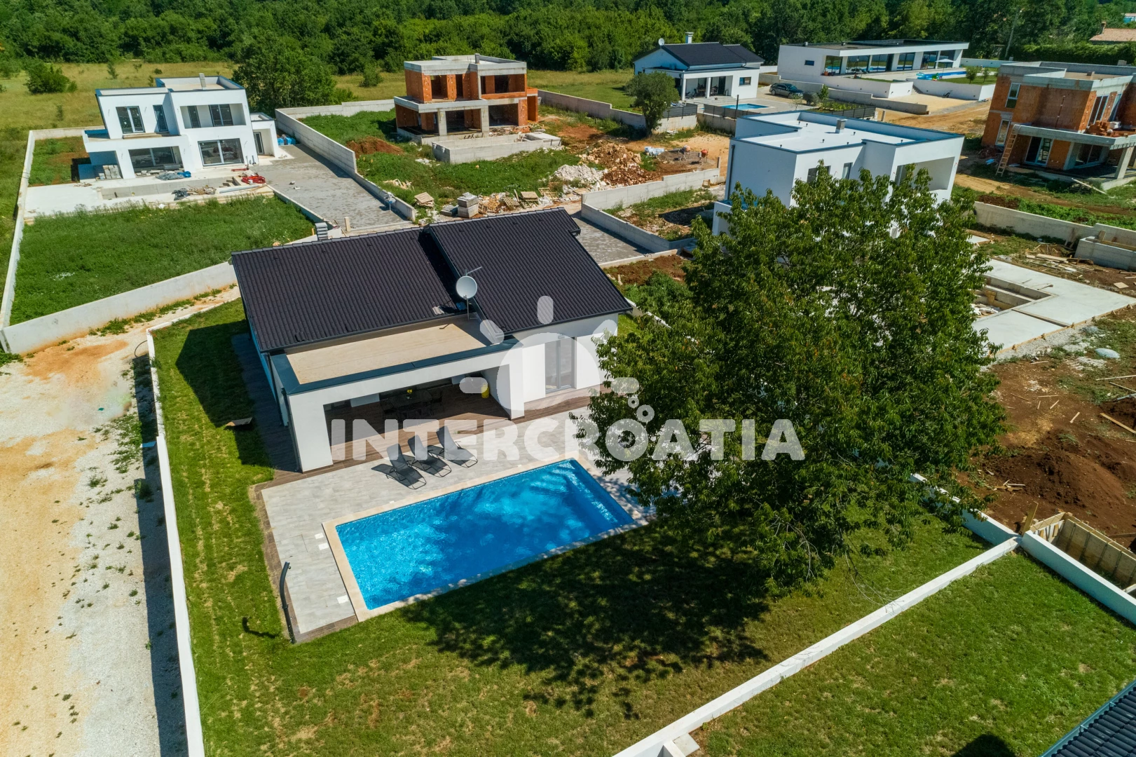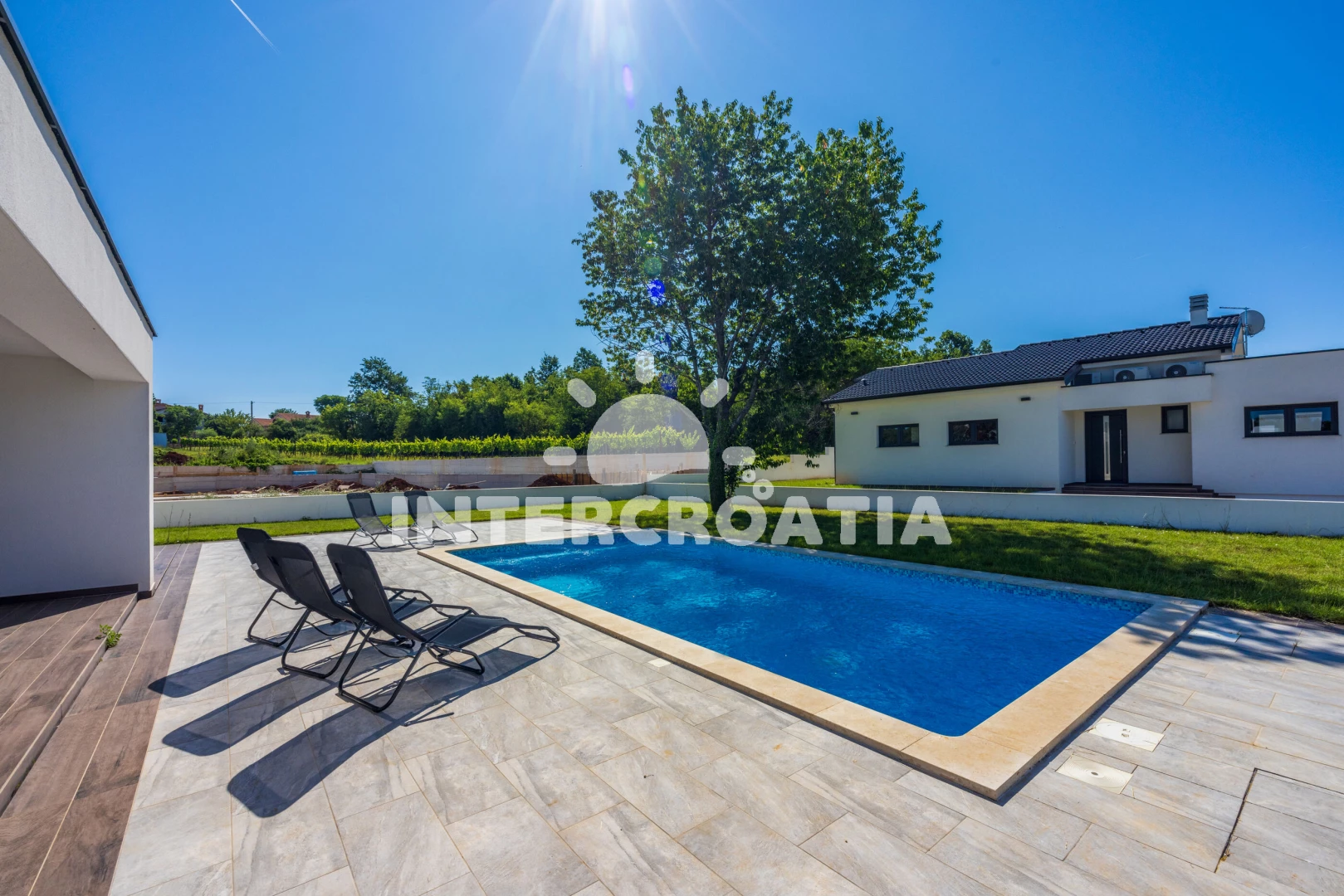 Vzdálenosti: Moře 6,4 km, pláž 10 km (písčitá, oblázková a skalnatá), lékárna 2 km, veřejná doprava 2 km, supermarket 2 km, směnárna 2 km, centrum 5,9 km, ambulance 5,9 km, čerpací stanice 5,9 km, banka 5,9 km, pošta 5,9 km, bar 5,9 km, restaurace 5,9 km, letiště (Pula) 43 km, trajekt (Pula) 45 km, park Plitvice 47 km,