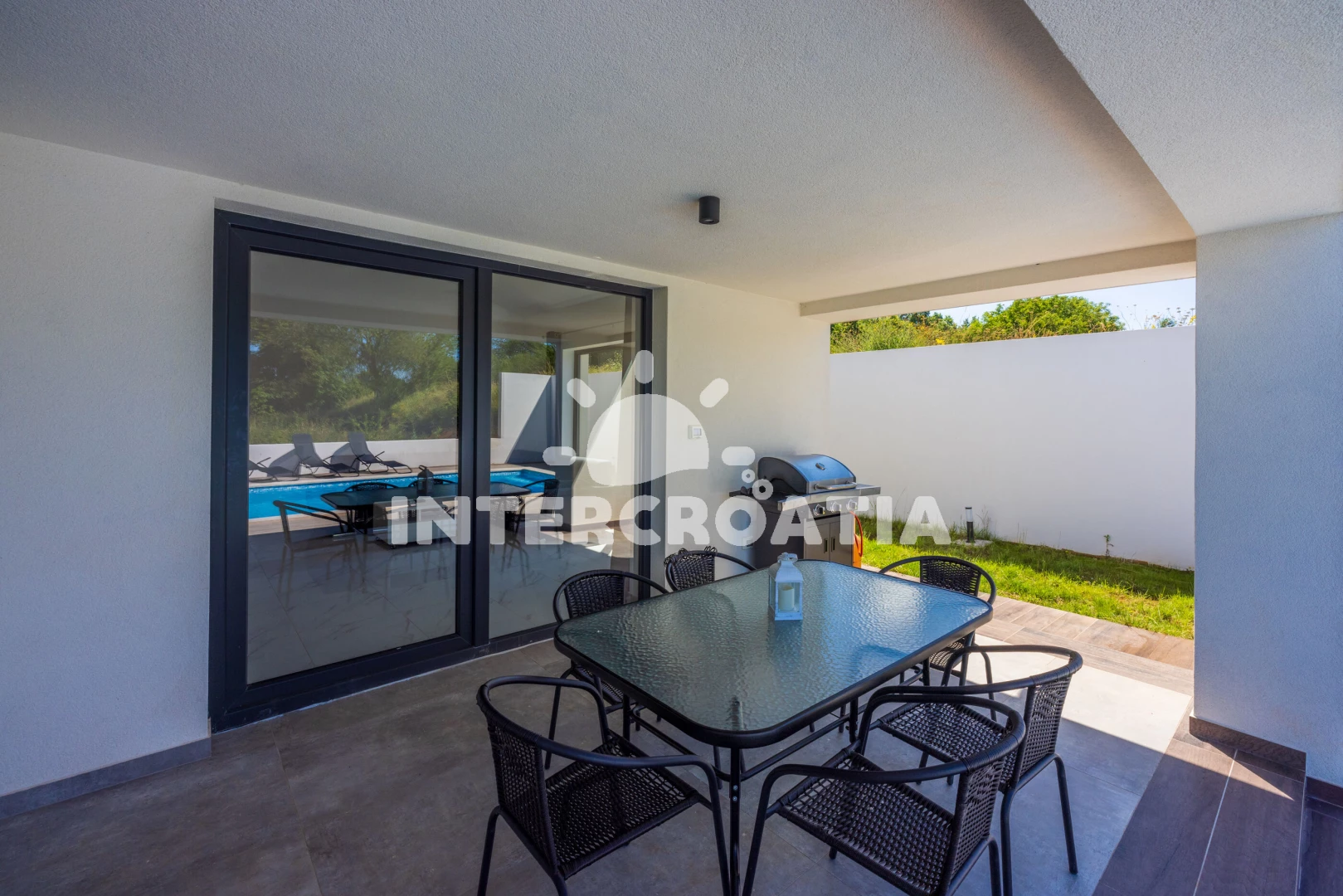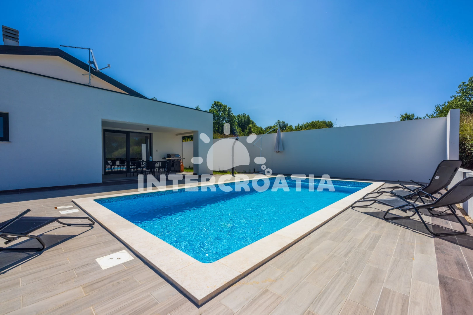 Vila se nachází 10000 m od moře a pláže. Pláž je písčitá, oblázková a skalnatá. Vila disponuje bazénem s lehátky pro ubytované hosty. U objektu je k dispozici společná zahrada s posezením a grilem. Parkování je před domem.
