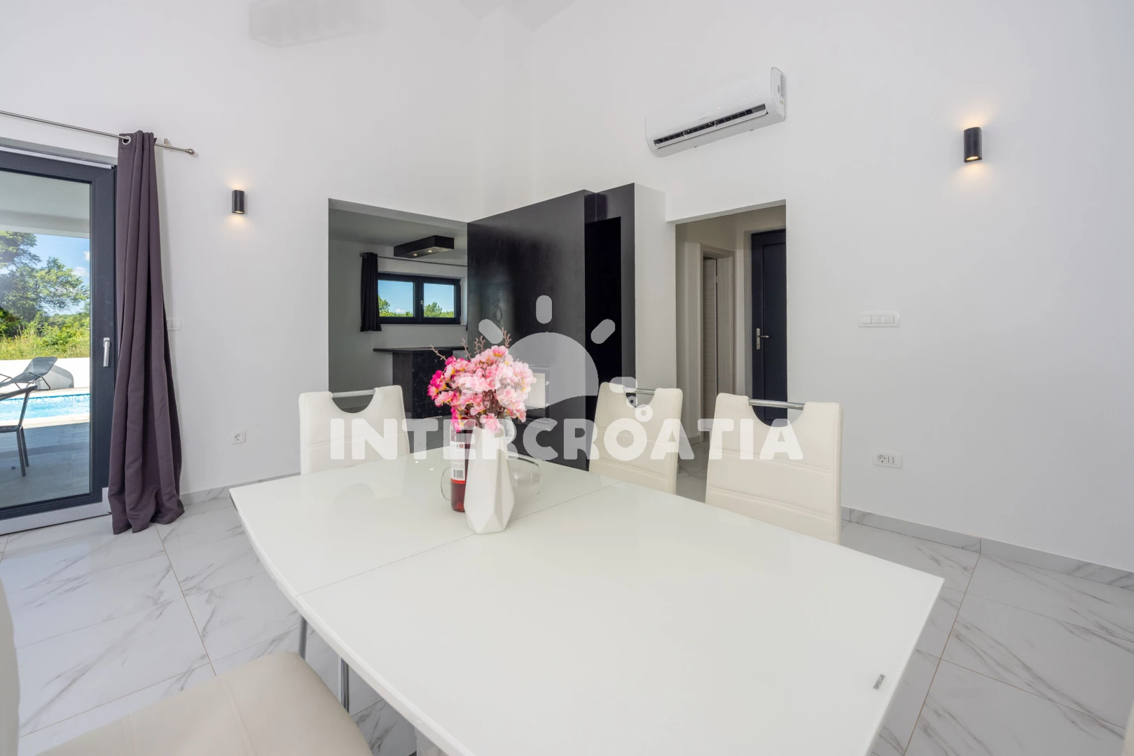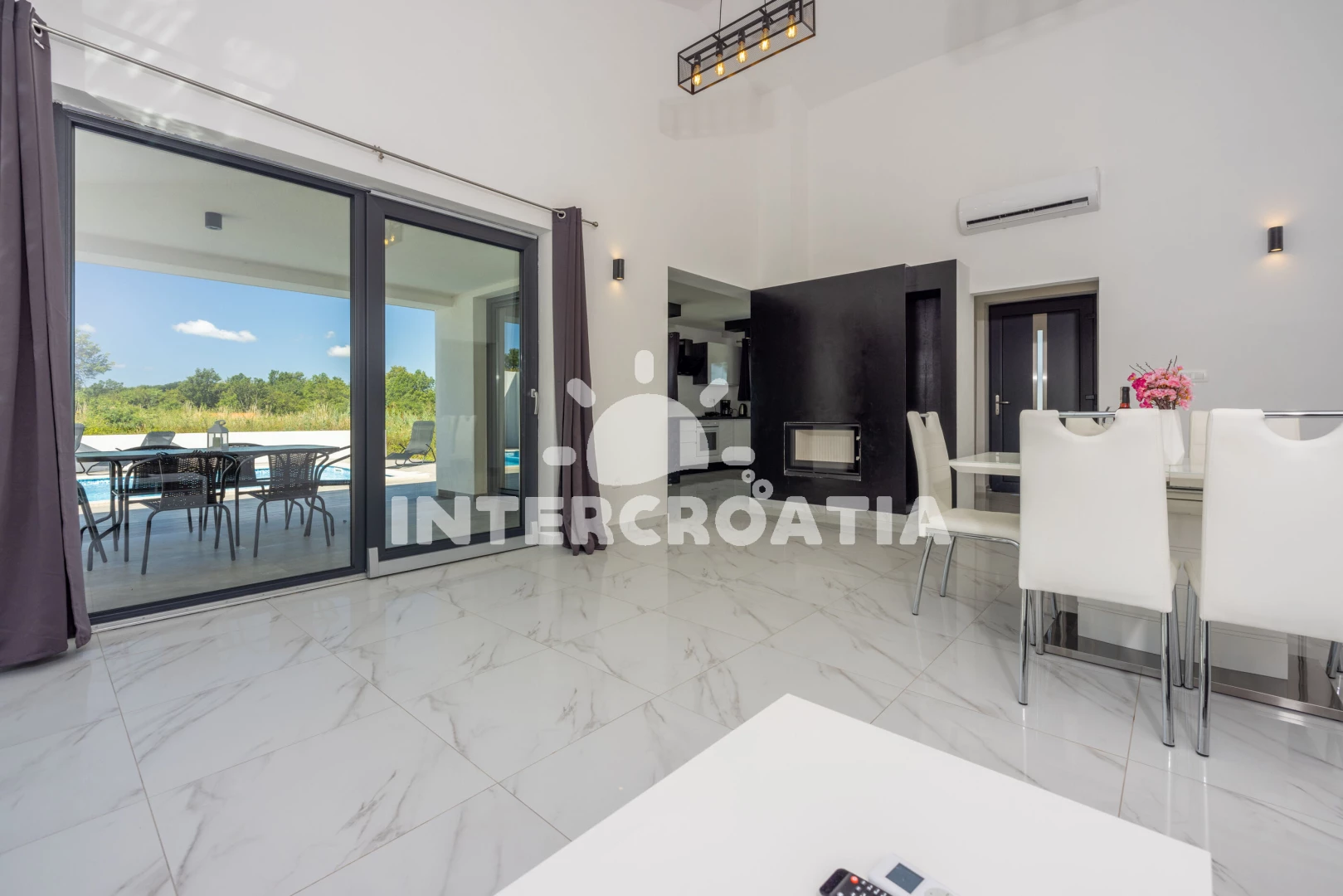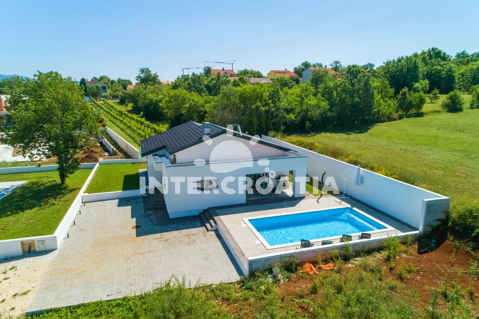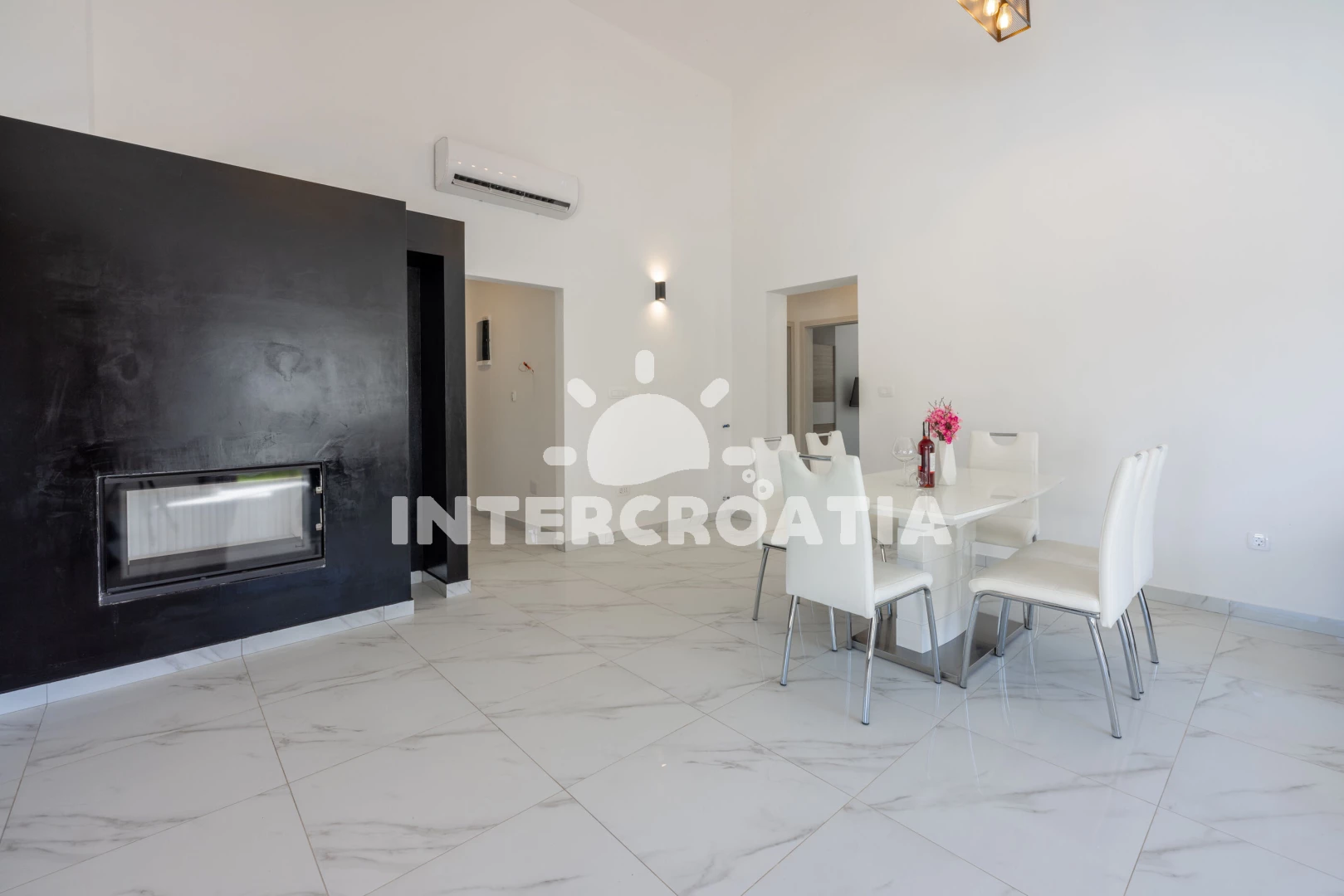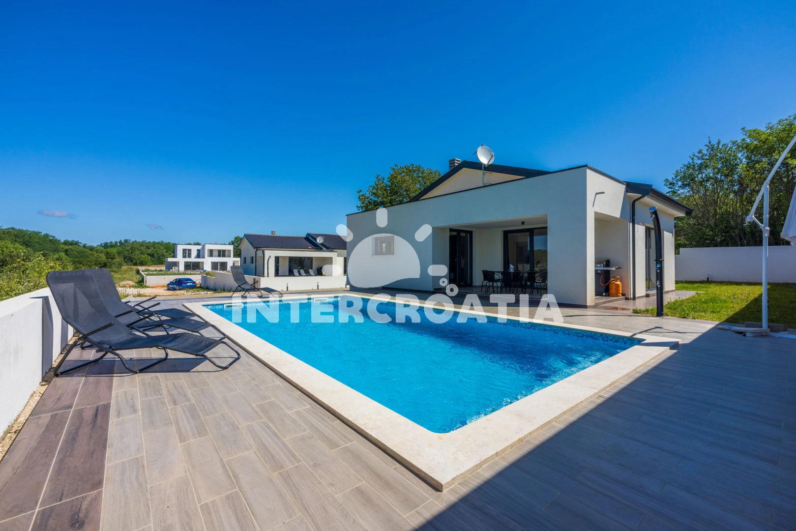 Vzdálenosti: Moře 6,4 km, pláž 10 km (písčitá, oblázková a skalnatá), veřejná doprava 2 km, lékárna 2 km, směnárna 2 km, supermarket 2 km, bar 5,9 km, centrum 5,9 km, čerpací stanice 5,9 km, banka 5,9 km, ambulance 5,9 km, restaurace 5,9 km, pošta 5,9 km, marina 10 km, letiště (Pula) 43 km, trajekt (Pula) 45 km, park Plitvice 47 km,