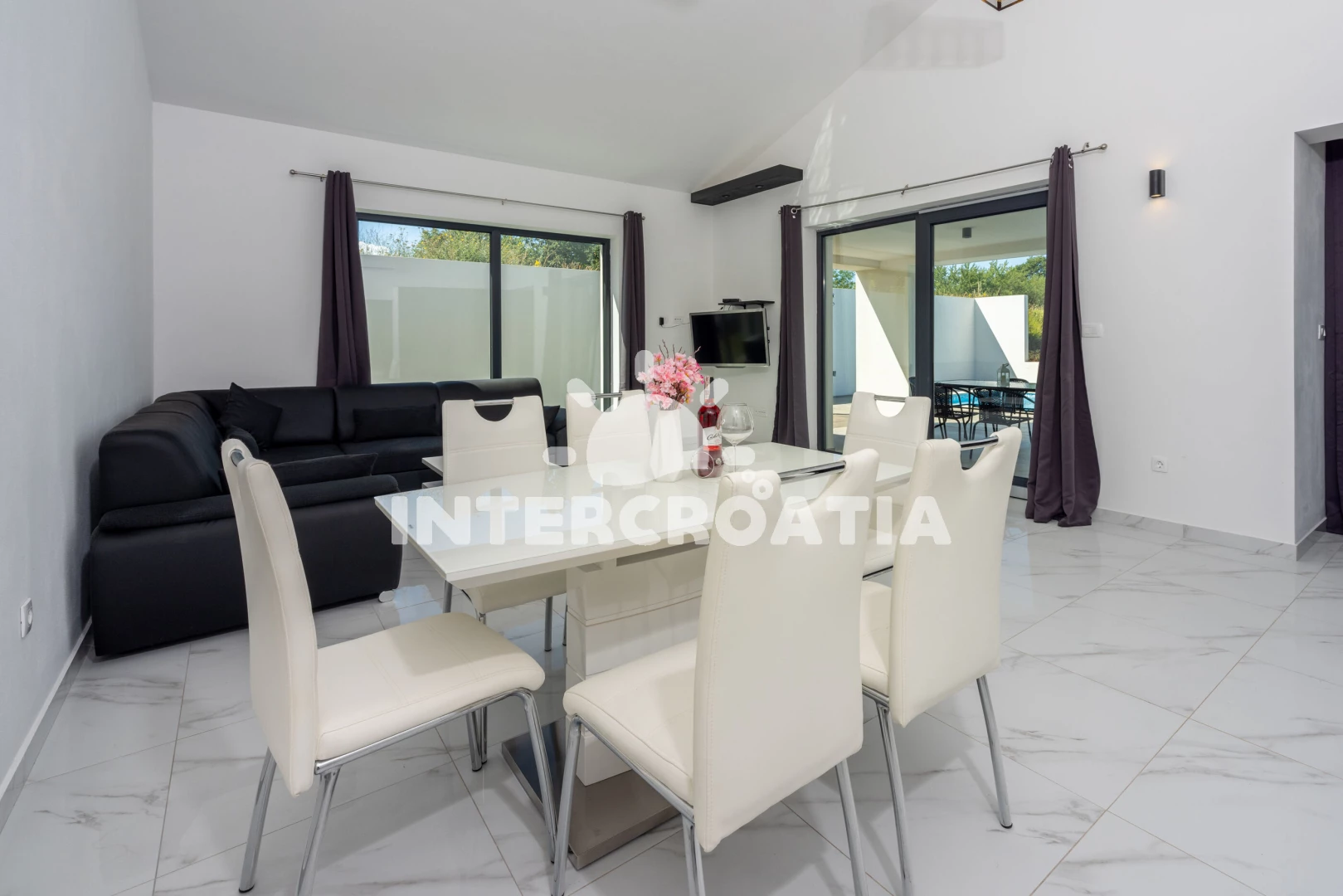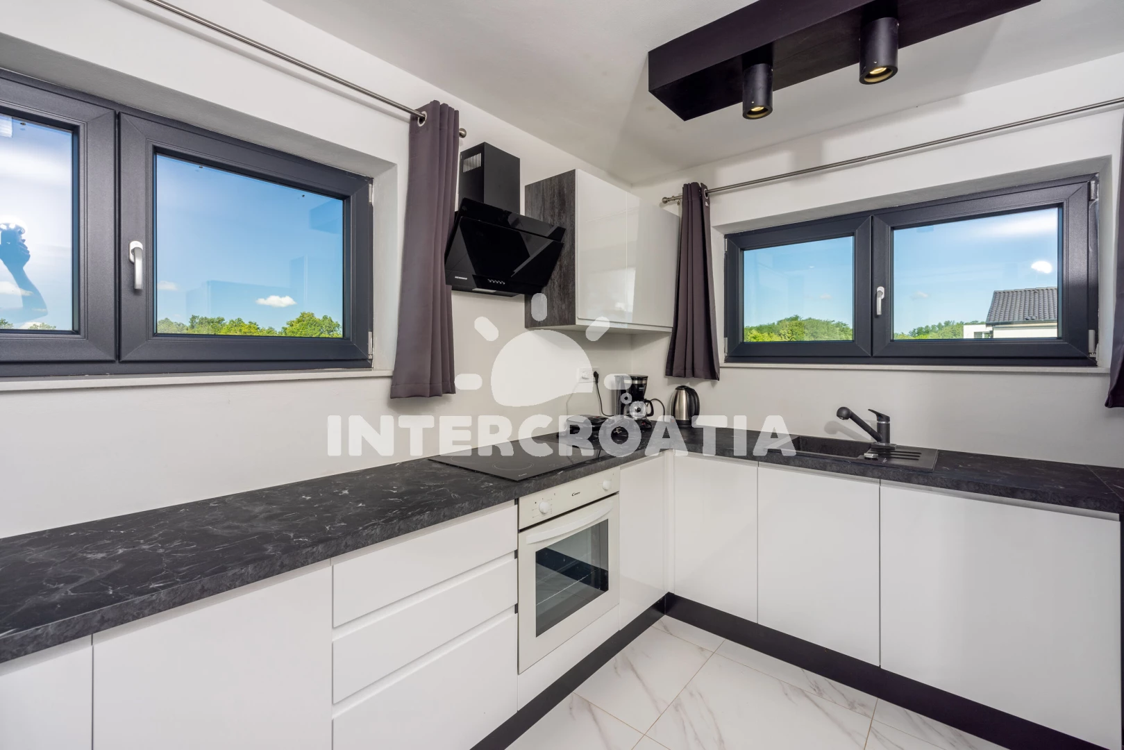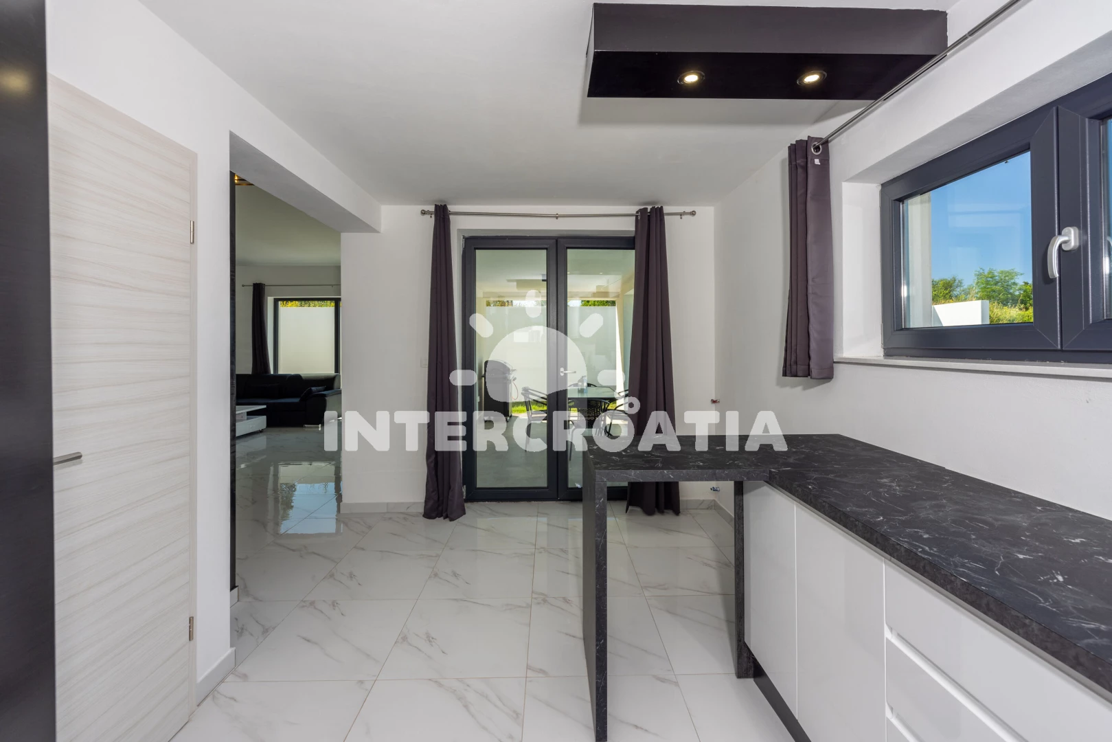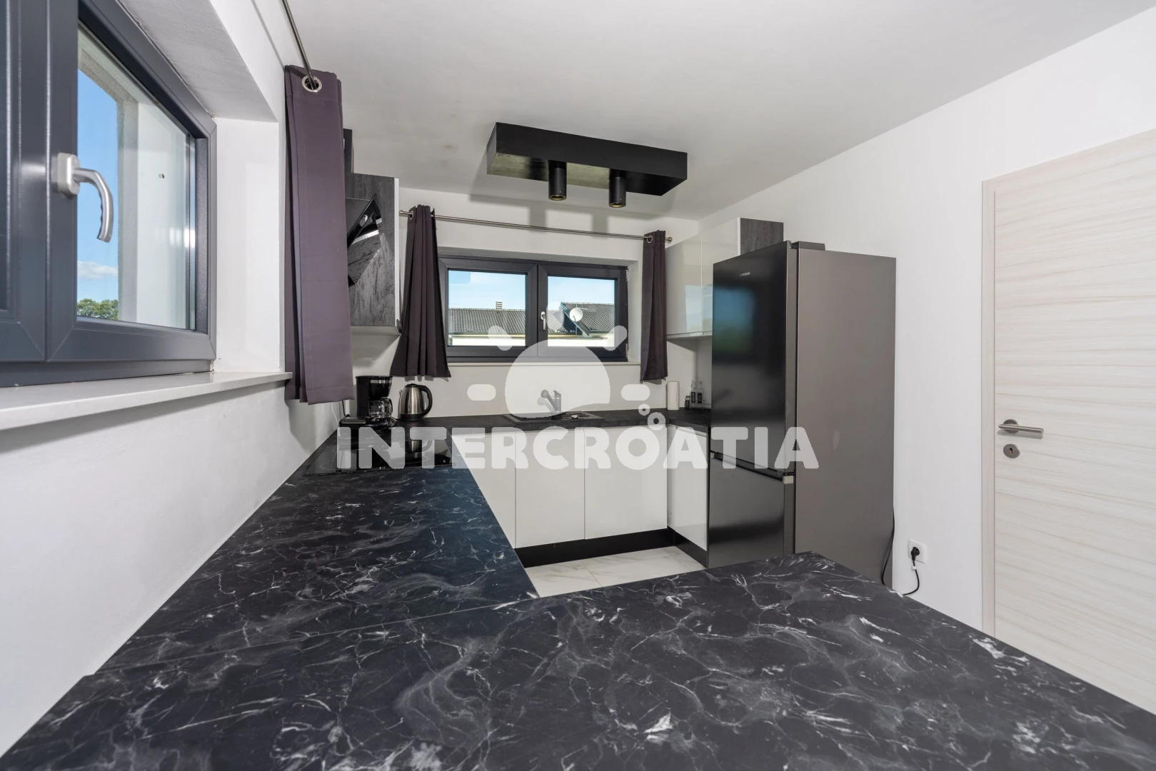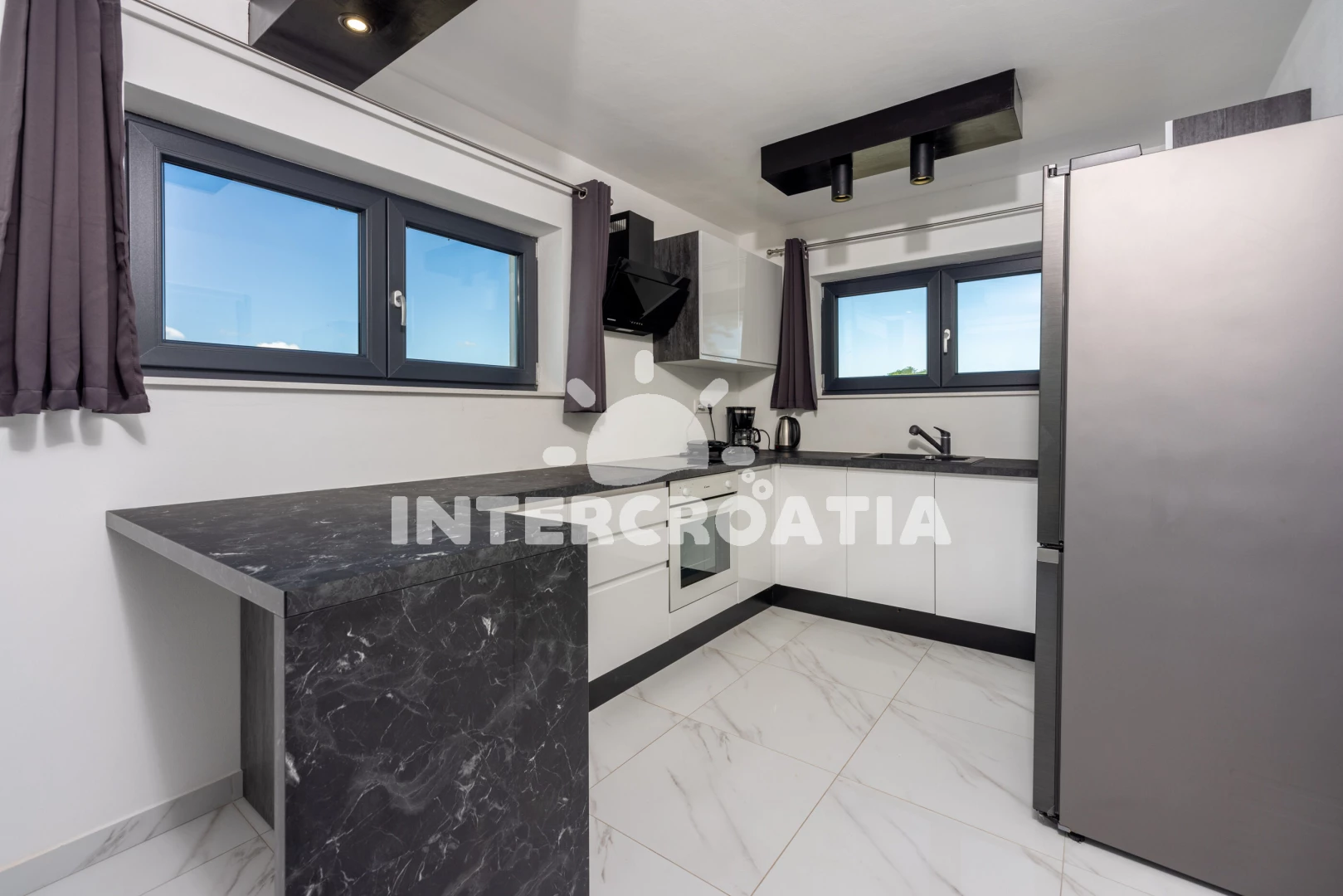 Vzdálenosti: Moře 6,4 km, pláž 10 km (písčitá, oblázková a skalnatá), veřejná doprava 2 km, lékárna 2 km, směnárna 2 km, supermarket 2 km, bar 5,9 km, centrum 5,9 km, čerpací stanice 5,9 km, banka 5,9 km, ambulance 5,9 km, restaurace 5,9 km, pošta 5,9 km, marina 10 km, letiště (Pula) 43 km, trajekt (Pula) 45 km, park Plitvice 47 km,