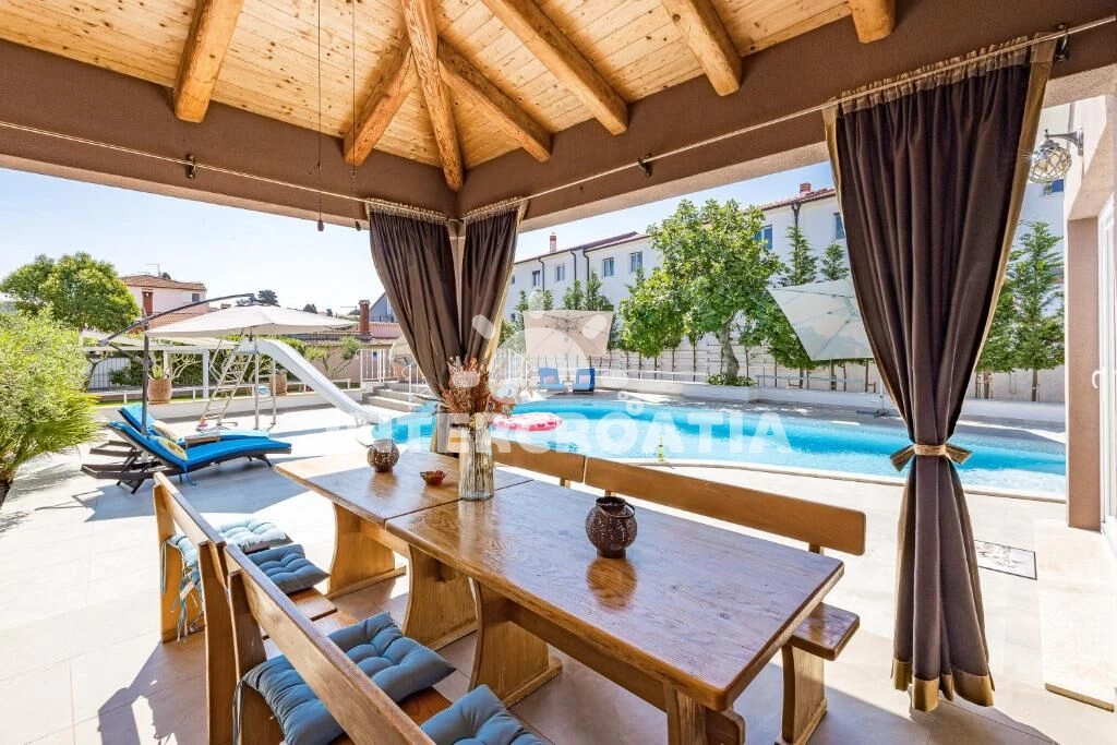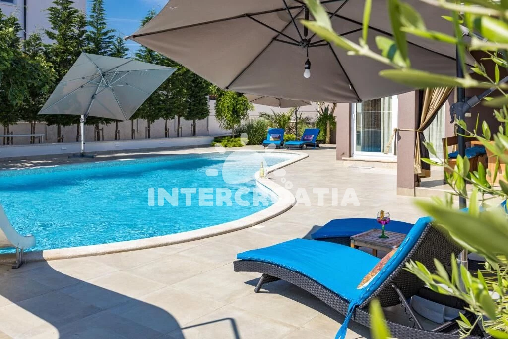 Vila se nachází 800 m od moře a pláže. Pláž je písčitá, oblázková a skalnatá. Vila disponuje bazénem s lehátky pro ubytované hosty. K dispozici posilovna. U objektu je k dispozici společná zahrada s posezením a grilem.