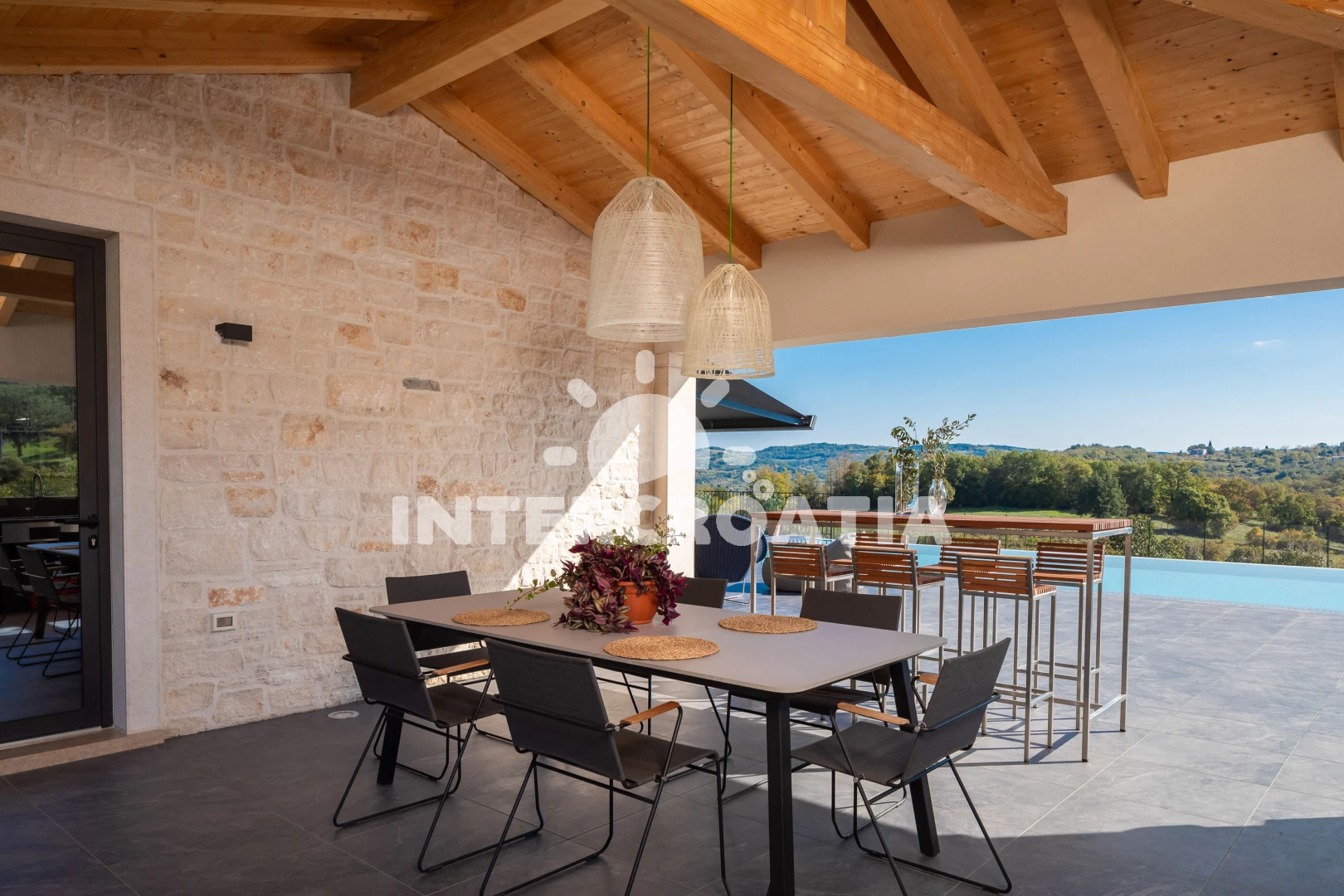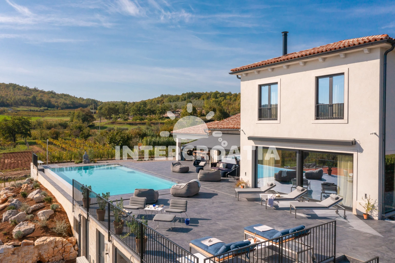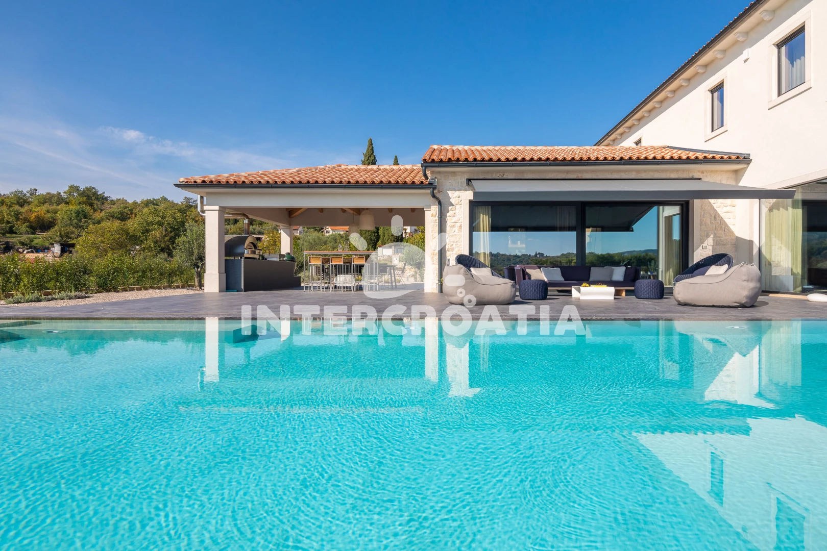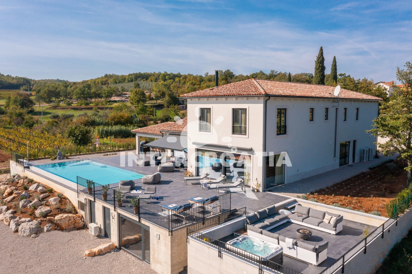 Vzdálenosti: Moře 17 km, pláž 30 km (oblázky), supermarket 2 km, restaurace 5 km, bar 5 km, čerpací stanice 8 km, lékárna 9 km, směnárna 9 km, ambulance 9 km, pošta 9 km, banka 9 km, centrum 9,4 km, veřejná doprava 10 km, park Plitvice 63 km, letiště (Pula) 65 km, trajekt (Pula) 67 km,