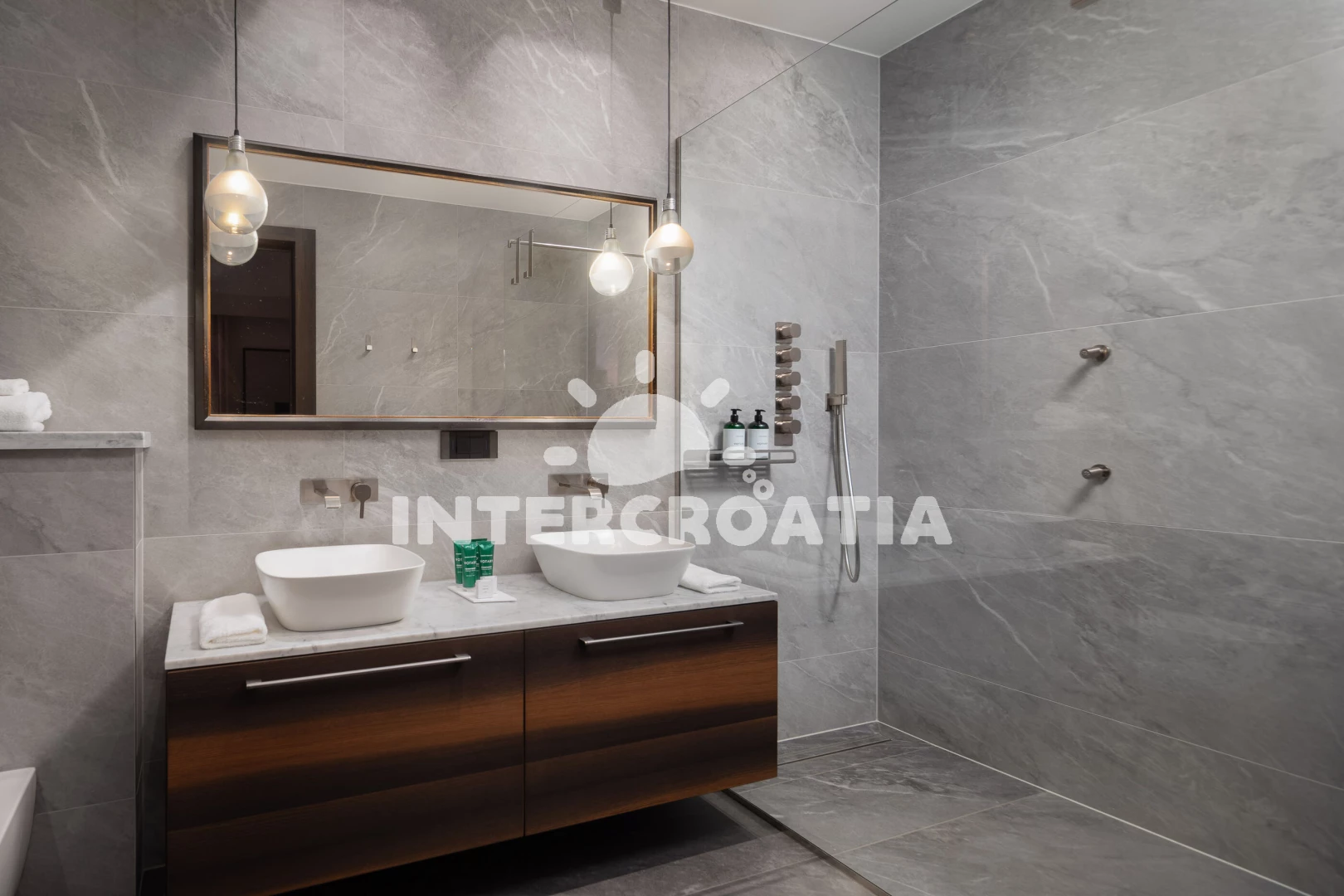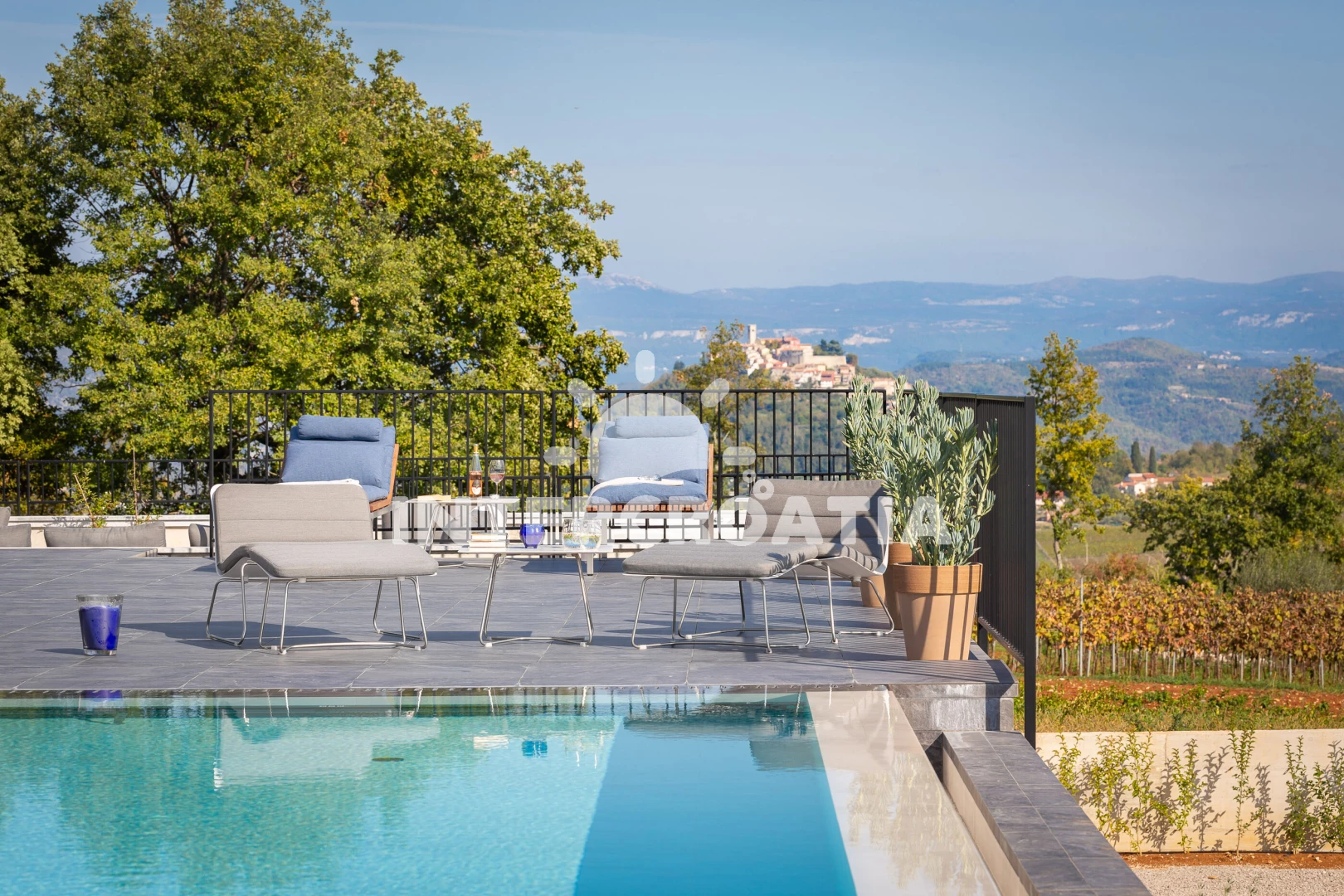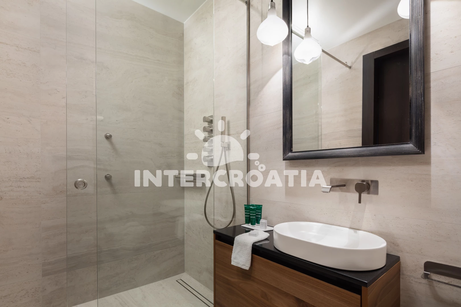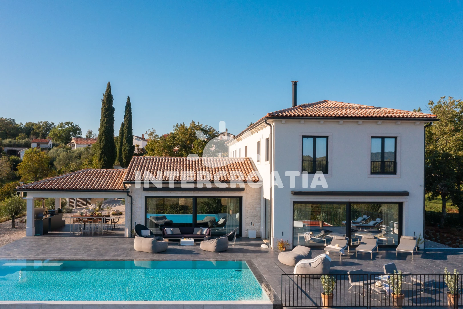 Vzdálenosti: Moře 17 km, pláž 30 km (oblázky), supermarket 2 km, restaurace 5 km, bar 5 km, čerpací stanice 8 km, lékárna 9 km, směnárna 9 km, ambulance 9 km, pošta 9 km, banka 9 km, centrum 9,4 km, veřejná doprava 10 km, park Plitvice 63 km, letiště (Pula) 65 km, trajekt (Pula) 67 km,