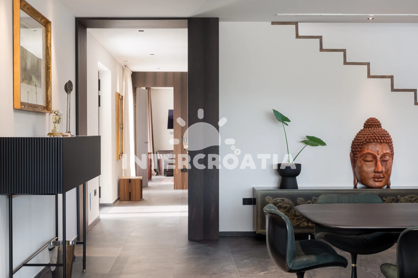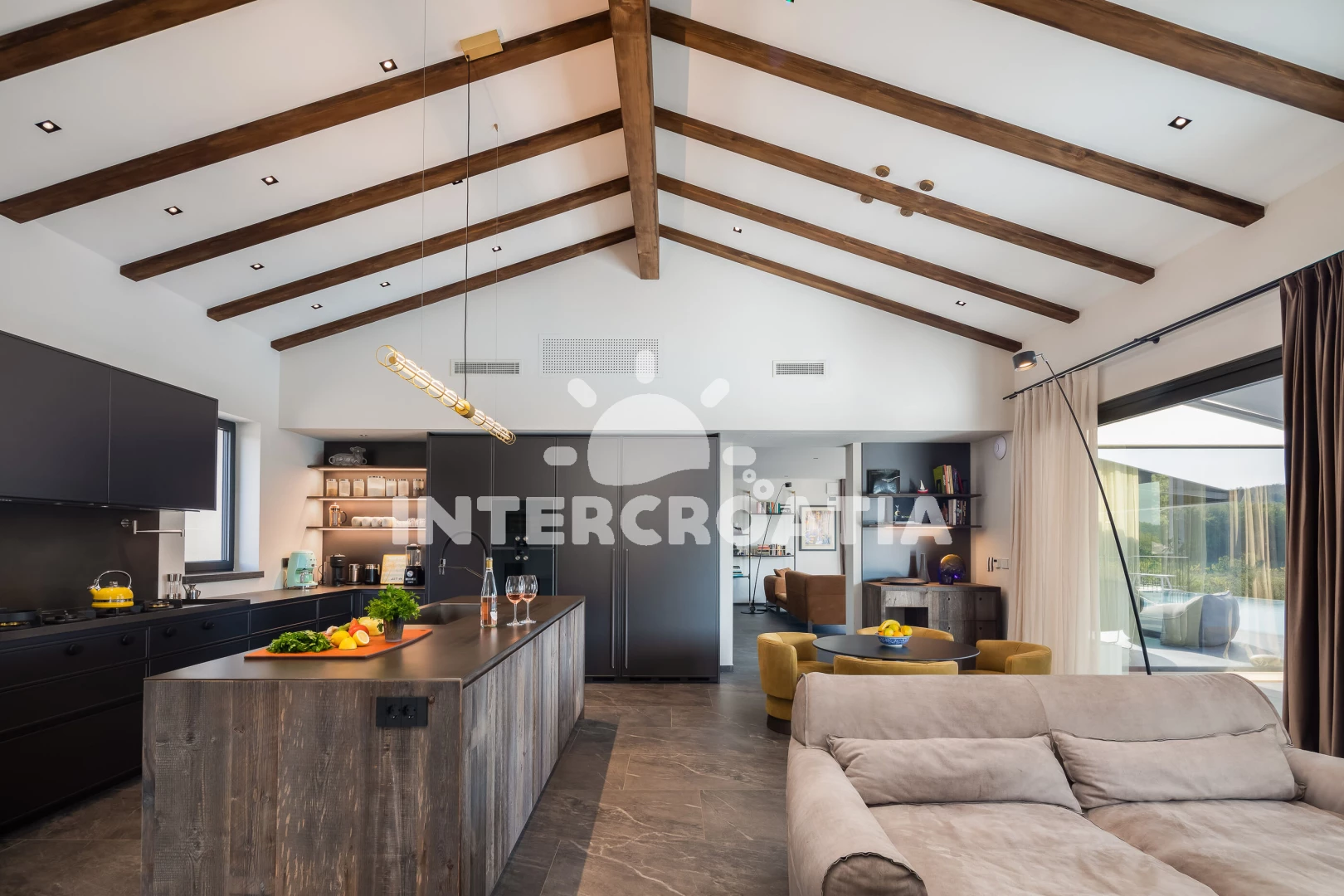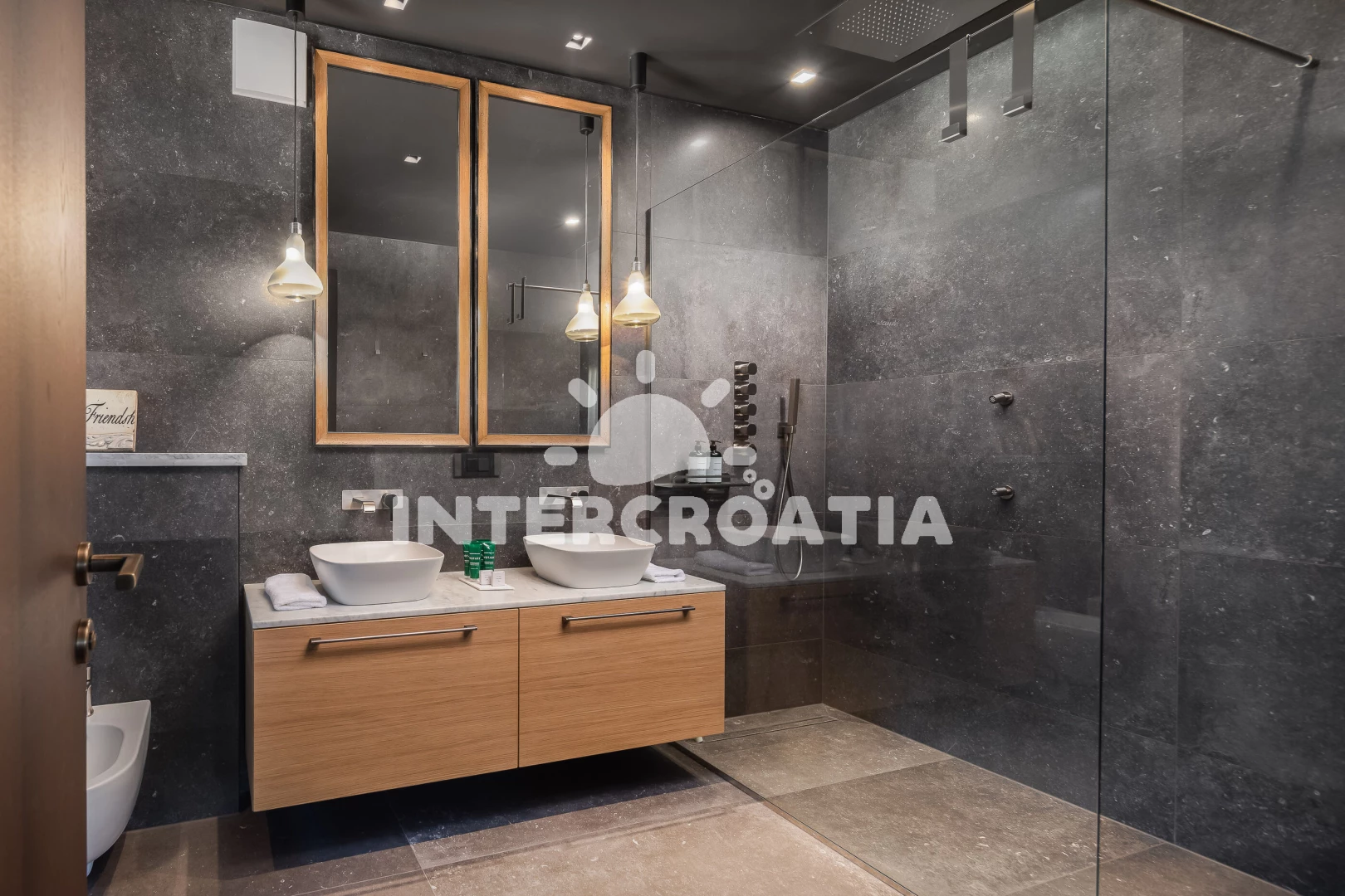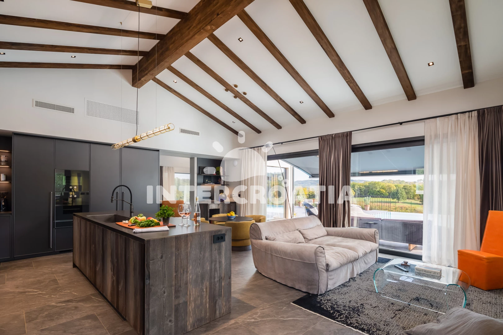Vzdálenosti: Moře 17 km, pláž 30 km (oblázky), supermarket 2 km, restaurace 5 km, bar 5 km, čerpací stanice 8 km, lékárna 9 km, směnárna 9 km, ambulance 9 km, pošta 9 km, banka 9 km, centrum 9,4 km, veřejná doprava 10 km, park Plitvice 63 km, letiště (Pula) 65 km, trajekt (Pula) 67 km,