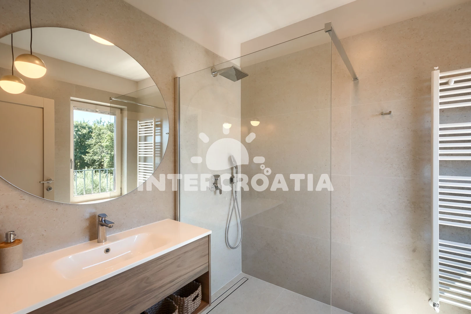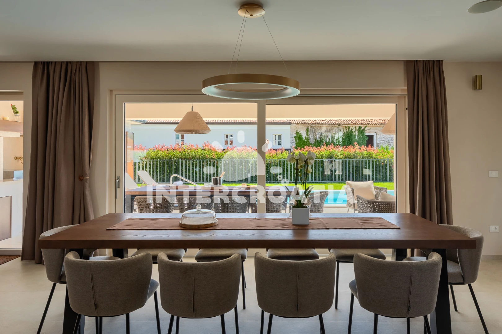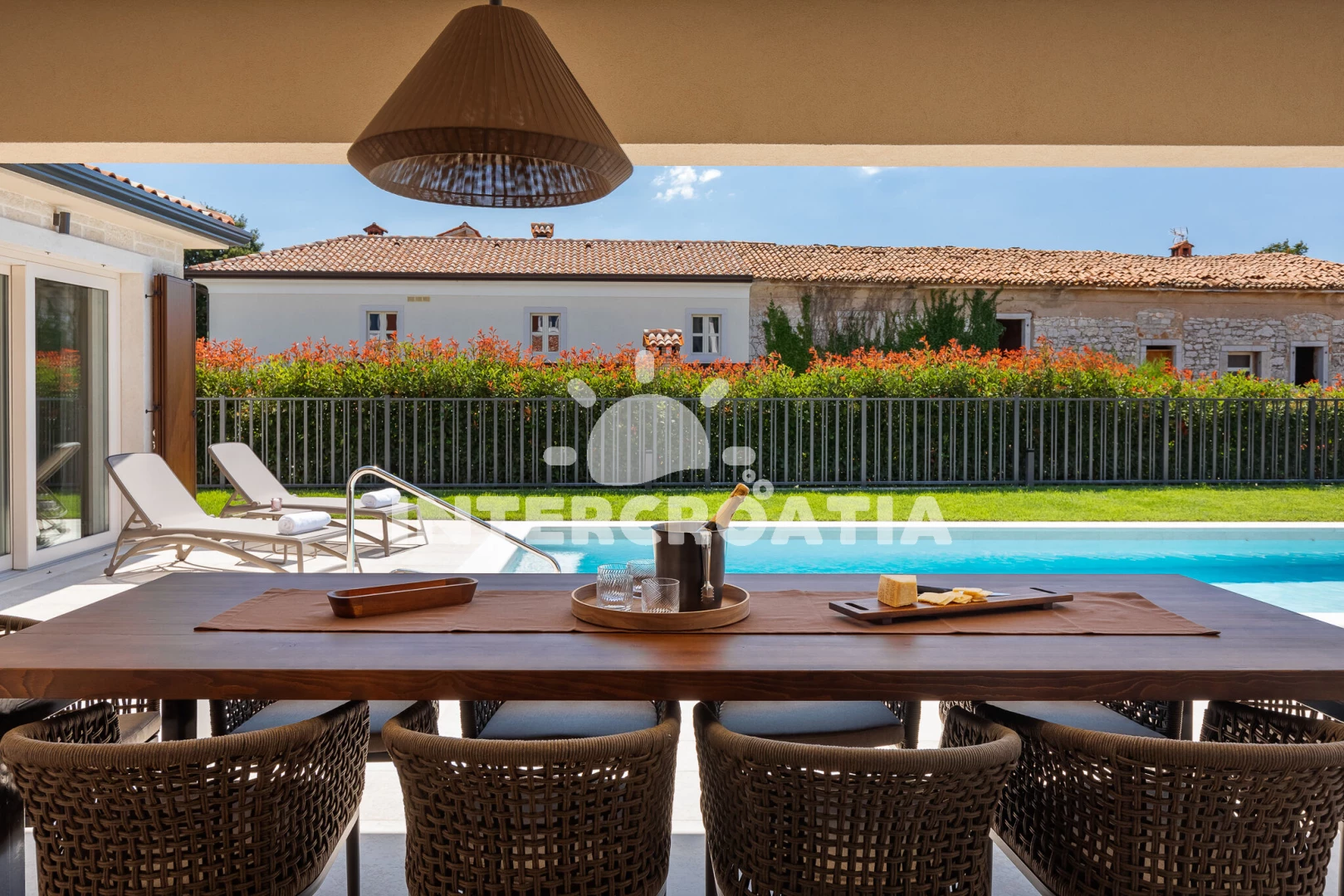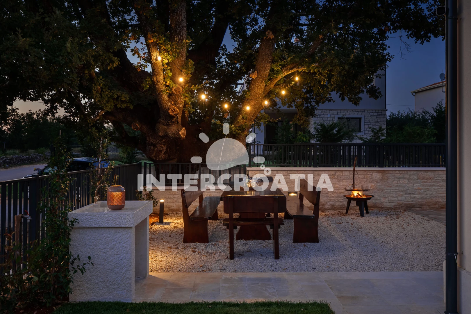 Vila se nachází 5000 m od moře a pláže. Pláž je skalnatá, oblázková, větší kamení a betonové desky. Vila disponuje bazénem s lehátky pro ubytované hosty. K dispozici vířivka. U objektu je k dispozici společná zahrada s posezením a grilem. Parkování je před domem.