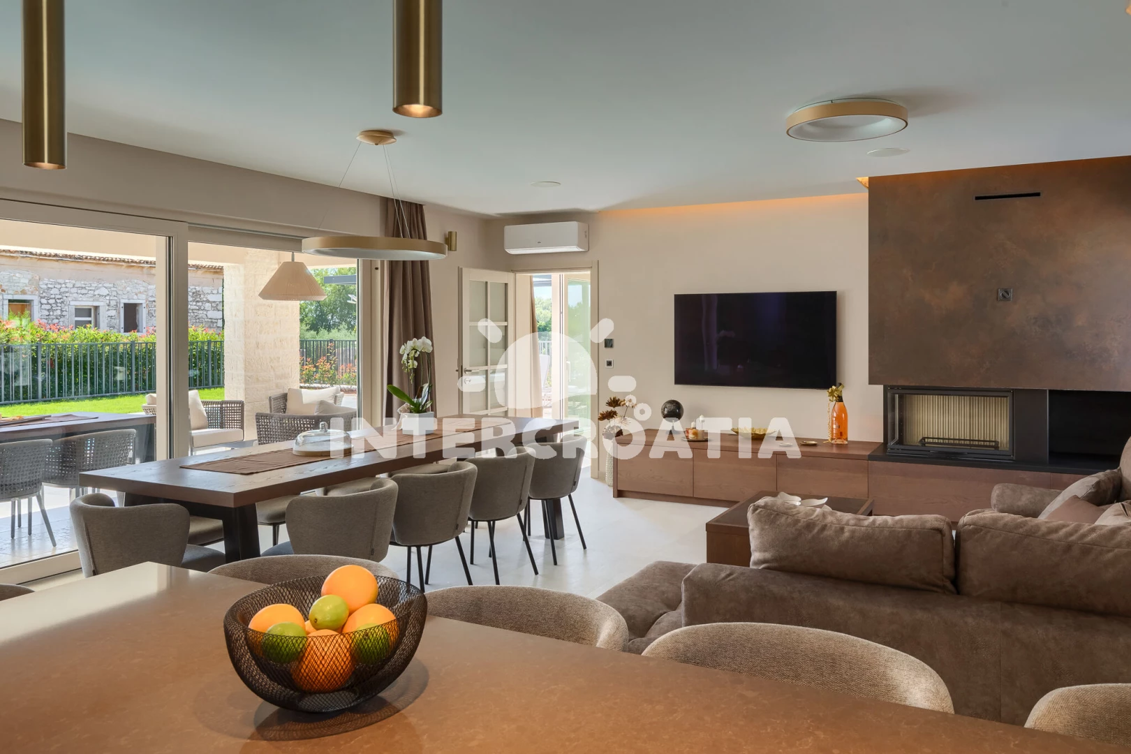 Vzdálenosti: Moře 5 km, pláž 5 km (skalnatá, oblázková, větší kamení a betonové desky), restaurace 400 m, bar 400 m, centrum 700 m, supermarket 700 m, pošta 700 m, půjčovna kol 5 km, mini golf 5 km, půjčovna motorových člunů 5 km, tenisové kurty 5 km, ambulance 6 km, lékárna 6 km, potápění 10 km, marina 10 km, diskotéka 10 km, letiště (Pula) 55 km, trajekt (Brestova) 70 km,