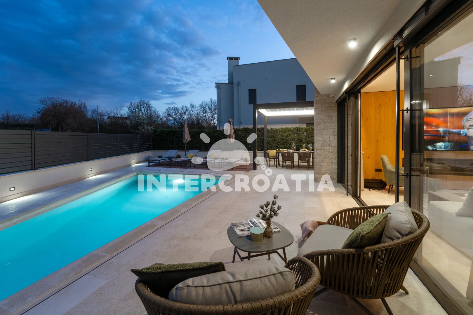 Vzdálenosti: Moře 4,5 km, pláž 4,5 km (písčitá, skalnatá, oblázková, větší kamení a betonové desky), supermarket 2 km, restaurace 3 km, bar 3 km, veřejná doprava 5 km, centrum 6 km, pošta 6 km, ambulance 6 km, banka 8 km, čerpací stanice 8 km, lékárna 8 km, marina 10 km, půjčovna motorových člunů 10 km, potápění 10 km, muzeum 10 km, diskotéka 10 km, půjčovna kol 10 km, tenisové kurty 45 km, mini golf 45 km, letiště (Pula) 60 km, park Plitvice 60 km, trajekt (Brestova) 75 km,