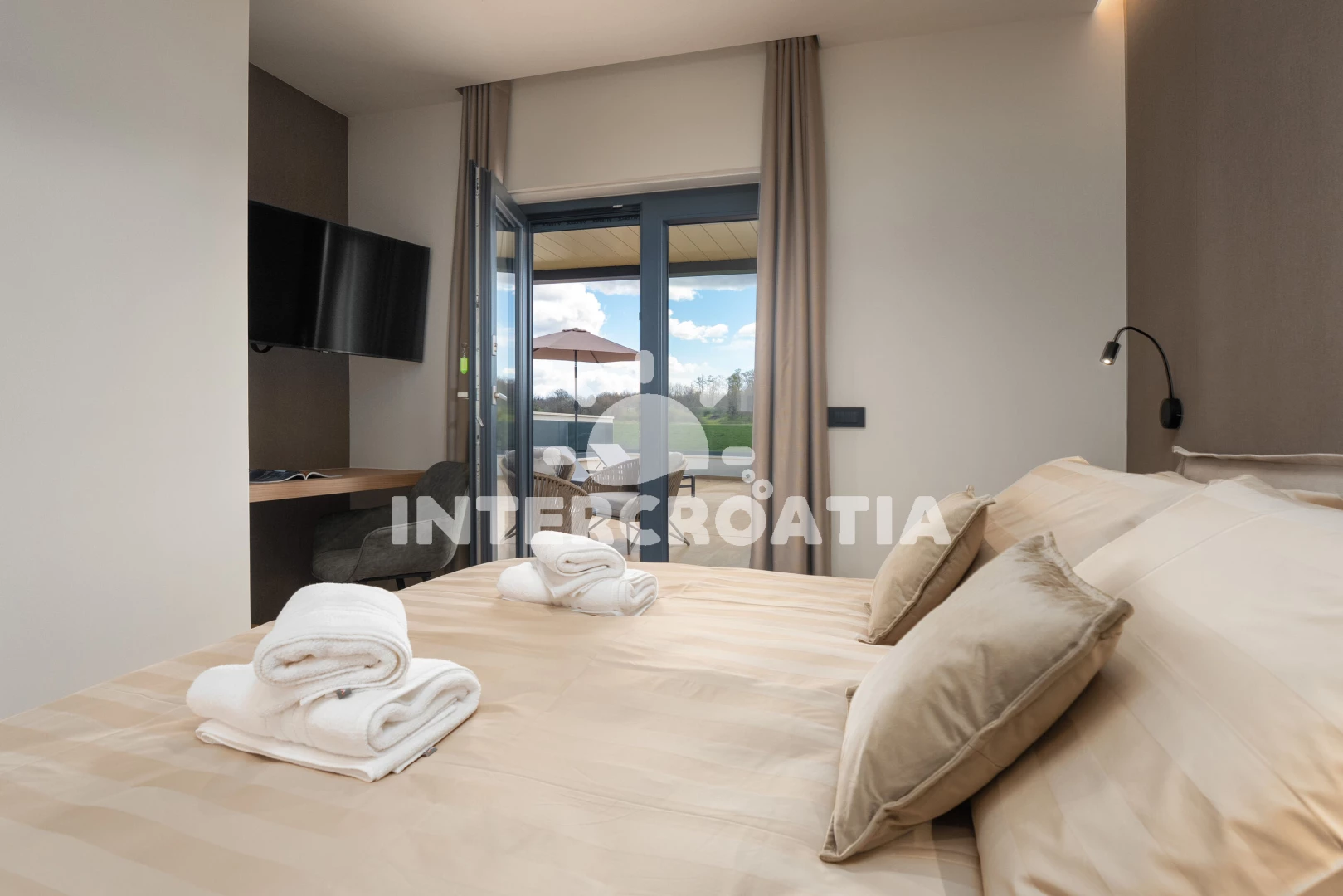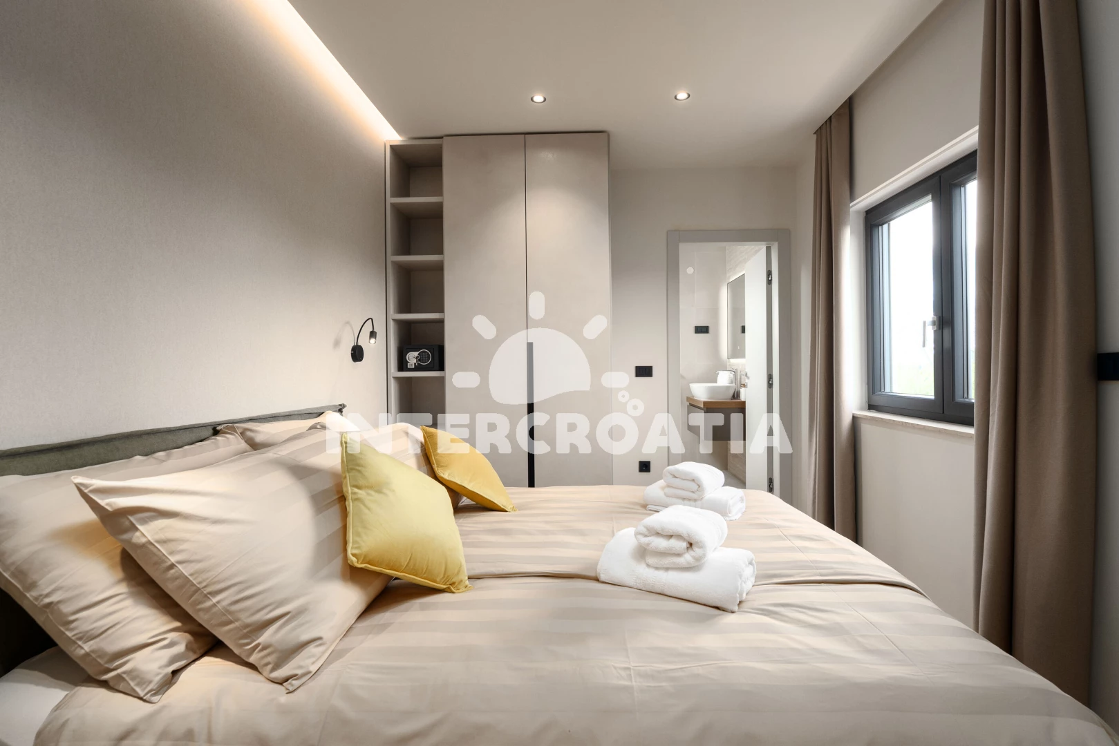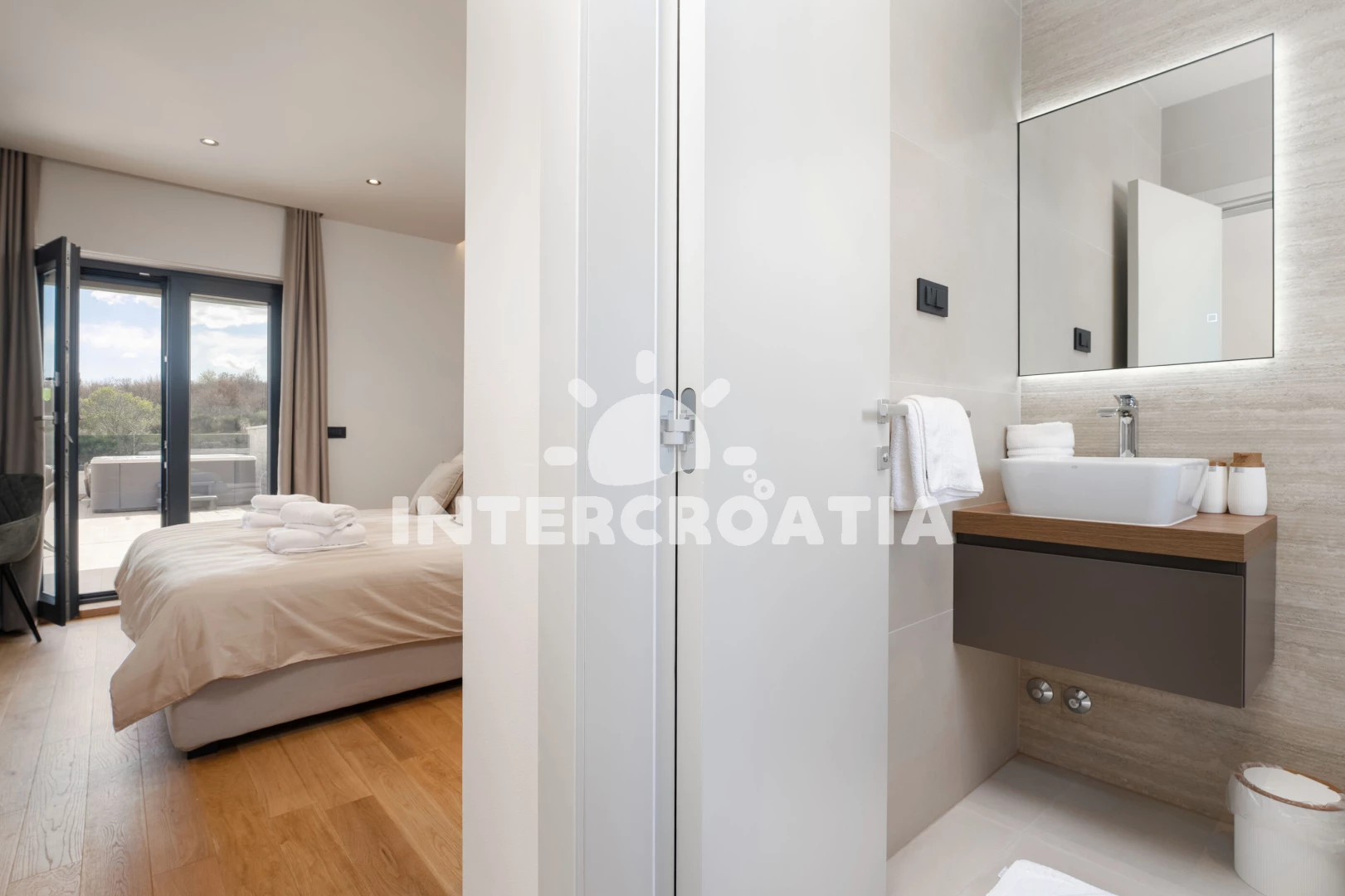 Vila (180 m2) s balkonem. Vila má 3 ložnice a je vhodná pro až 6 osob. Kuchyňská linka je vybavena varnou deskou, kávovarem, troubou, toustovačem, myčkou na nádobí, mikrovlnnou troubou, rychlovarnou konvicí, nádobím, lednicí, mrazákem. K dispozici televize, sejf, žehlička. První ložnice s dvoulůžkem. Druhá ložnice s dvoulůžkem. Třetí ložnice s dvoulůžkem. První koupelna se sprchovým koutem, umyvadlem, WC. Druhá koupelna se sprchovým koutem, umyvadlem, WC. Třetí koupelna se sprchovým koutem, umyvadlem, WC. Dále samostatné WC.