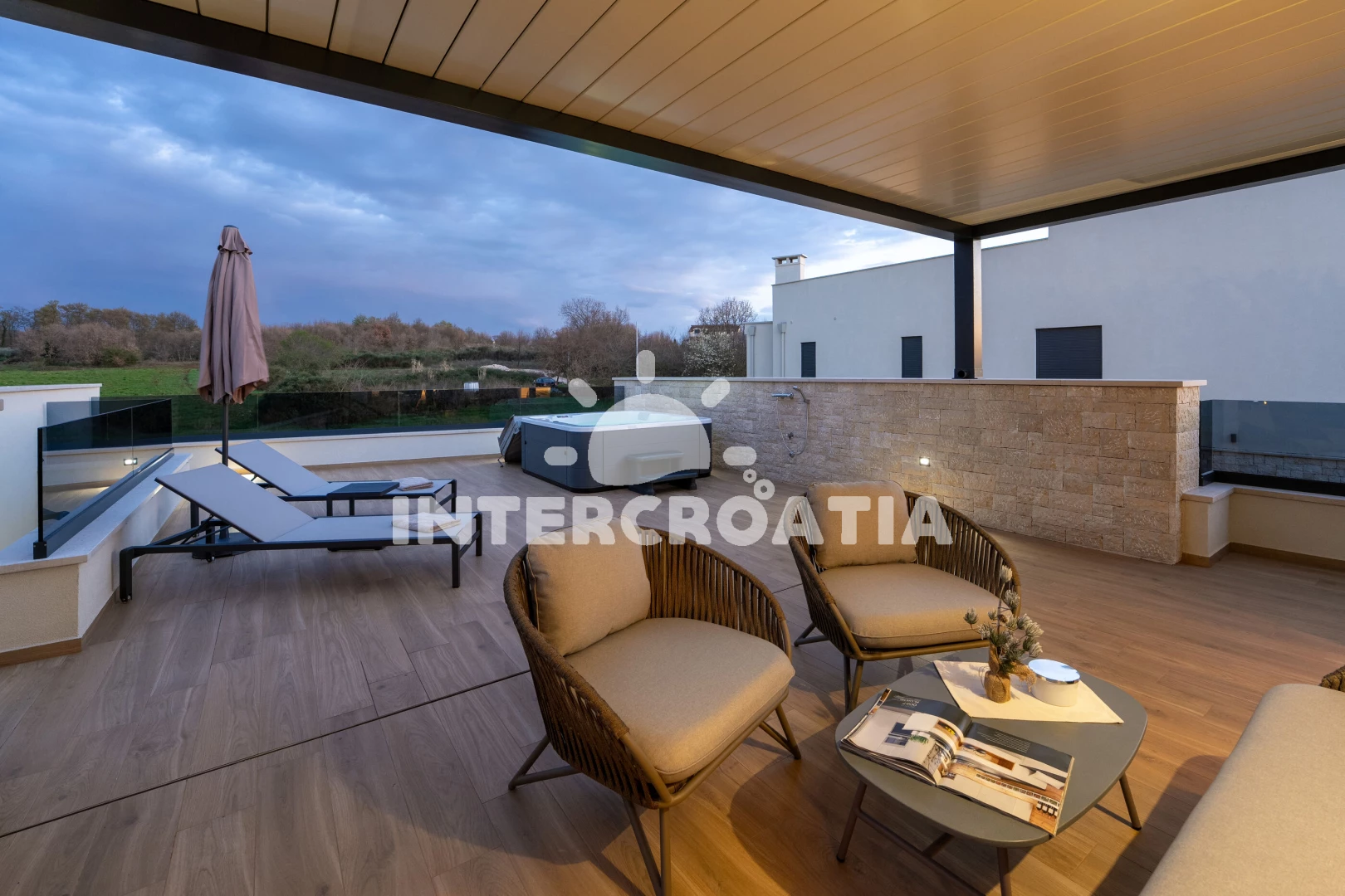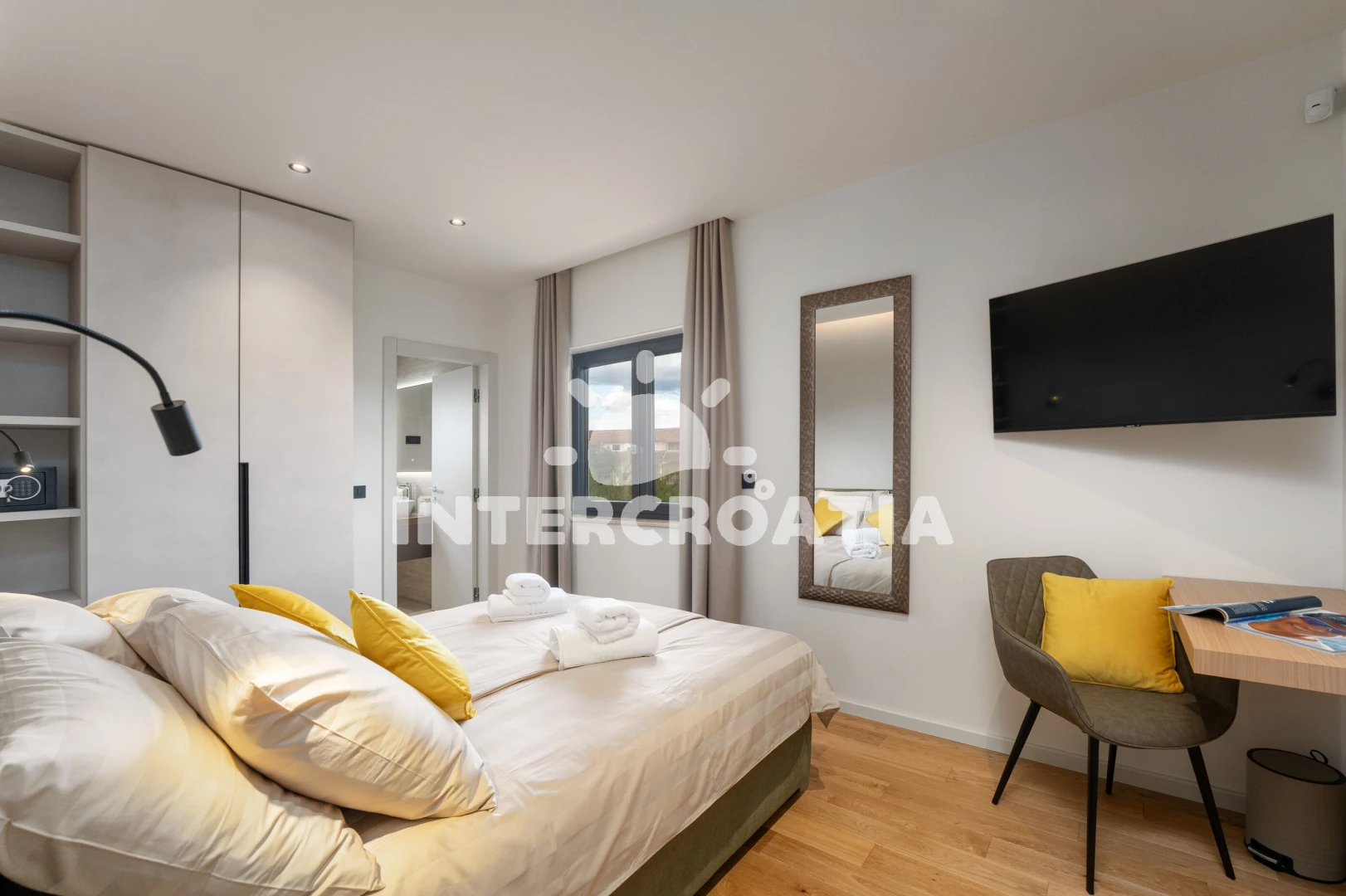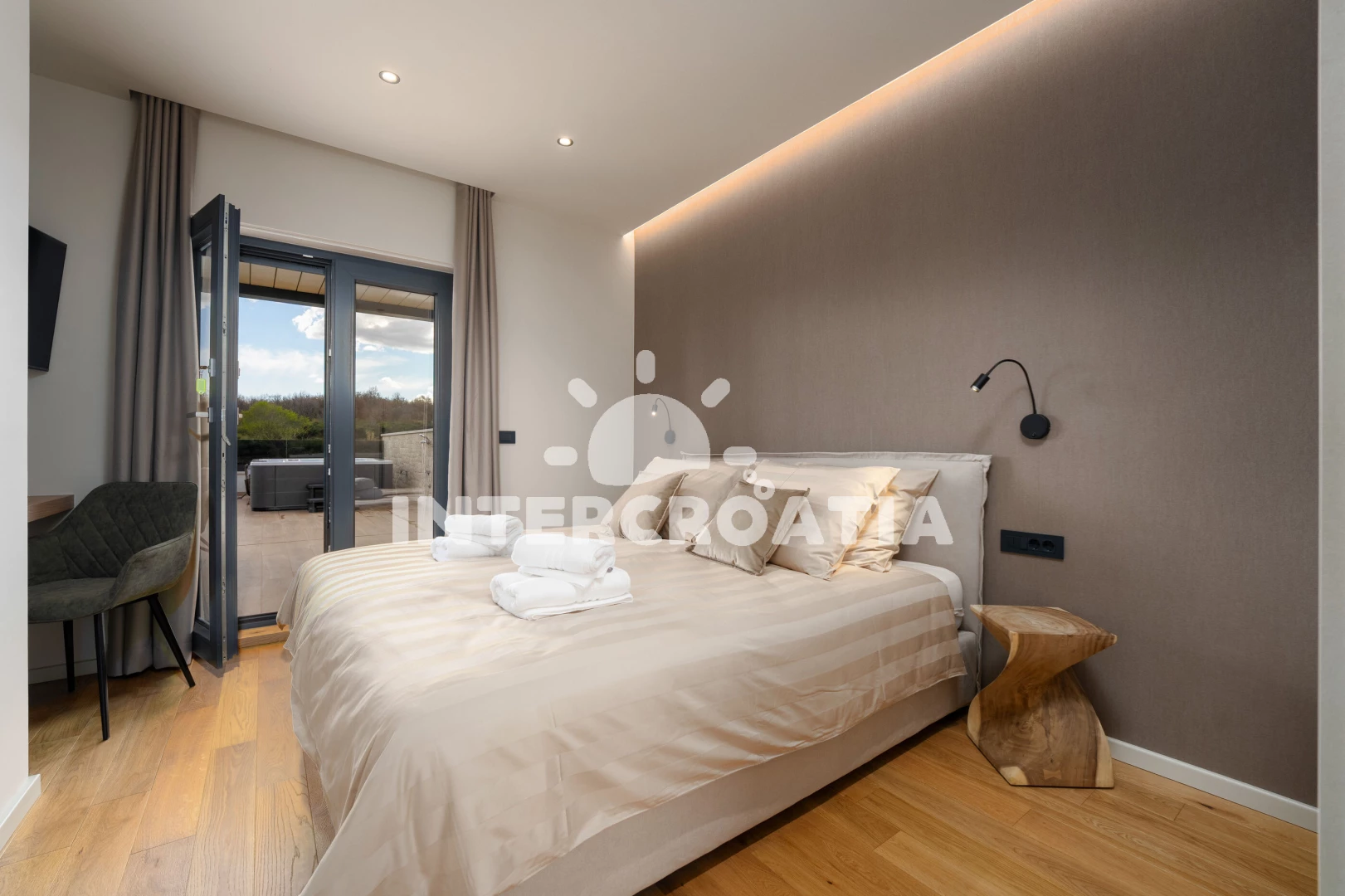 Vila (180 m2) s balkonem. Vila má 3 ložnice a je vhodná pro až 6 osob. Kuchyňská linka je vybavena varnou deskou, kávovarem, troubou, toustovačem, myčkou na nádobí, mikrovlnnou troubou, rychlovarnou konvicí, nádobím, lednicí, mrazákem. K dispozici televize, sejf, žehlička. První ložnice s dvoulůžkem. Druhá ložnice s dvoulůžkem. Třetí ložnice s dvoulůžkem. První koupelna se sprchovým koutem, umyvadlem, WC. Druhá koupelna se sprchovým koutem, umyvadlem, WC. Třetí koupelna se sprchovým koutem, umyvadlem, WC. Dále samostatné WC.