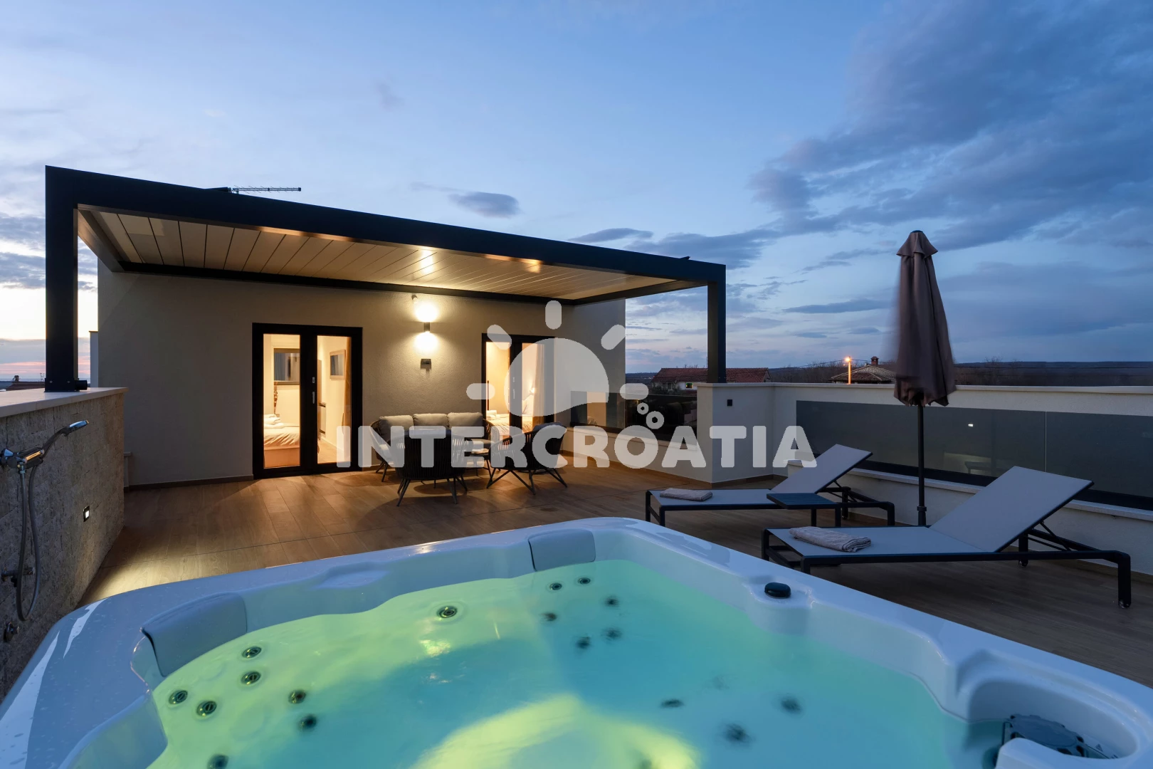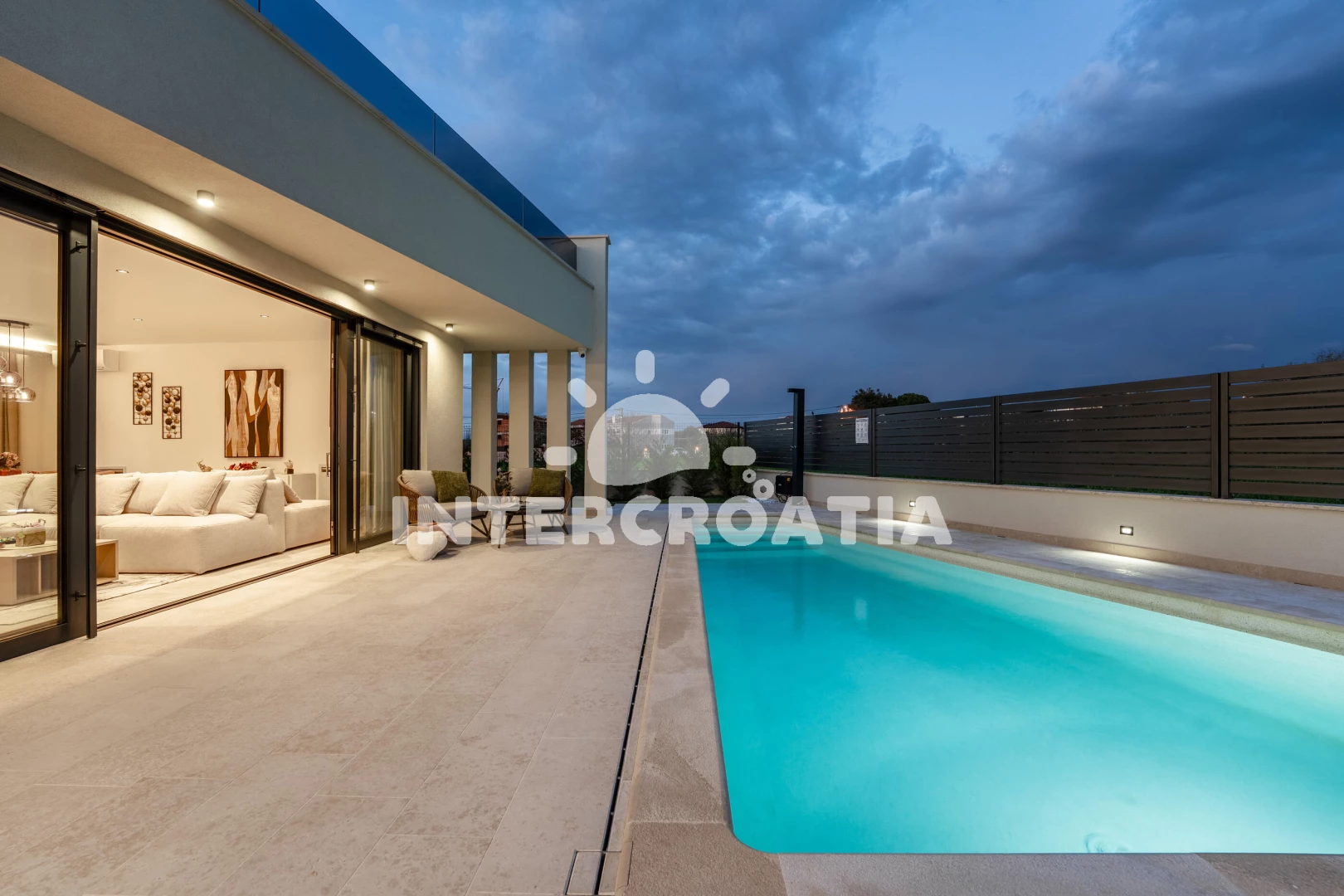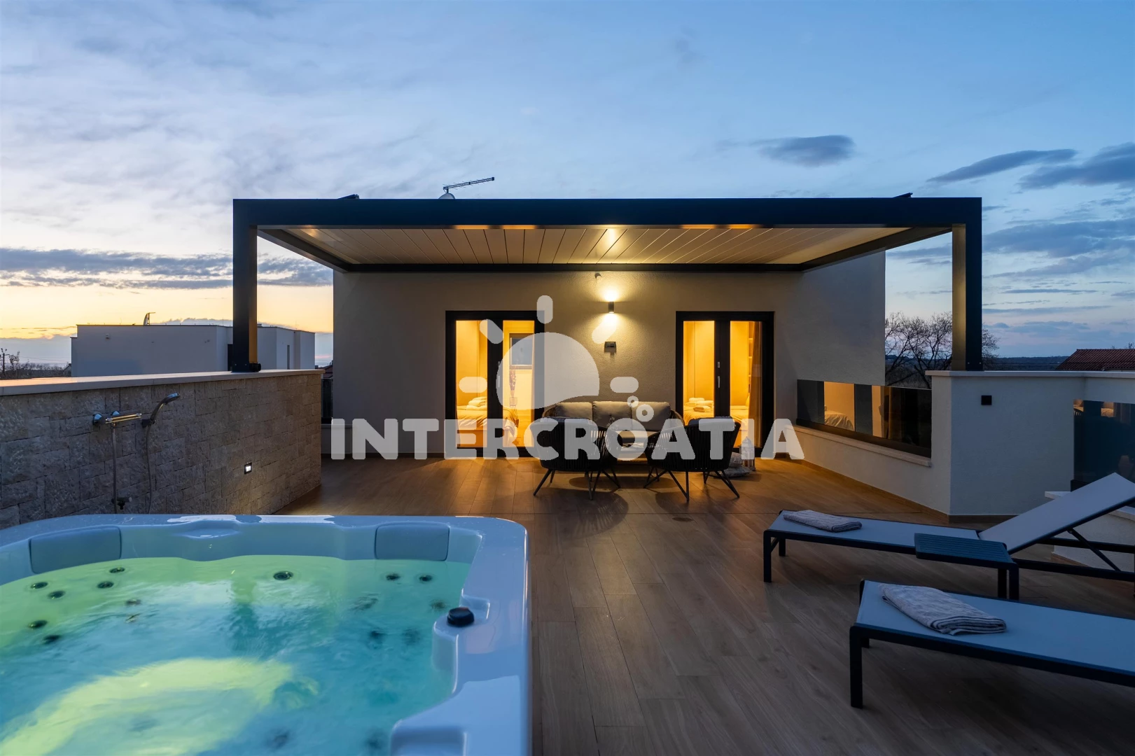 Vila se nachází 4500 m od moře a pláže. Pláž je písčitá, skalnatá, oblázková, větší kamení a betonové desky. Vila disponuje bazénem s lehátky pro ubytované hosty. K dispozici vířivka. U objektu je k dispozici společná zahrada s posezením a grilem. Parkování je před domem.