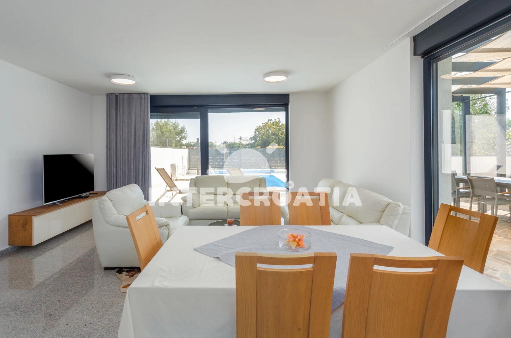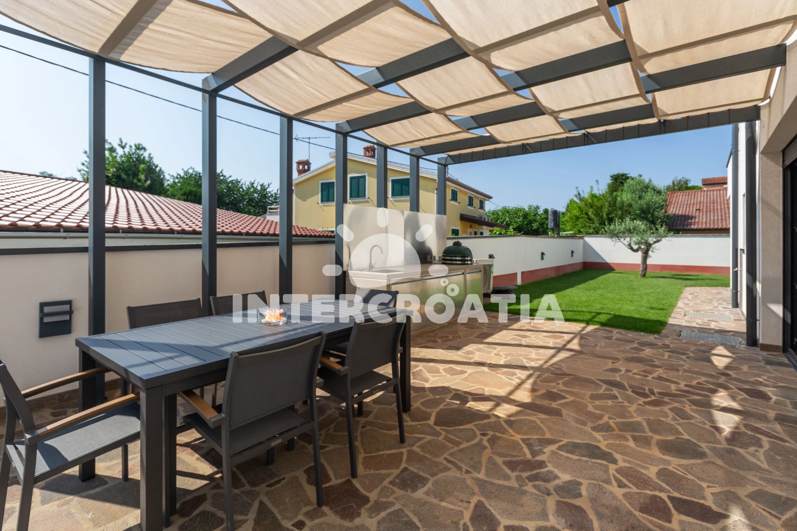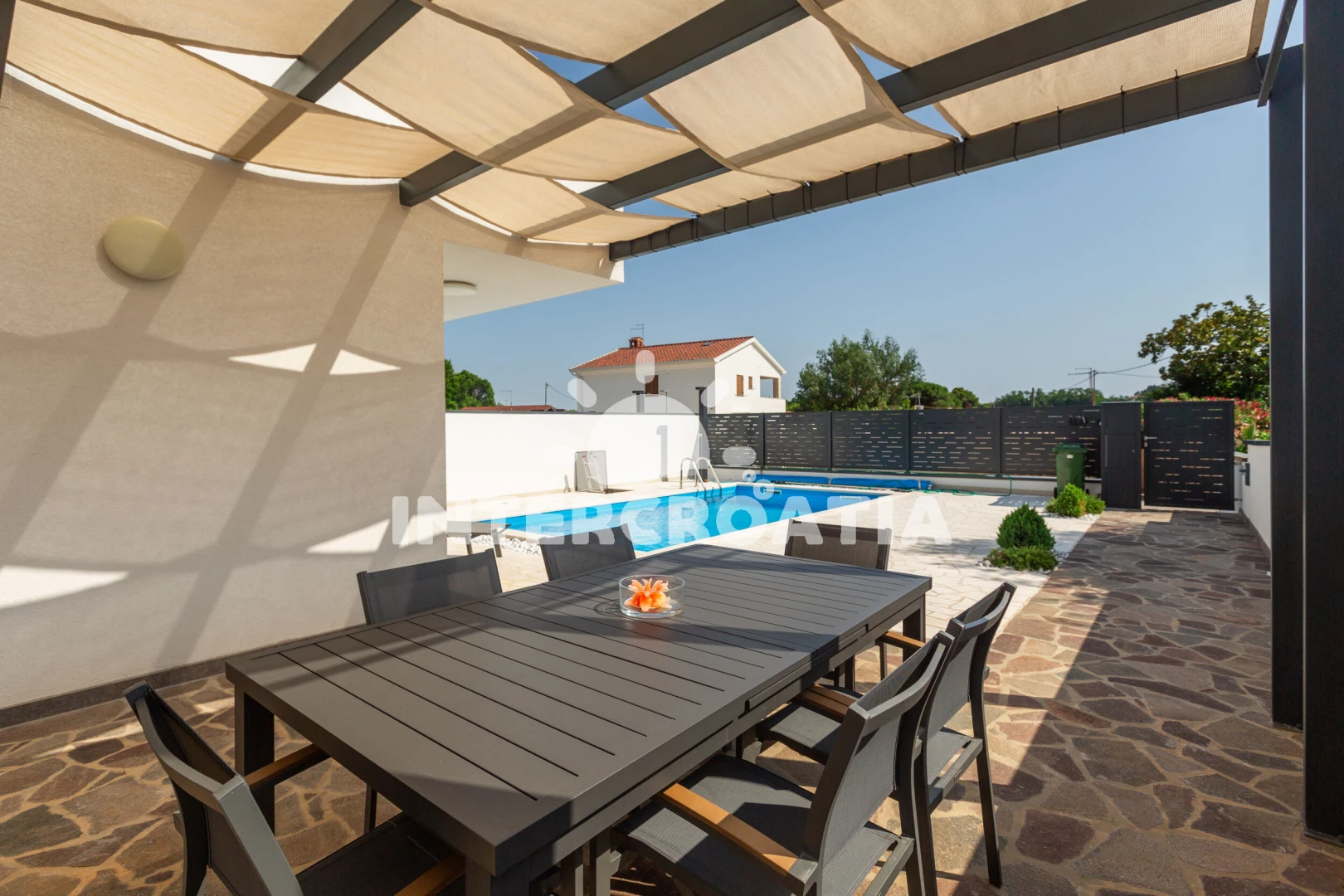Vila se nachází 100 m od moře a pláže. Pláž je písčitá, skalnatá, oblázková, větší kamení a betonové desky. Vila disponuje bazénem s lehátky pro ubytované hosty. U objektu je k dispozici společná zahrada s posezením a grilem.