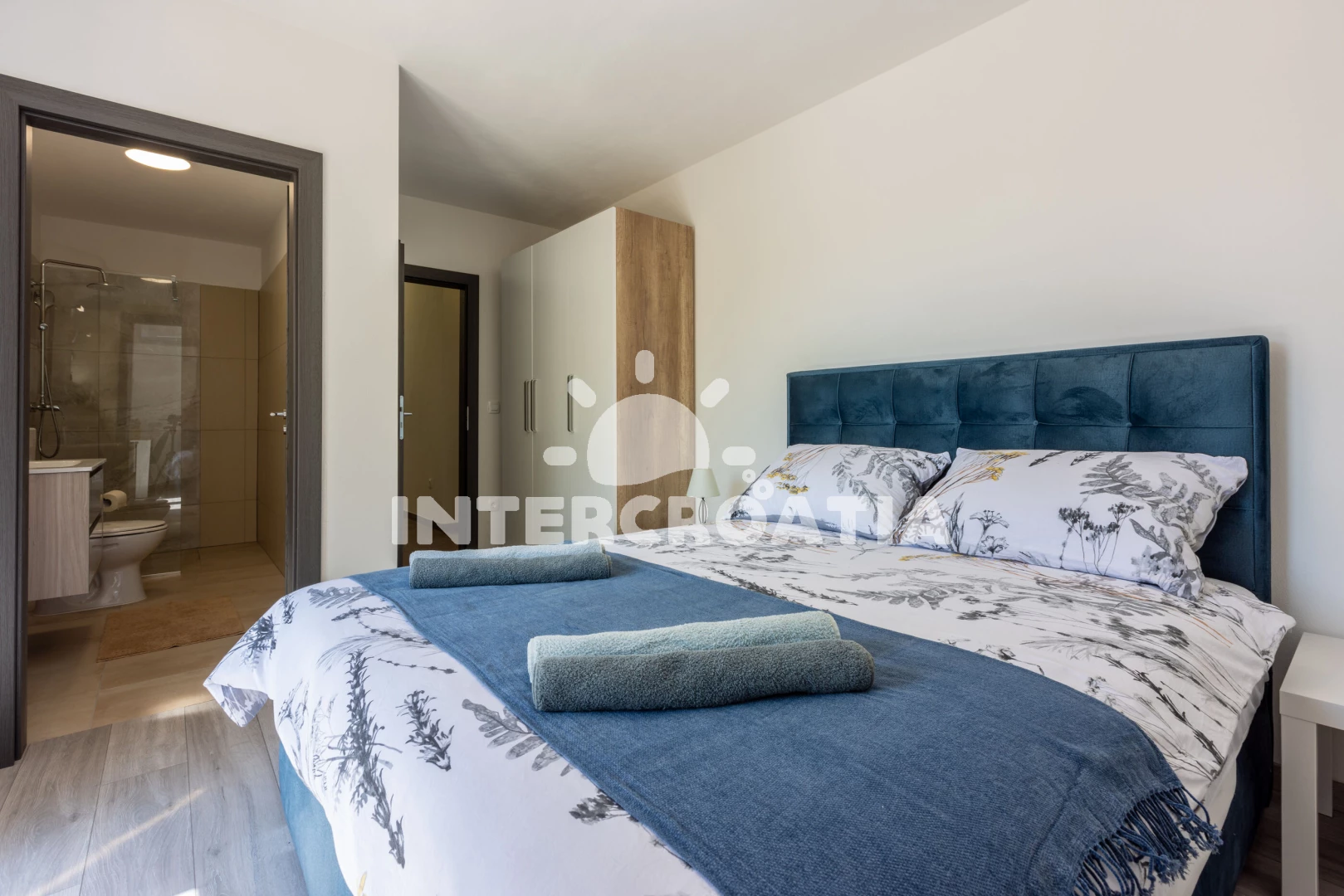 Vila (140 m2) s balkonem. Vila má 3 ložnice a je vhodná pro až 6 osob. Kuchyňská linka je vybavena varnou deskou, kávovarem, toustovačem, troubou, myčkou na nádobí, mikrovlnnou troubou, rychlovarnou…